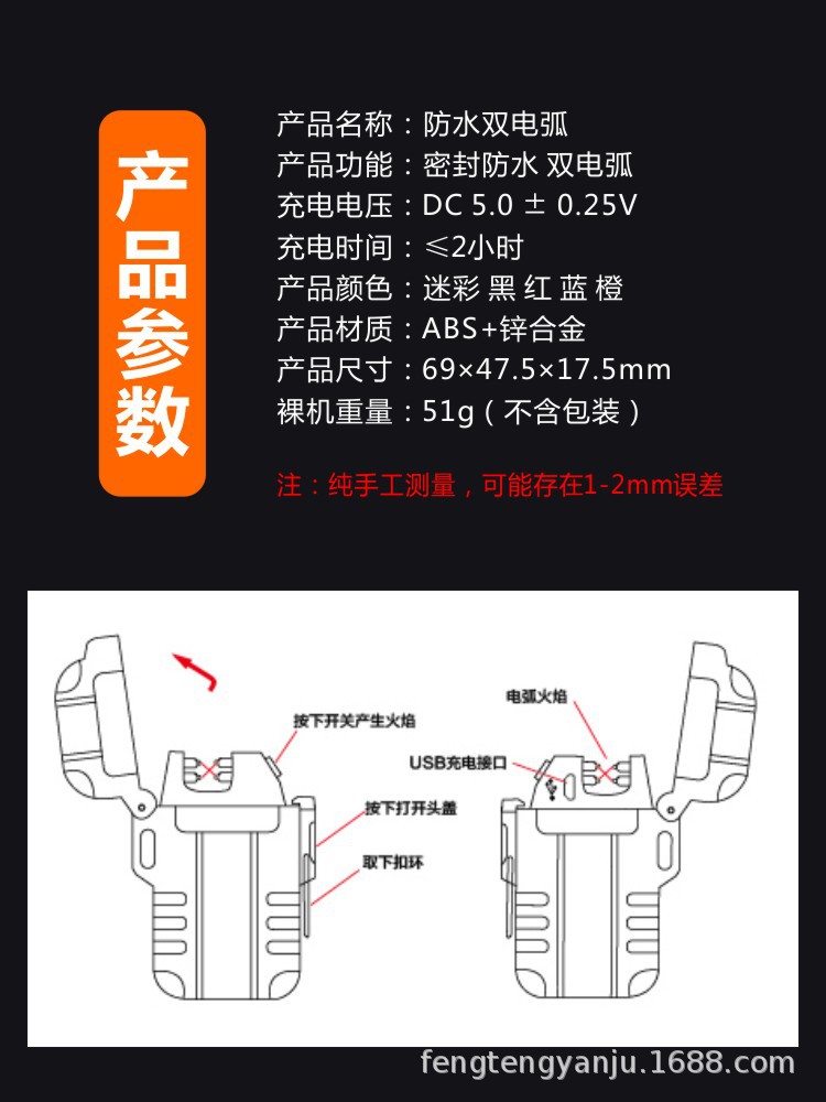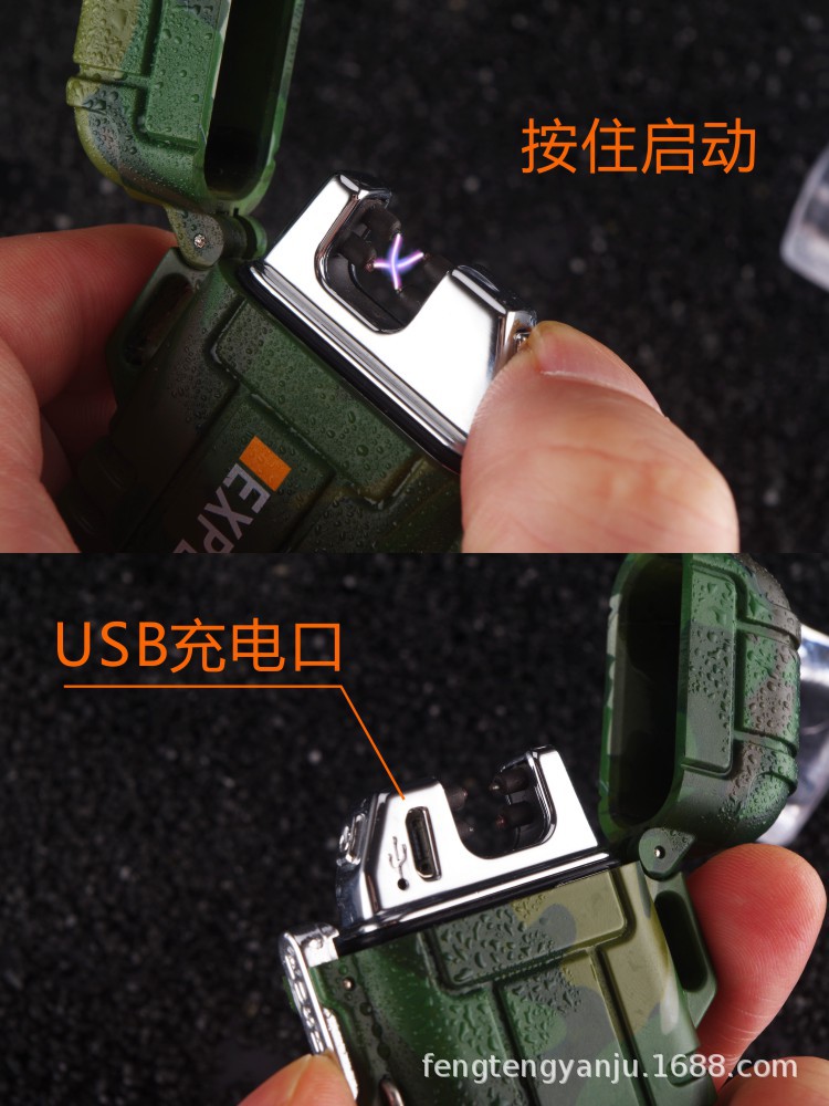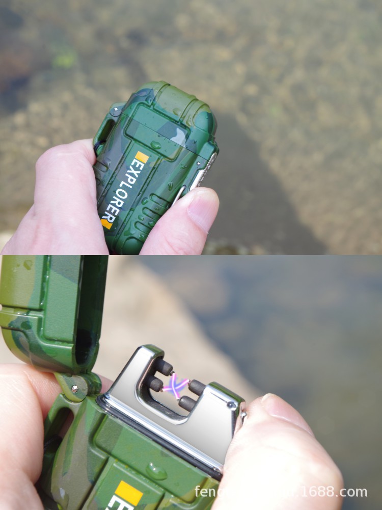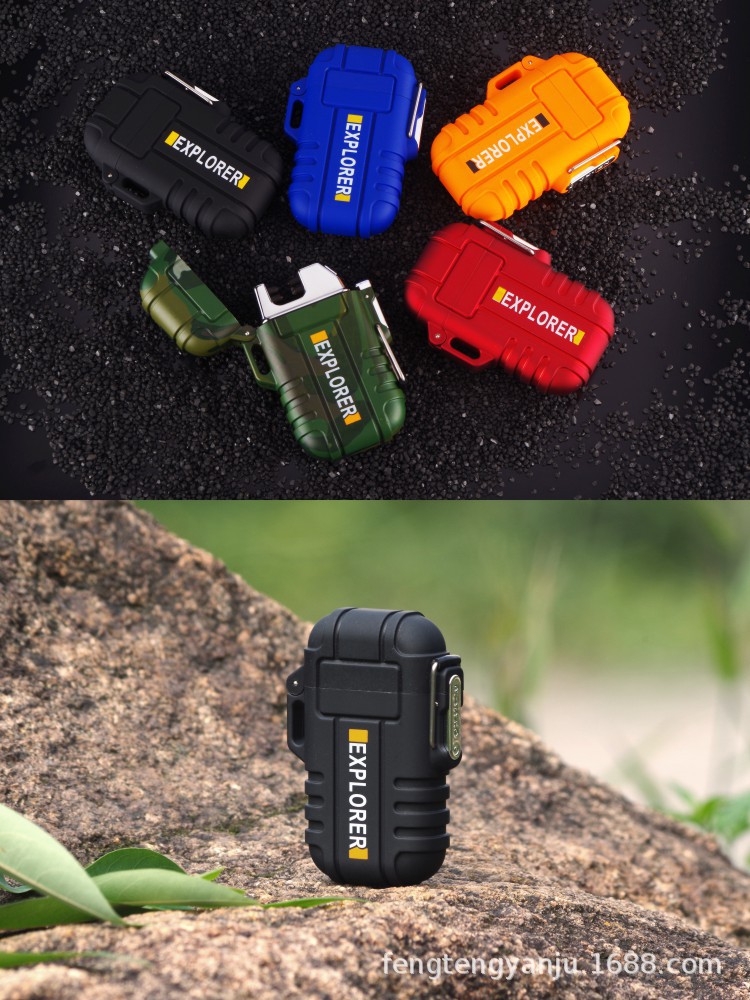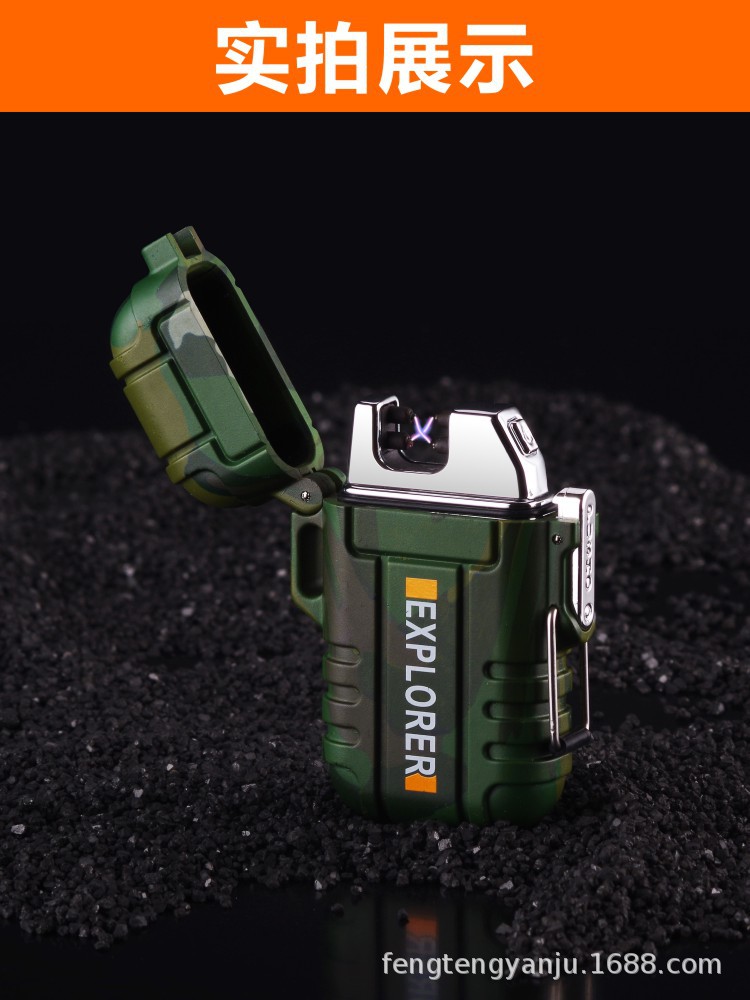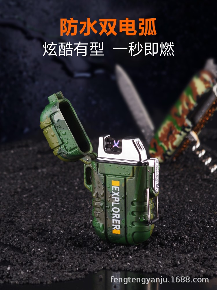 Camping transfronterizo al aire libre a prueba de viento a prueba de agua arco pulso de doble arco encendedor electrónico de cigarrillos USB encendedor recargable