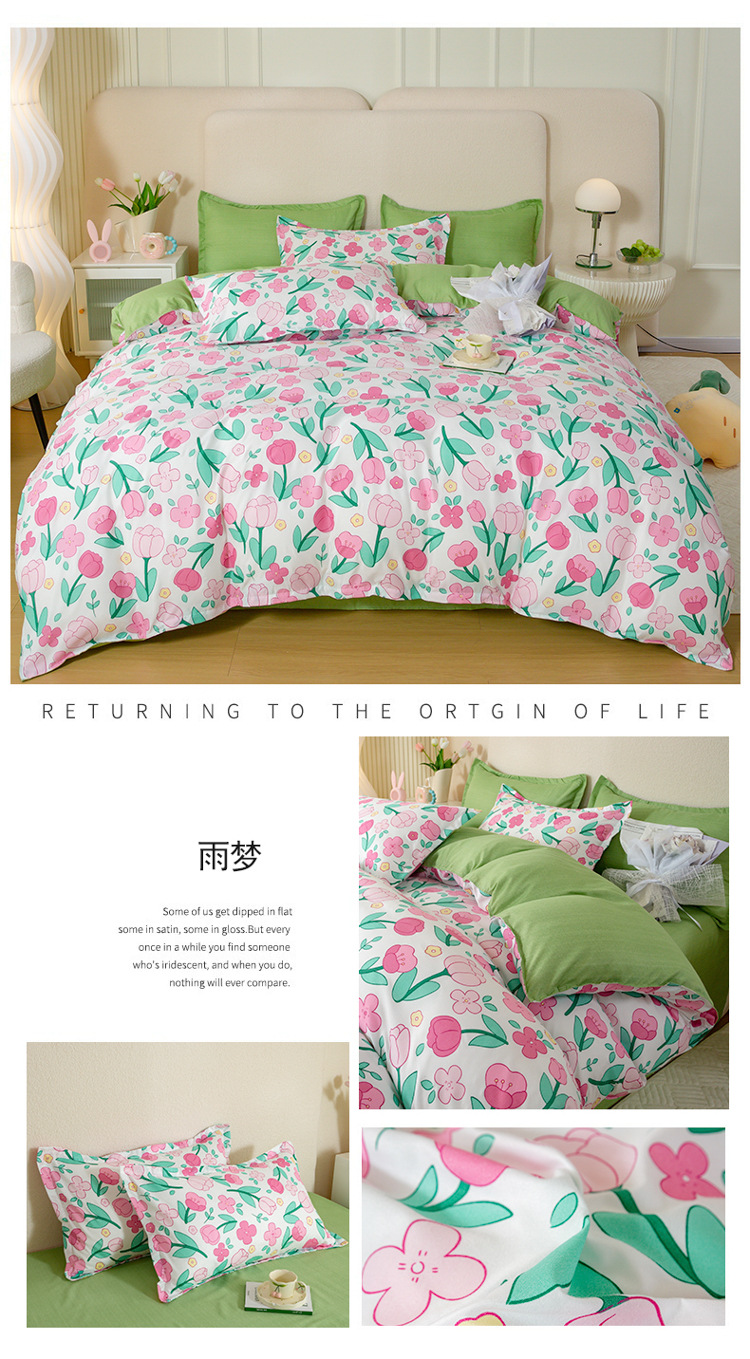 Sábana de algodón lavada de cuatro piezas amigable con la piel cubierta del edredón estudiante dormitorio individual conjunto de tres piezas Niños y Niñas Ropa de cama 4 piezas