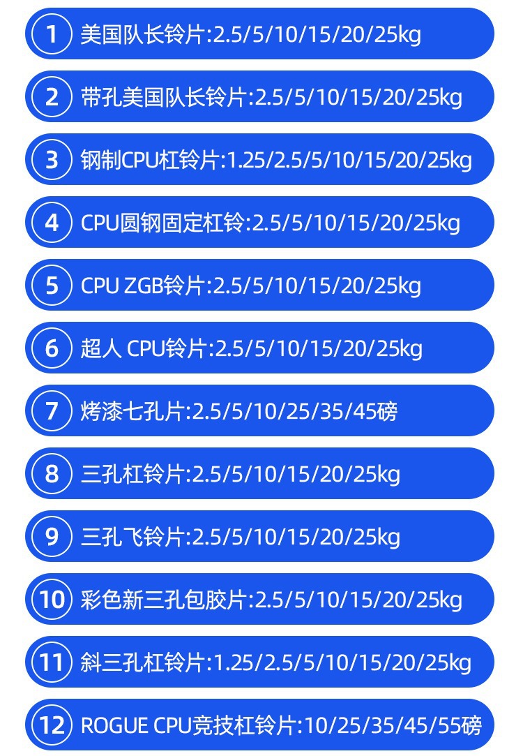 | Color | 182021 Hoja de campana voladora de tres agujeros 1 kg (KG), 182020 Hoja de barra de tres agujeros 1 kg (KG), 182025 Hoja de 7 agujeros 1 libra (LB), 182030A Hoja de campana del Capitán América con agujeros 1 kg (KG), 182035B Hoja de barra de acero redondo CPU 1 kg (KG), 100534B Hoja de barra de color macarón 1 kg (KG), 100534D Hoja de rueda de goma 1 kg (KG), 100535A película completa - negro 1 kg (KG), 100535C4 agujeros barra 1 kg (KG), 100535E color película completa 1 kg (KG), 100535F color placa de buje de goma completa 1 kg (KG), 100536A acero puro barra de galvanoplastia eléctrica 1 kg (KG), 182008A Hummer barra 1 kg (KG), 182031 CPU barra de lixiviado 1 kg (KG), 182031A rodilla de lixiviado barra 1 kg (KG), 182032 ROGUE placa de buje 1 libra (LB), 182047A10 barra de ángulo 1 kg (KG), 183001 barra recta pequeña 1.2 m, 183002 barra curva pequeña 1.2 m, 183005 barra de Austria 1.8 m, 183008 barra de Austria estándar 2.2 m, 183009 barra de Austria profesional 2.2 m, 183012 barra de Austria negra 2.2 m |