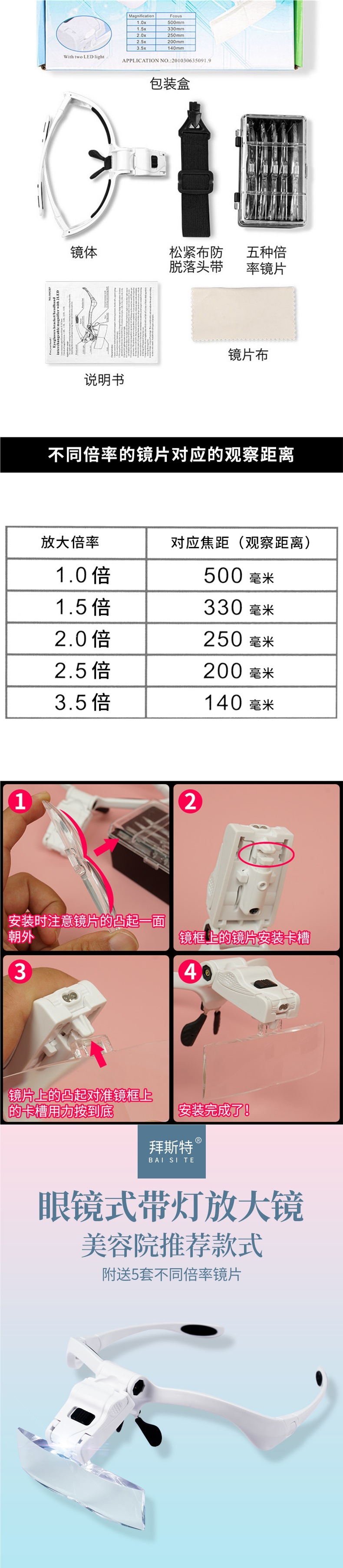 Injerto de ojo de pestañas tipo cabeza lupa con lámpara de extracción de ojos negros gafas de belleza acné polvo especial para bordador de patrón