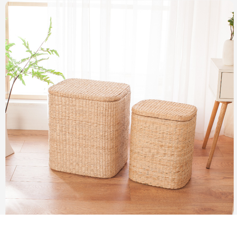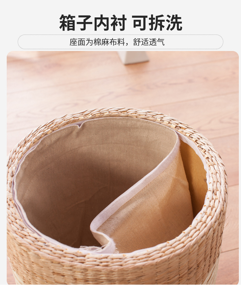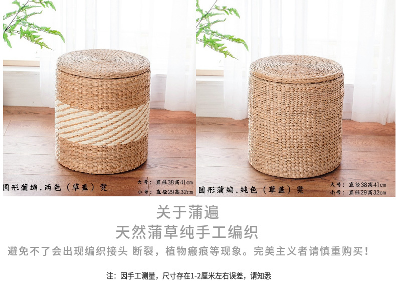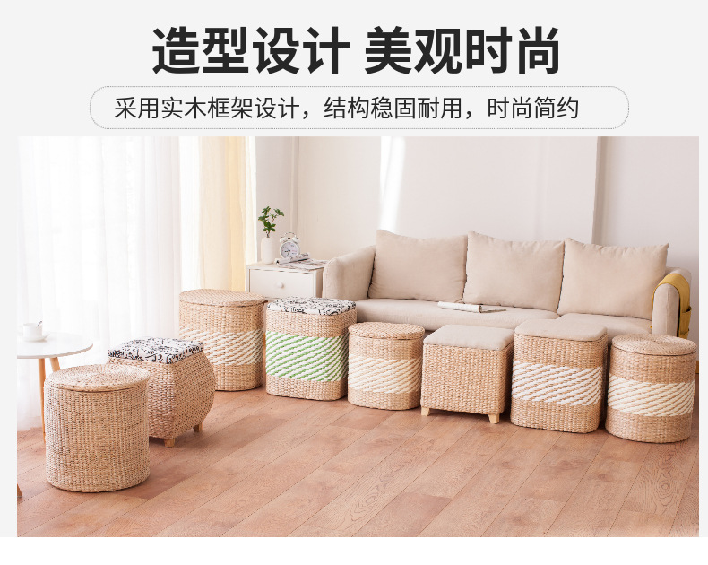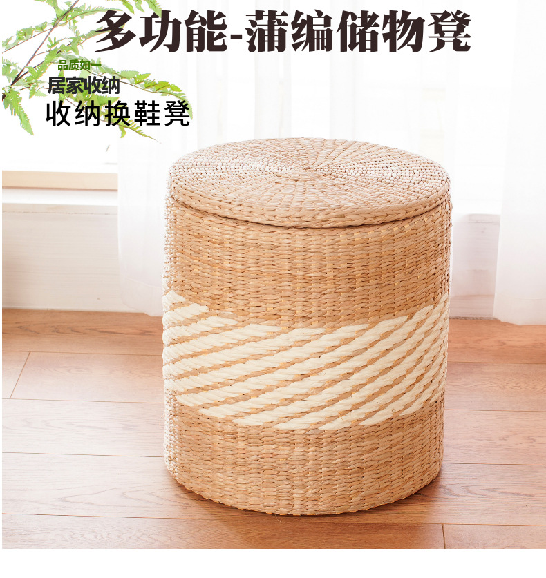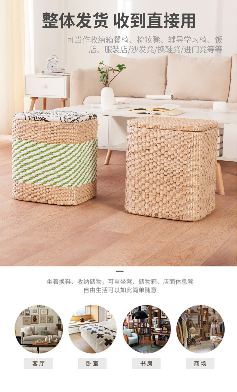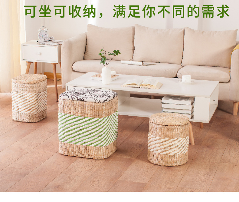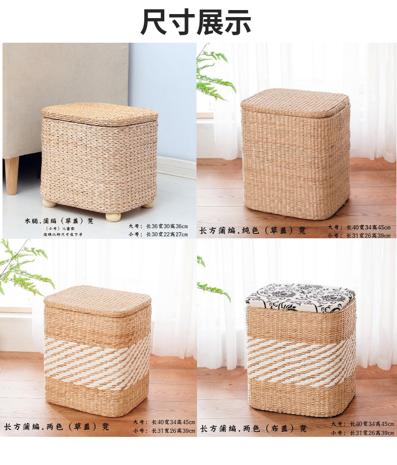 Taburete de almacenamiento de madera maciza tejido de paja Taburete de almacenamiento Taburete de cambio de zapatos tejido de ratán Taburete de maquillaje de sofá puede sentarse personas organizando caja de almacenamiento