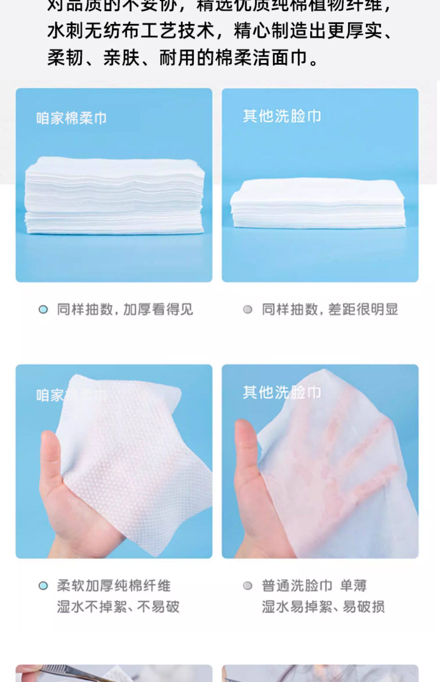 Toalla de limpieza facial desechable de algodón puro toalla de limpieza facial desmaquillaje extraíble toalla de algodón suave seca y húmeda toalla doméstica