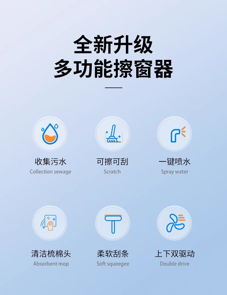 Nuevo tipo de limpiador de vidrio eléctrico doméstico transfronterizo, limpiador de ventanas de mano, fuerte absorción de agua, varilla de artefacto portátil eficiente