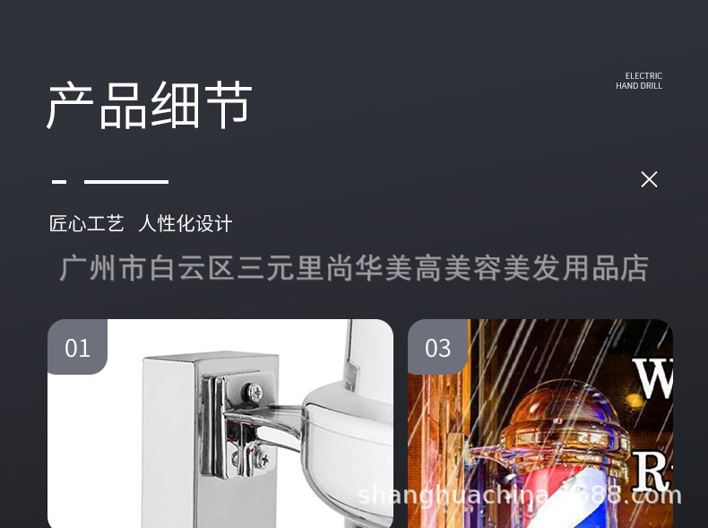 Fabricante de belleza caja de lámparas lámparas de bulbos cromadas barbería de barbería pared de lámpara giratoria