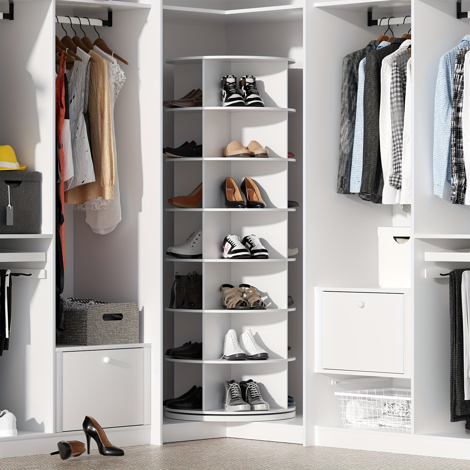 Zapatero giratorio zapatero zapatero multicapa zapatero piso soporte de exhibición de bolsa simple estante de almacenamiento giratorio de 360 grados