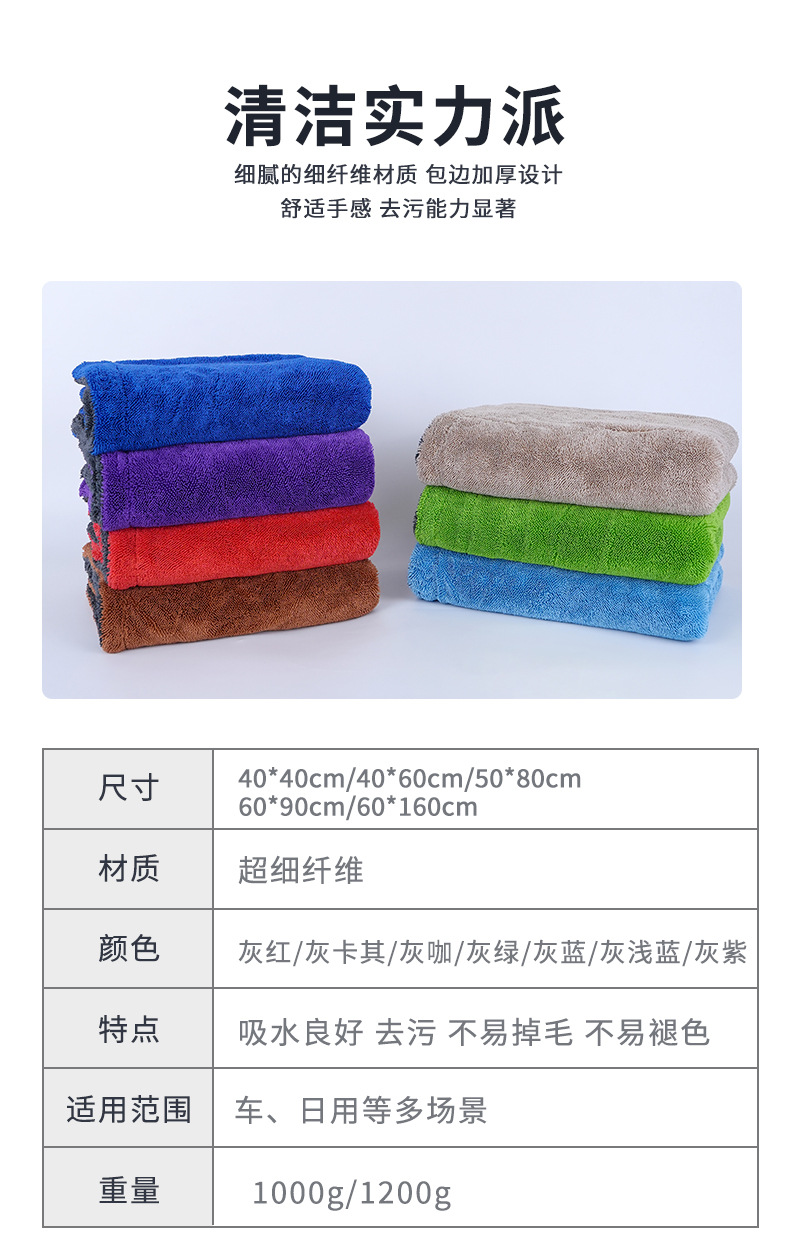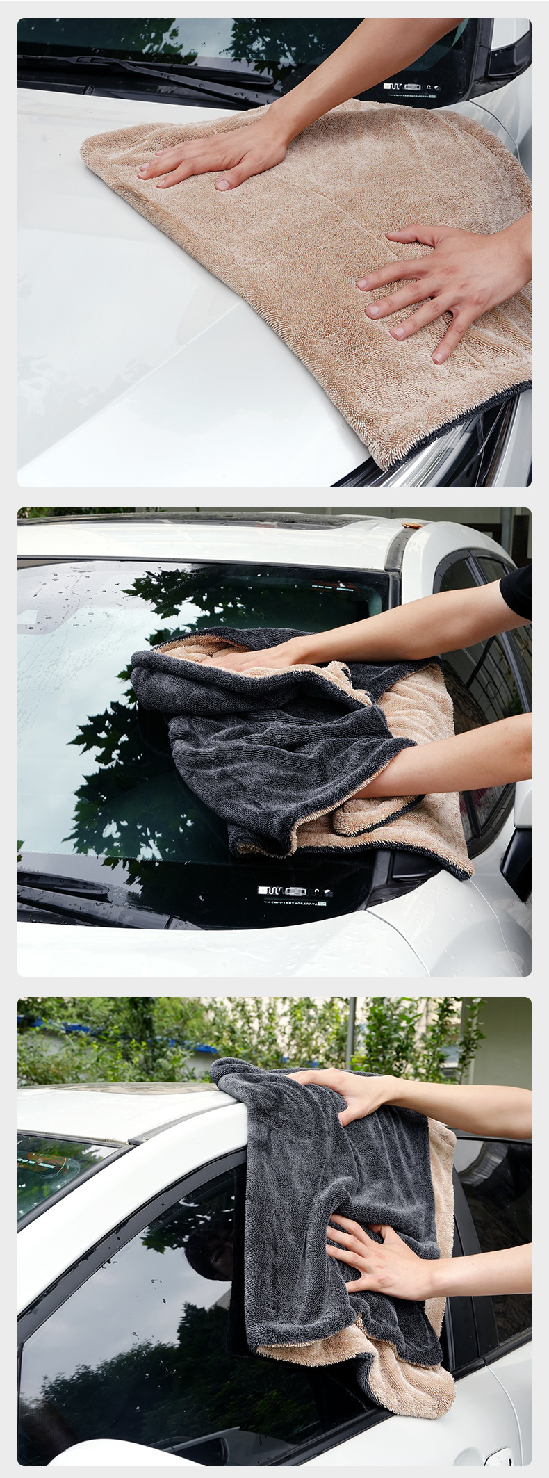 gris verde doble cara pequeña toalla de absorción de agua 1200GSM espesa tela de trenza toalla de microfibra para automóviles