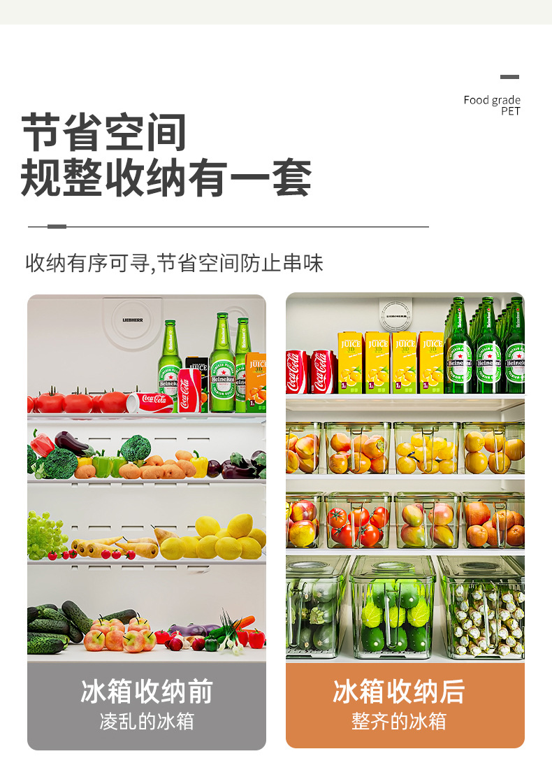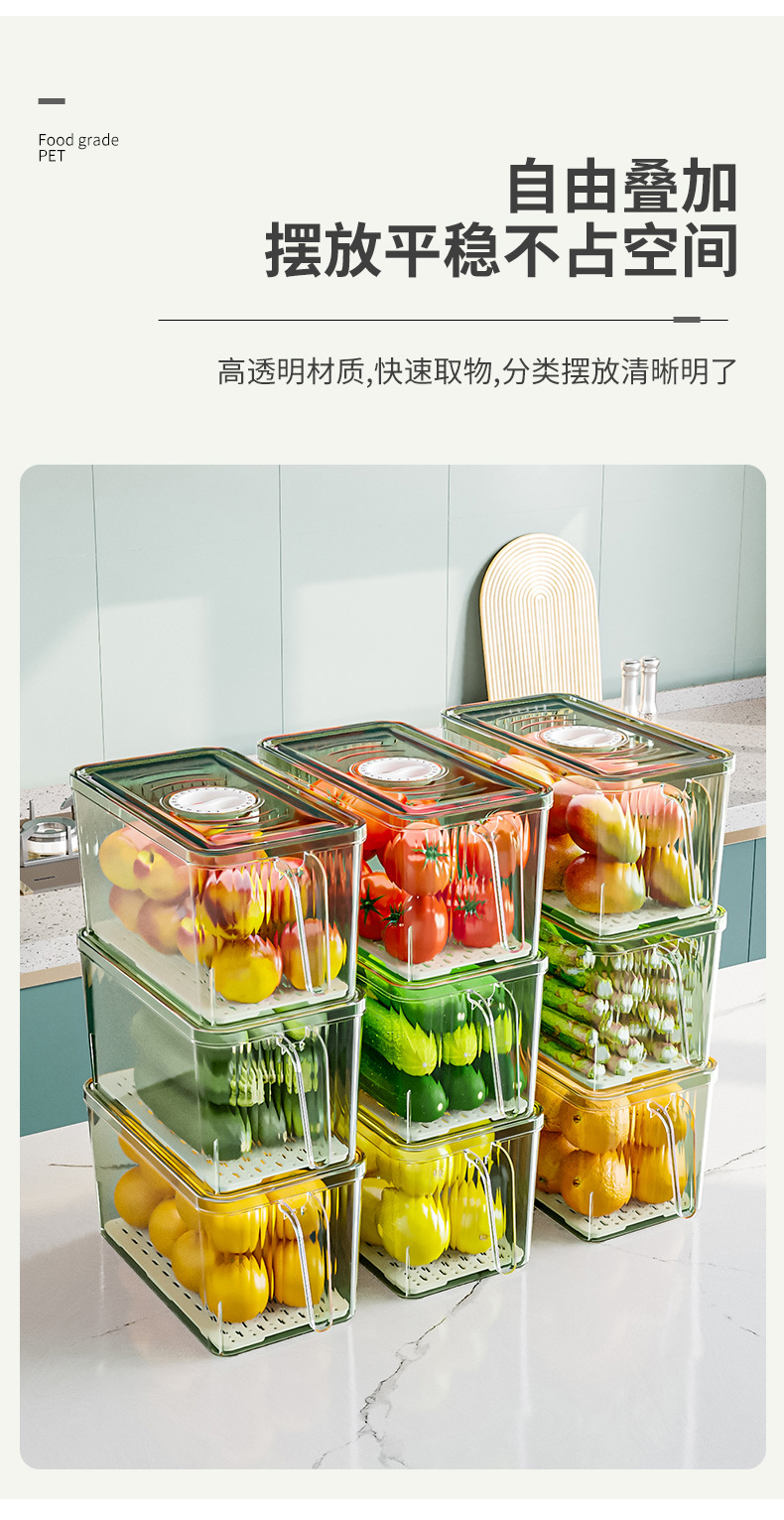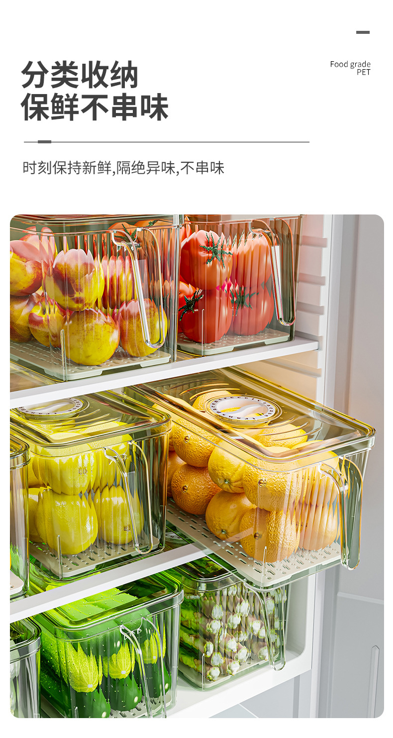 Seleccione estrictamente la caja de almacenamiento del refrigerador, la caja de preservación de la cocina, el grado de almacenamiento de alimentos para el congelador con cubierta, huevos, alimentos, verduras, artefactos mágicos de almacenamiento