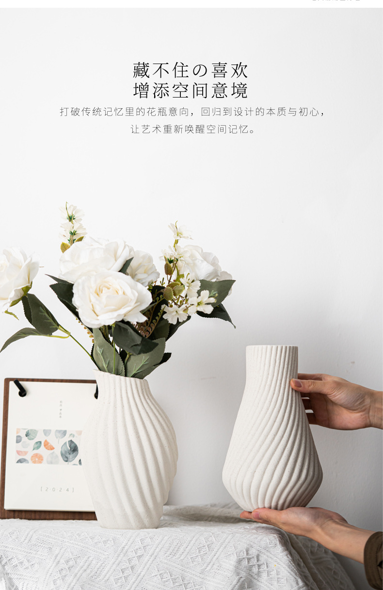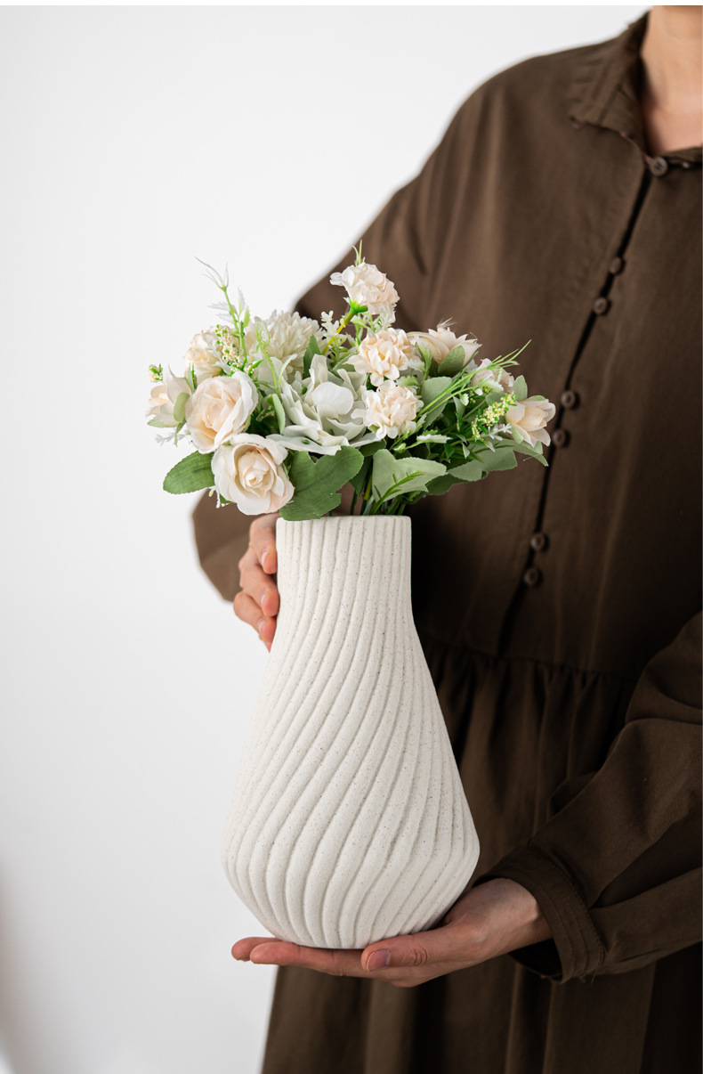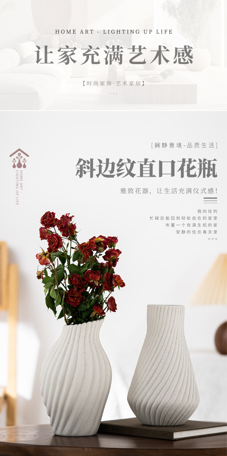 Moderno jarrón de cerámica con borde biselado y diseño simple, con un toque de alta gama, sin esmaltar, para arreglos florales, decoración del hogar y escritorio, venta al por mayor transfronteriza.