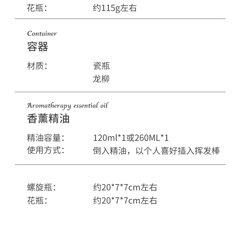 | Tipo fragante | Botella de cerámica + sauce dragón |
