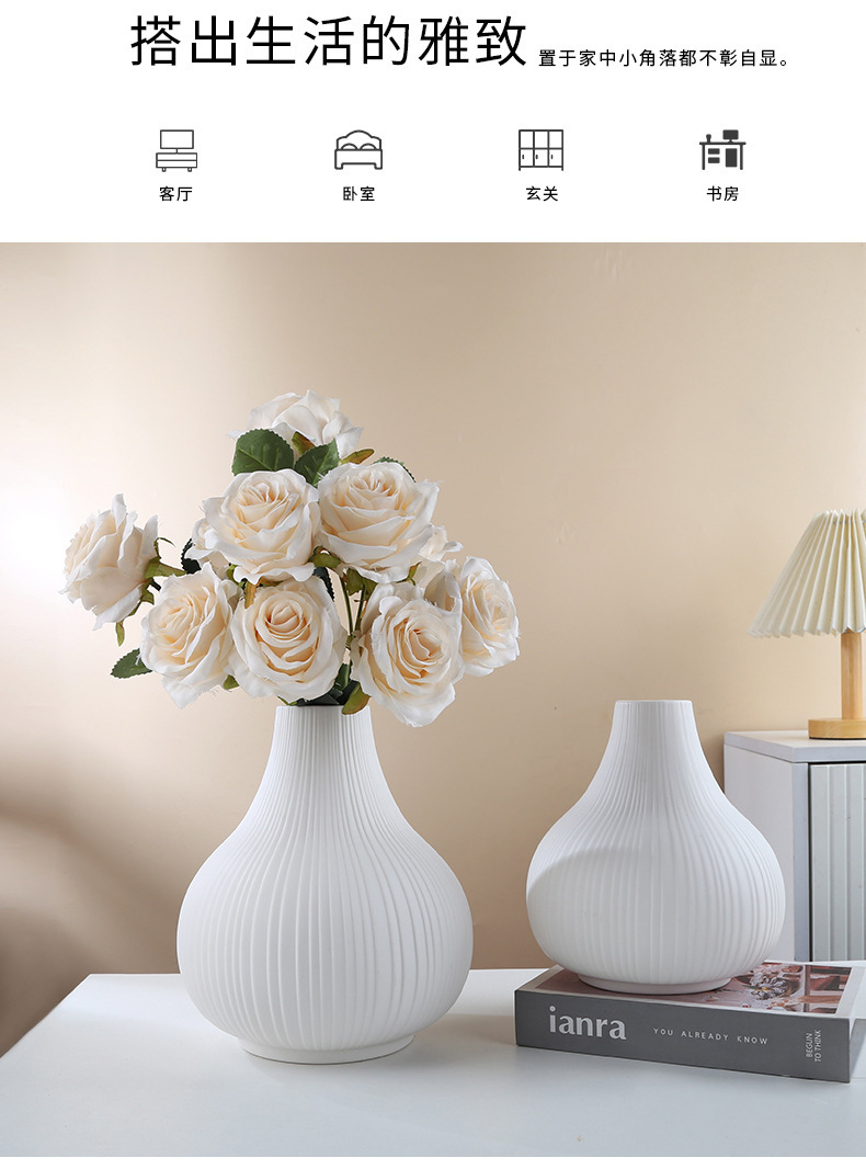 Ornamento simple de vasijas de cerámica gran vasijas de cerámica simple vasijas de hidroponía de porcelana blanca vasijas de flores de sala de estar