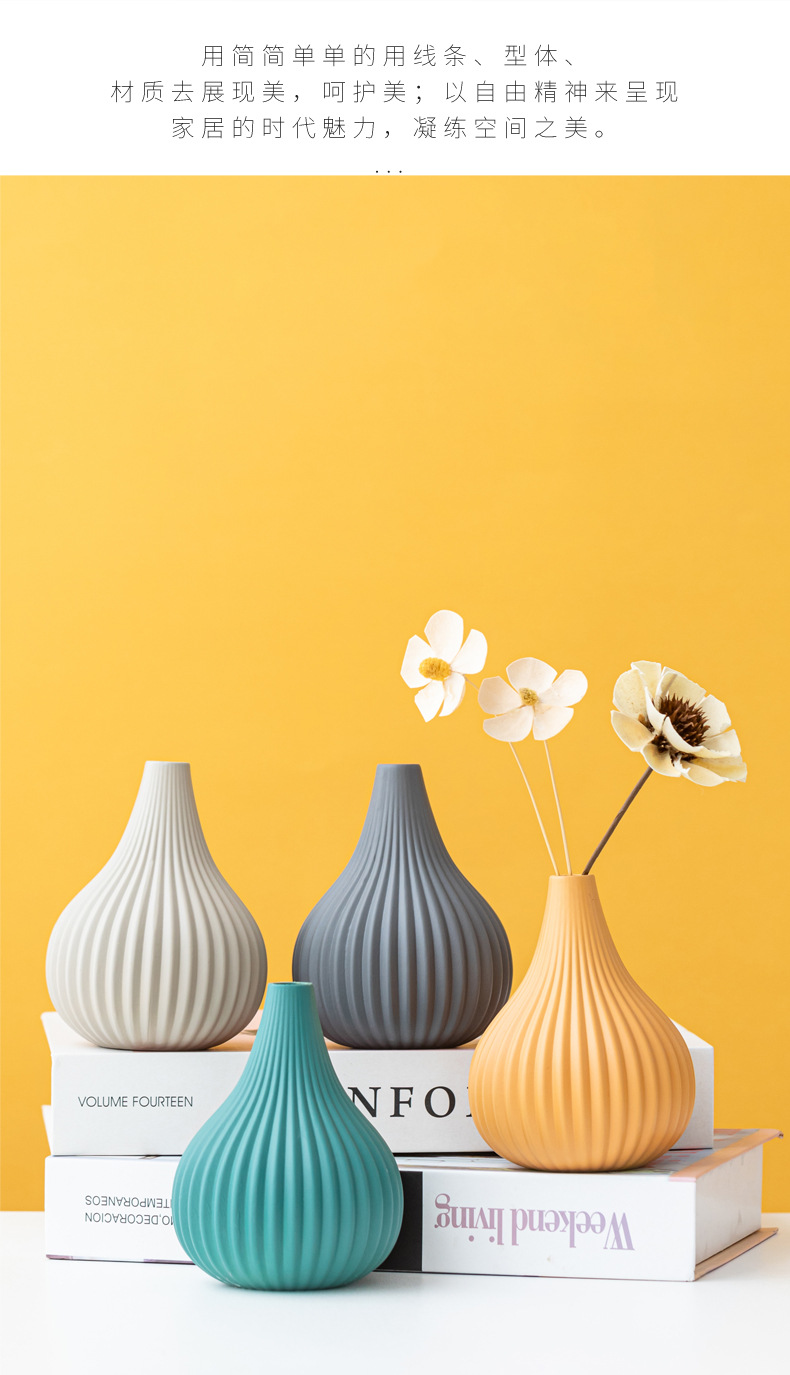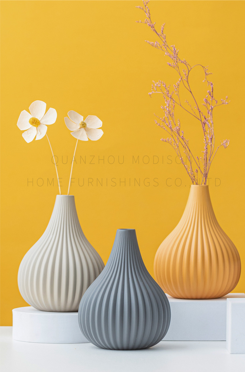 Jarrón pequeño de cerámica mate estilo Morandi, aromaterapia, patrón vertical simple, decoración para el hogar, adornos al por mayor