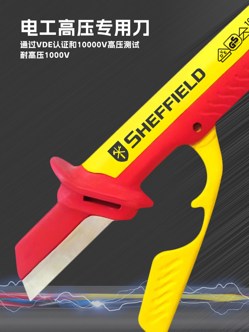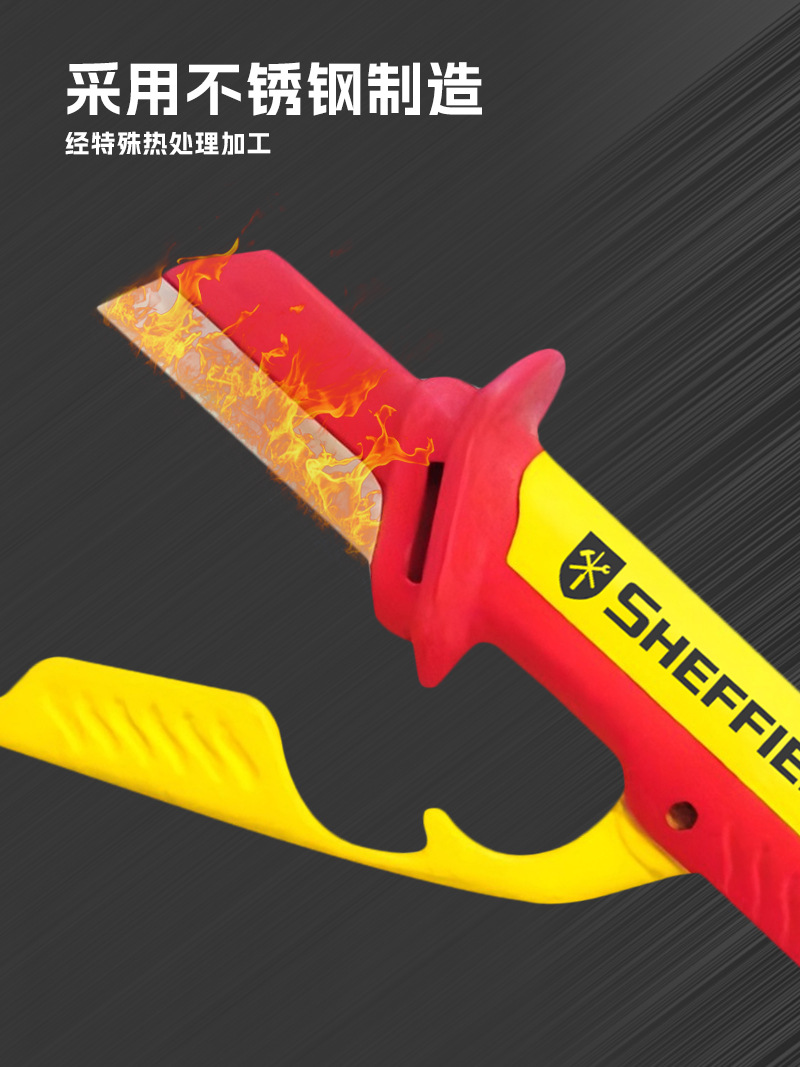 Escudo de acero de grado industrial Cuchillo de electricista con aislamiento de alta dureza Cuchillo de pelado de alambre y cable especial para electricista Cuchillo de pelado de hoja curva recta