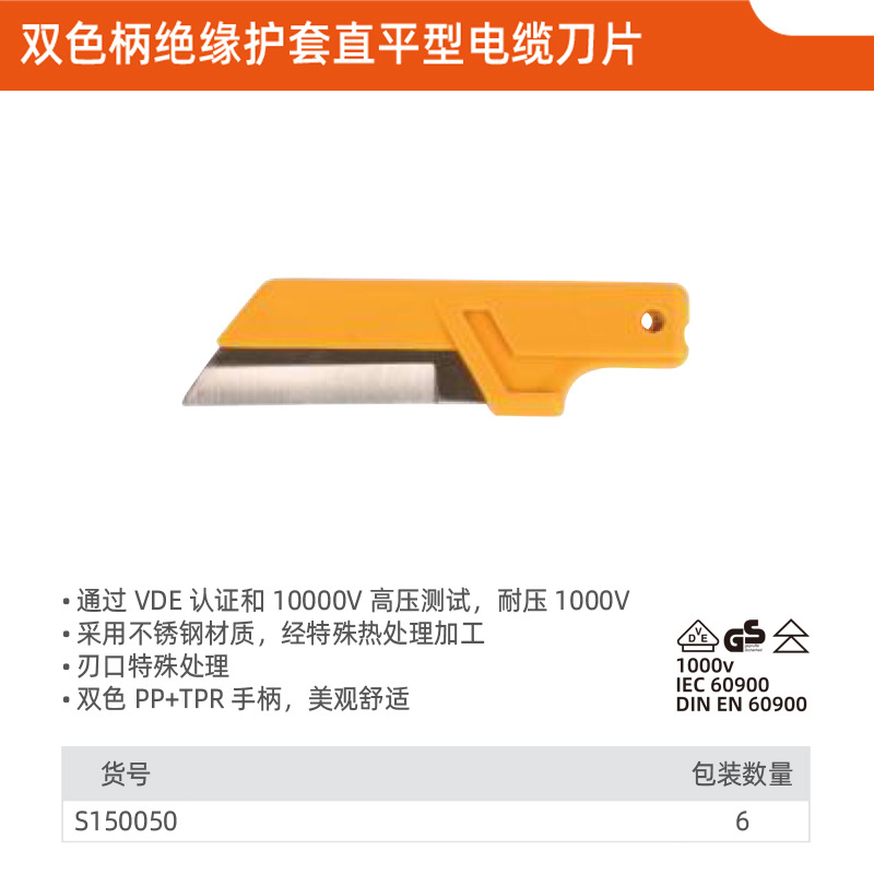 | Modelo | Cuchillo de cable plano recto aislado de dos colores moldeado por inyección 50 × 180mm,Cuchillo de cable redondo pequeño con aislamiento de dos colores moldeado por inyección 28 × 155mm,Cuchillo de cable tipo hoz aislado de dos colores moldeado por inyección 50 × 180mm,Cuchillo de cable plano recto con revestimiento de aislamiento de dos colores moldeado por inyección 50 × 180mm,Cuchillo de cable de gancho y hoz con aislamiento de dos colores moldeado por inyección 38 × 155mm,Cuchillo de cable intercambiable plano recto aislado de dos colores moldeado por inyección 58 × 185mm |