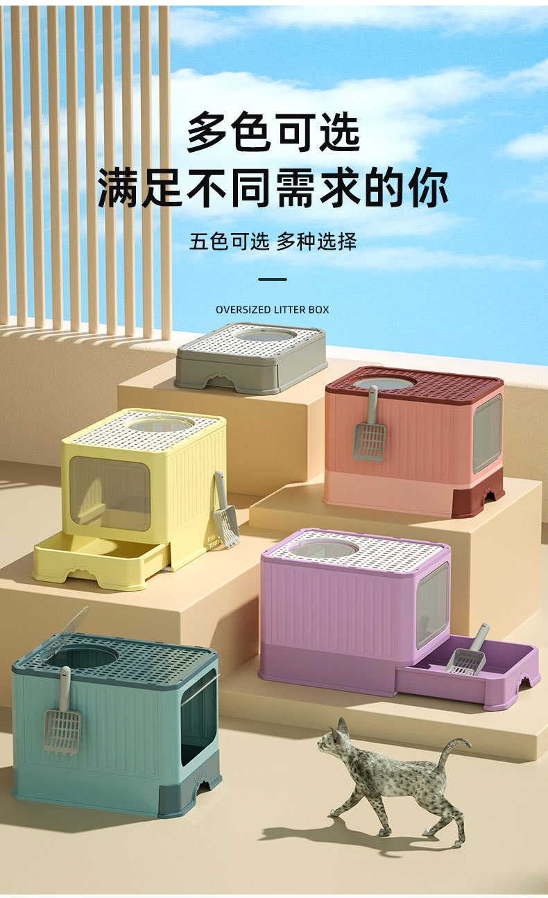 Caja de arena para gatos de gran tamaño completamente cerrada a prueba de salpicaduras cajón plegable gato inodoro PP material fabricante en stock pelo rápido