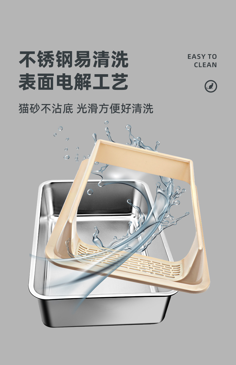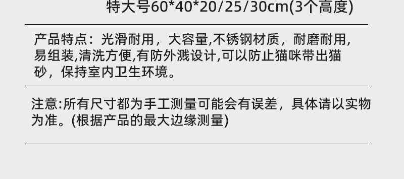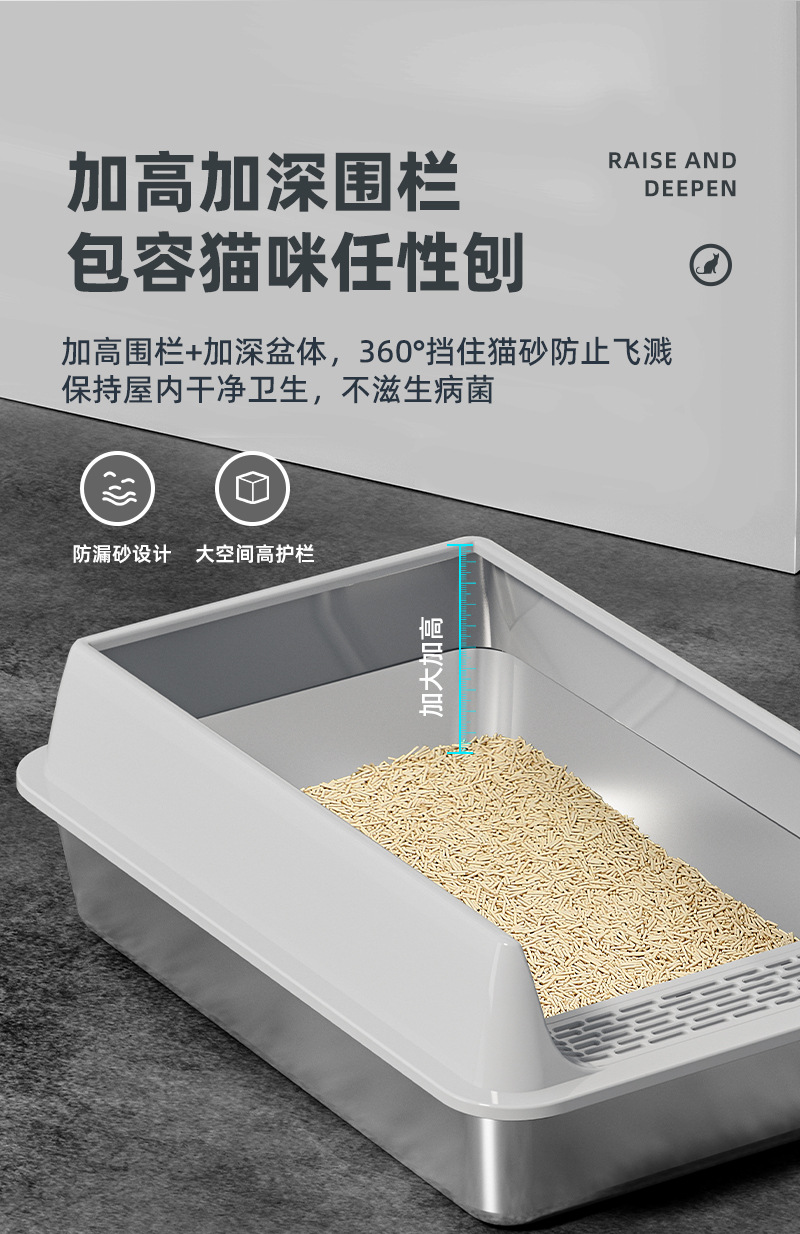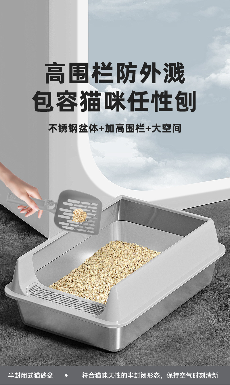 Caja de arena para gatos semicerrada de gran tamaño, cerca de elevación de acero inoxidable, baño para gatos de gran espacio, antisalpicaduras externas, lavabo de heces para gatos al por mayor
