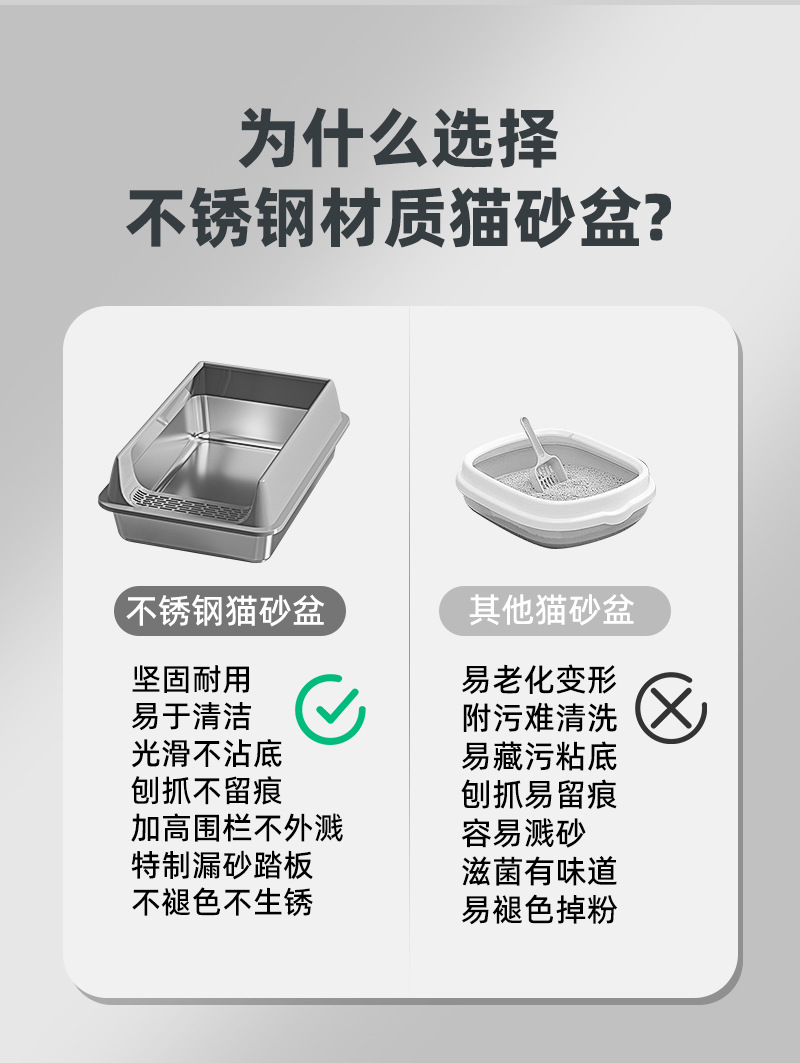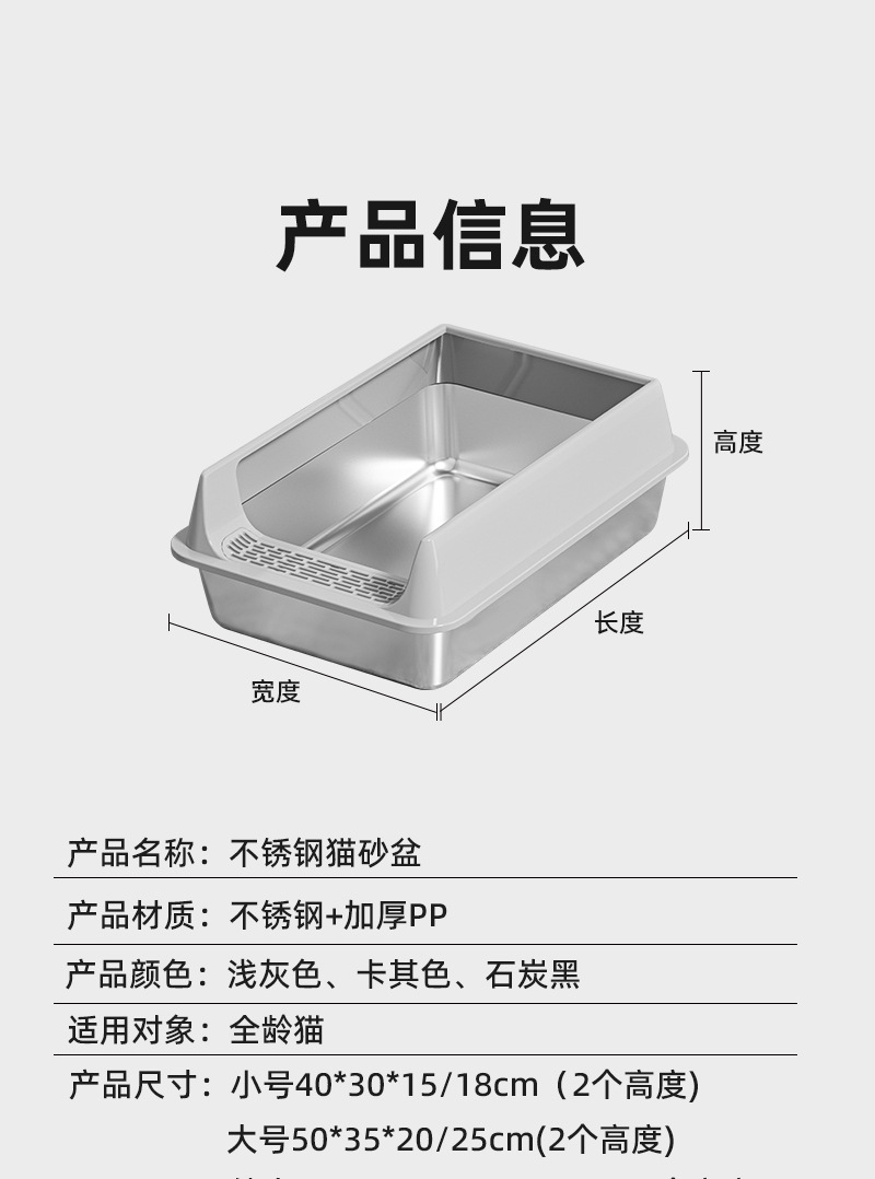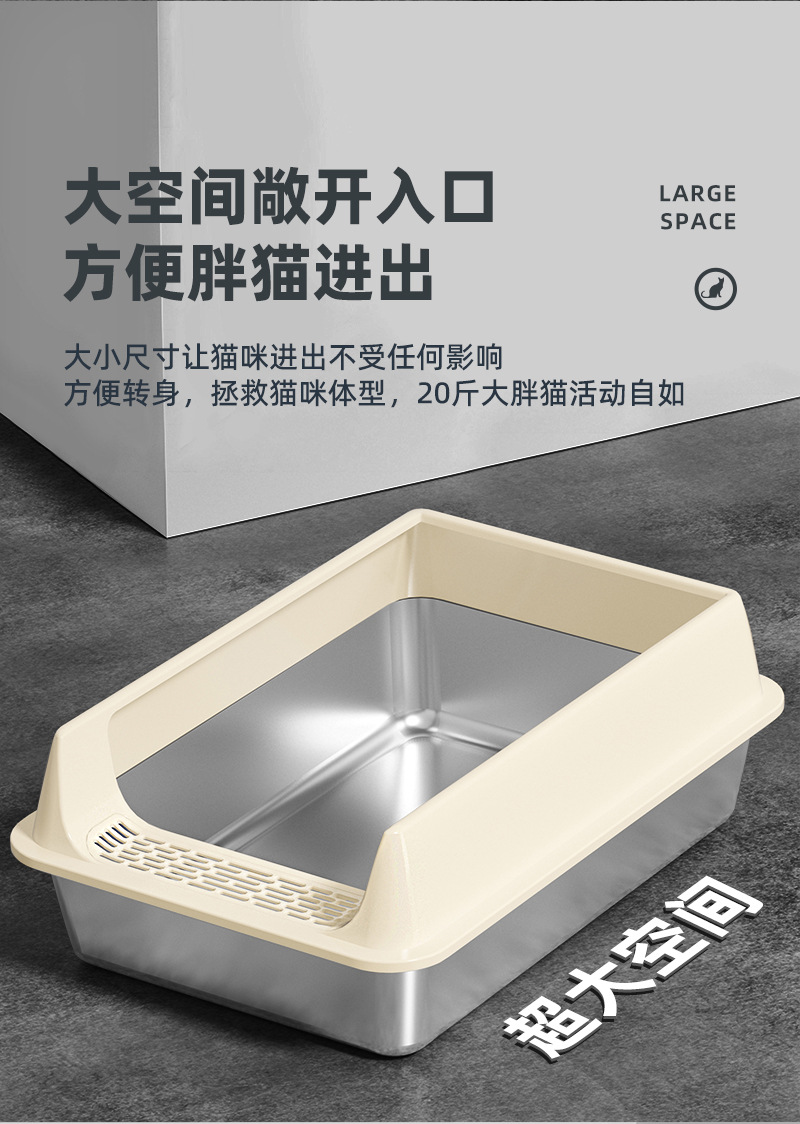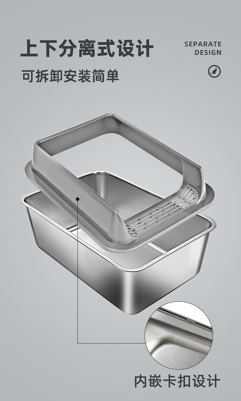 Caja de arena para gatos semicerrada de gran tamaño, cerca de elevación de acero inoxidable, baño para gatos de gran espacio, antisalpicaduras externas, lavabo de heces para gatos al por mayor