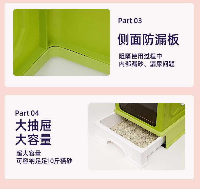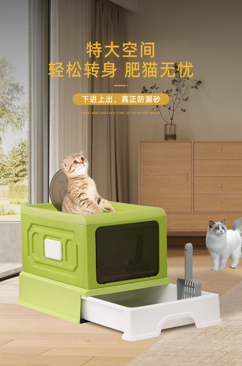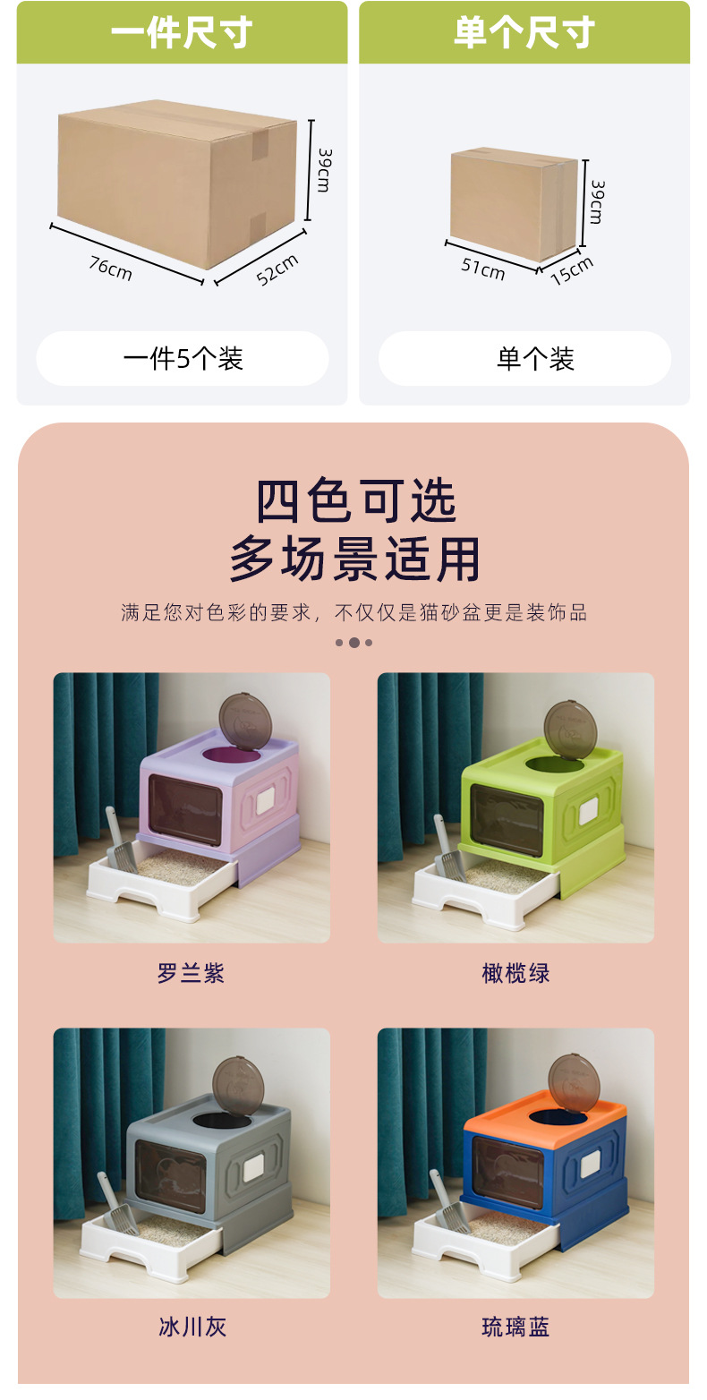 Super gran lavabo de arena para gatos completamente cerrado tipo cajón anti-splashing grueso lavabo de arena para gatos con frotador de cabello en stock