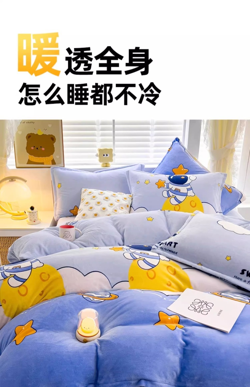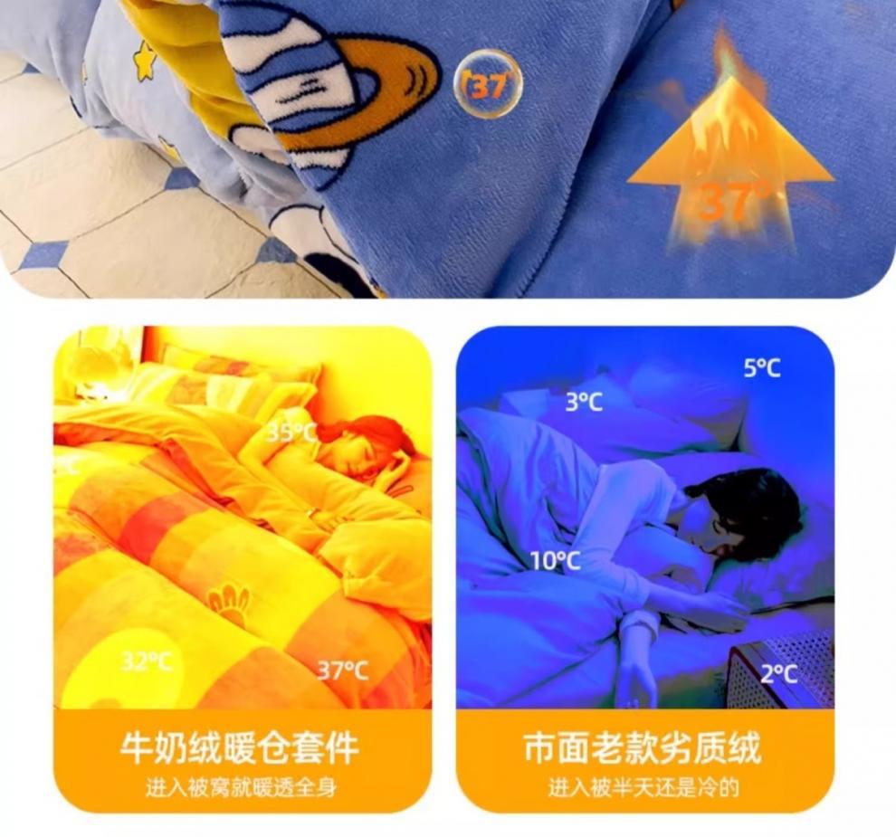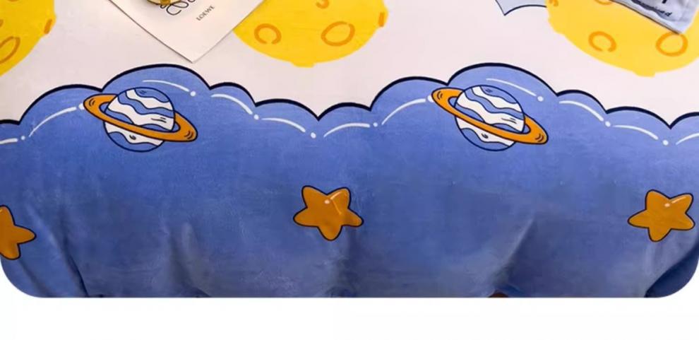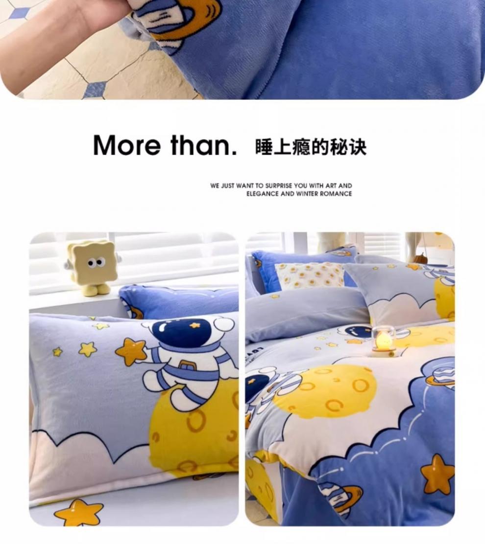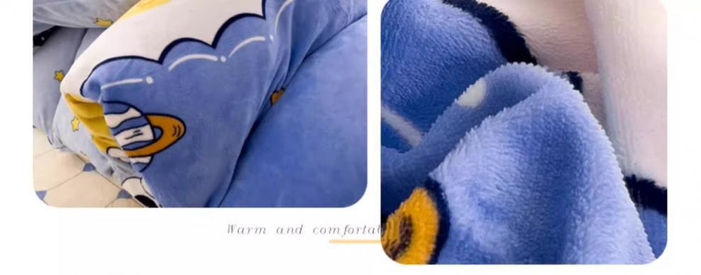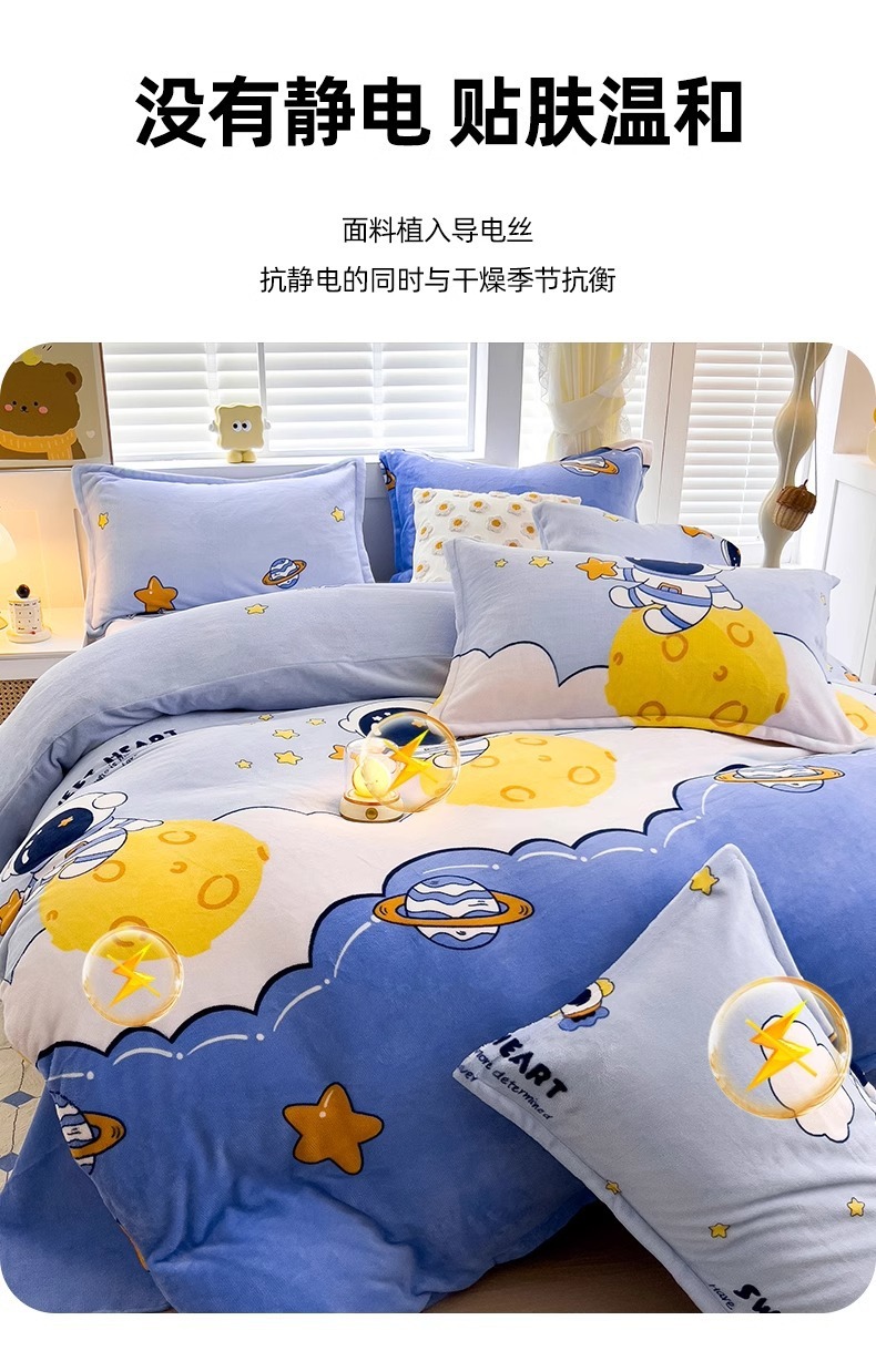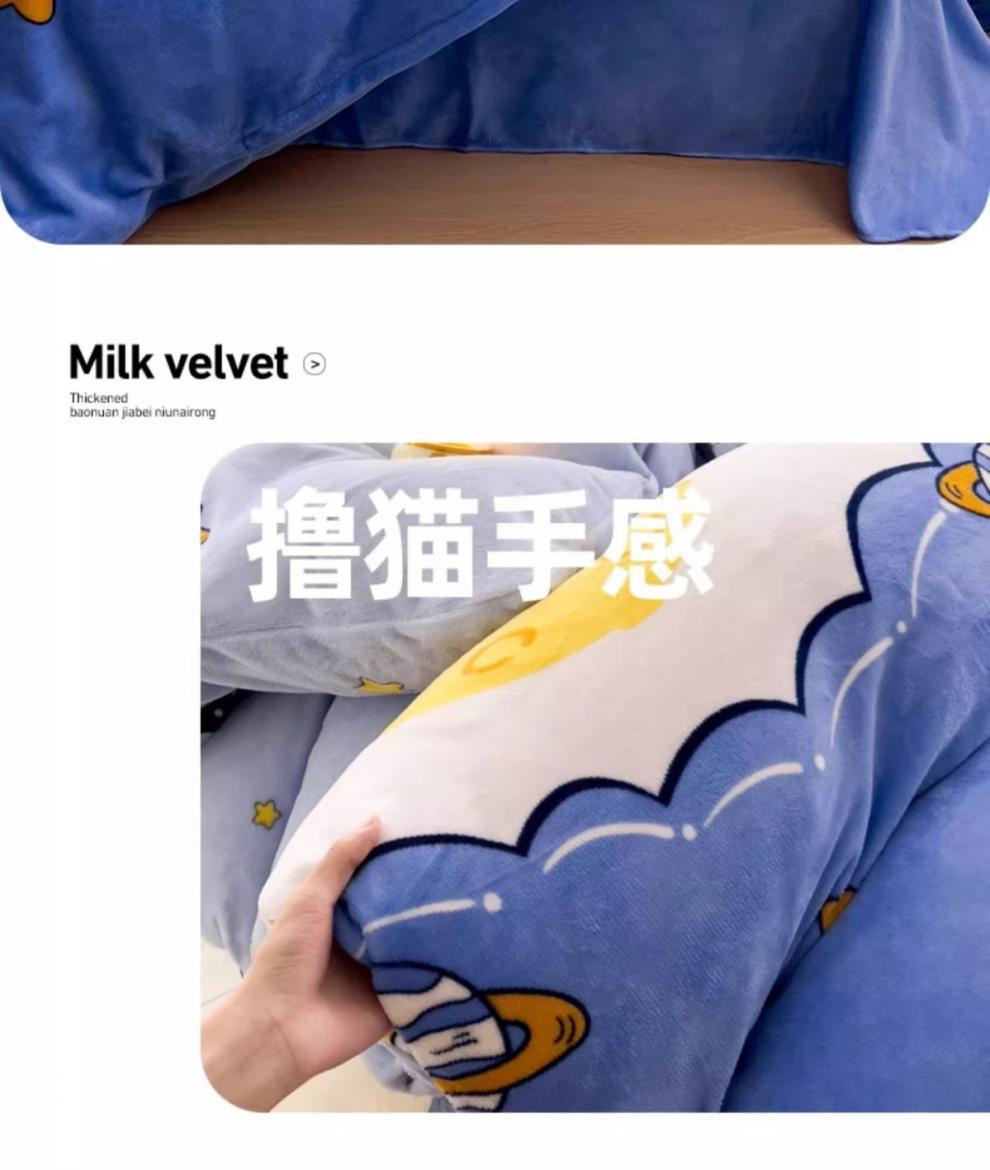 Cubierta de edredón de lana de leche de invierno de dibujos animados para niños pieza individual 150x200 terciopelo de coral más terciopelo grueso 1.5 juego de cama de cuatro piezas