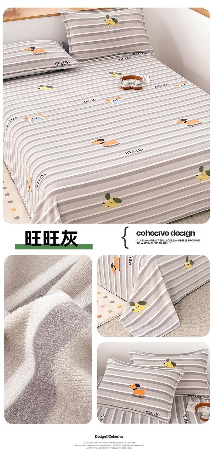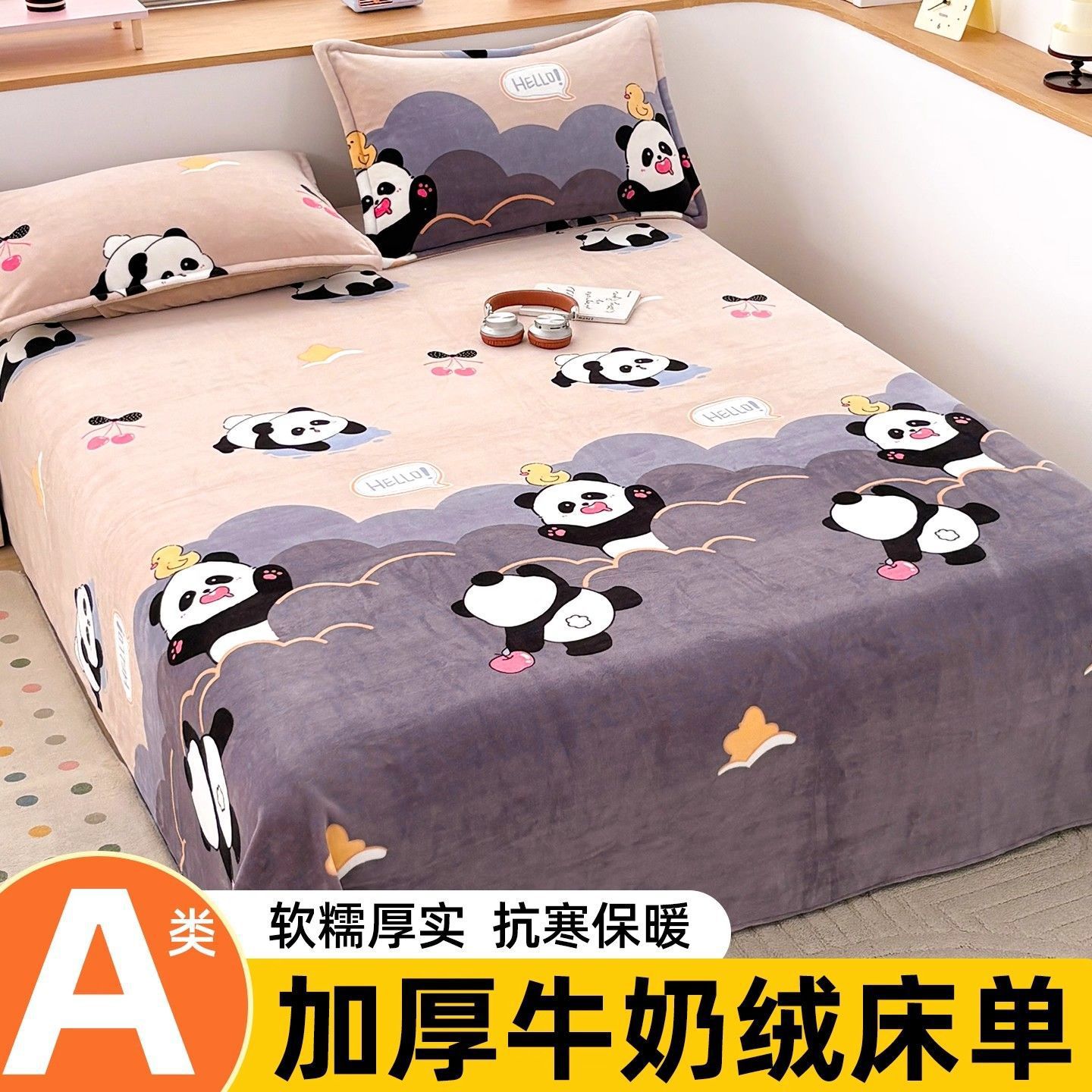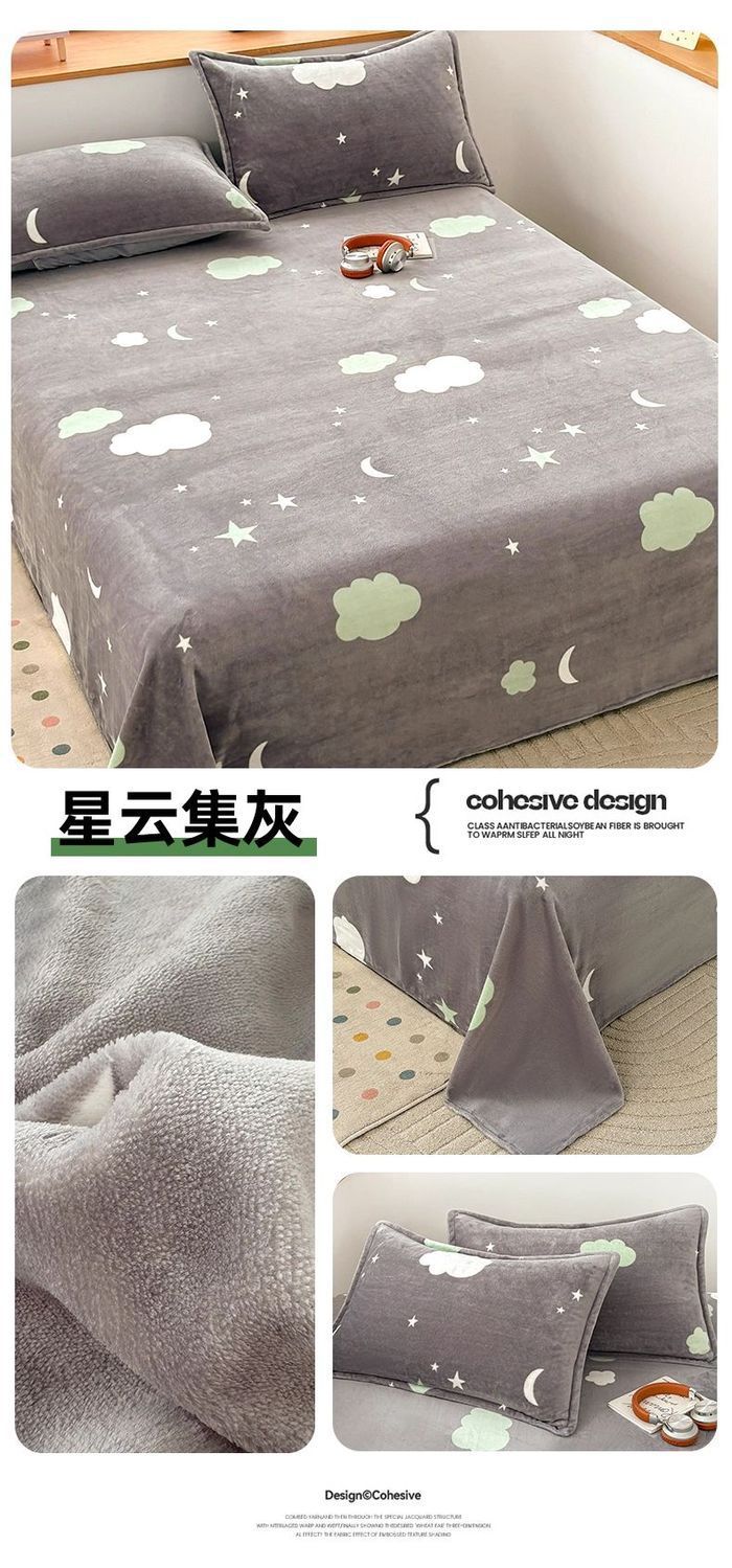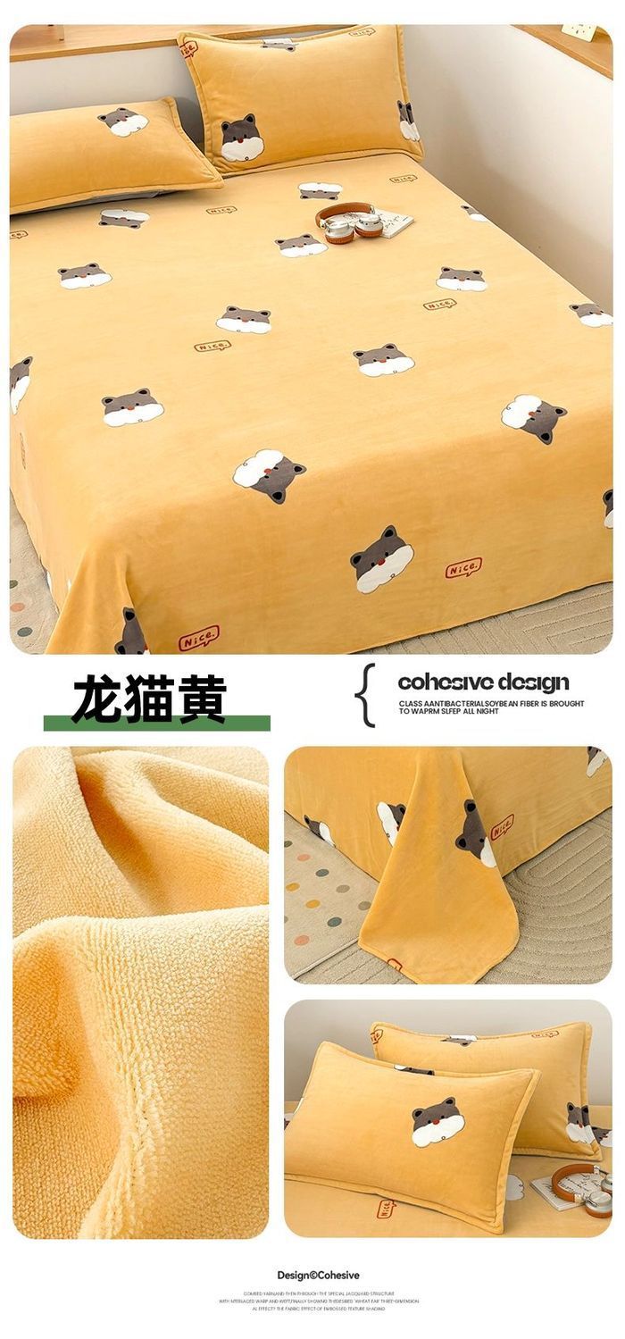 Cartoon leche de seda sábanas de seda de coral más grueso sábanas de seda de franela dormitorio de estudiantes de invierno cálido individual