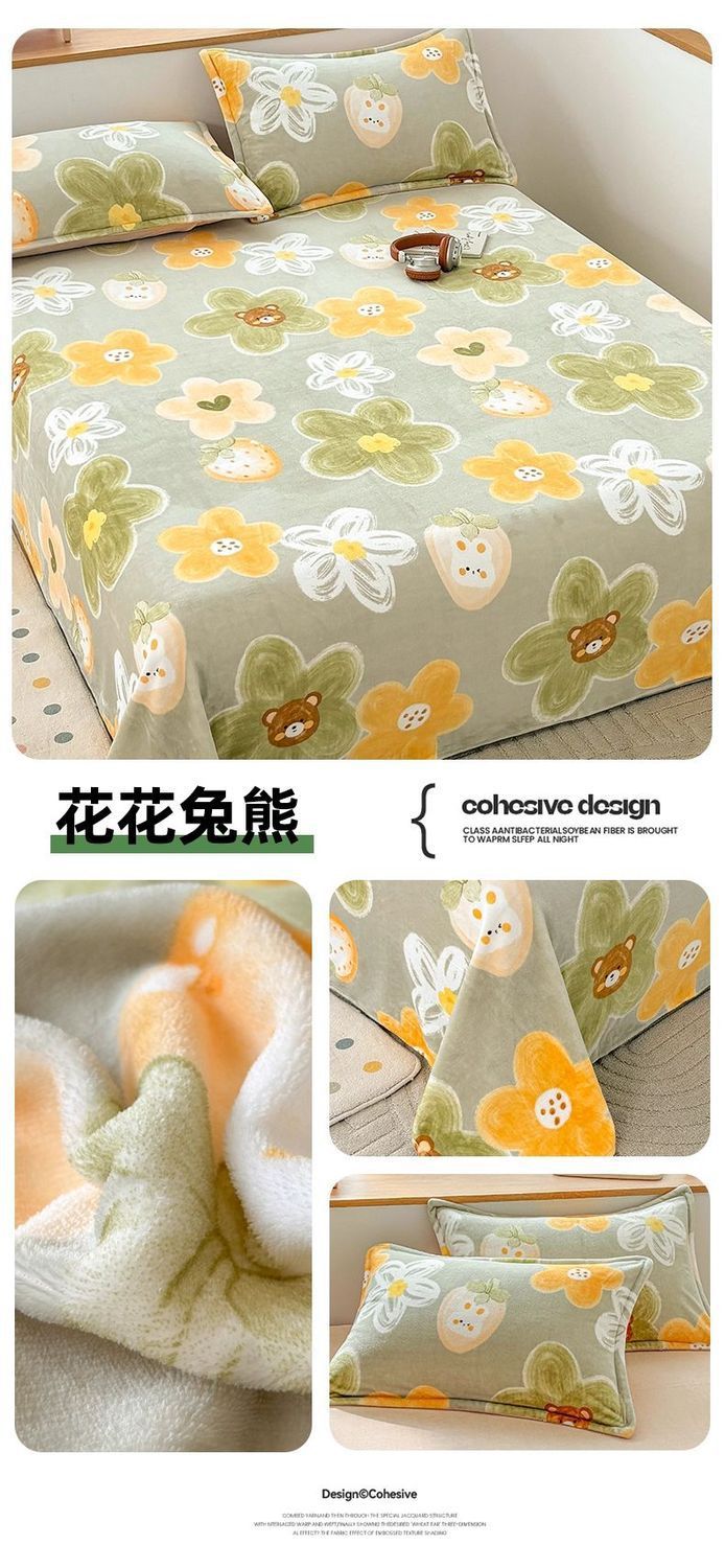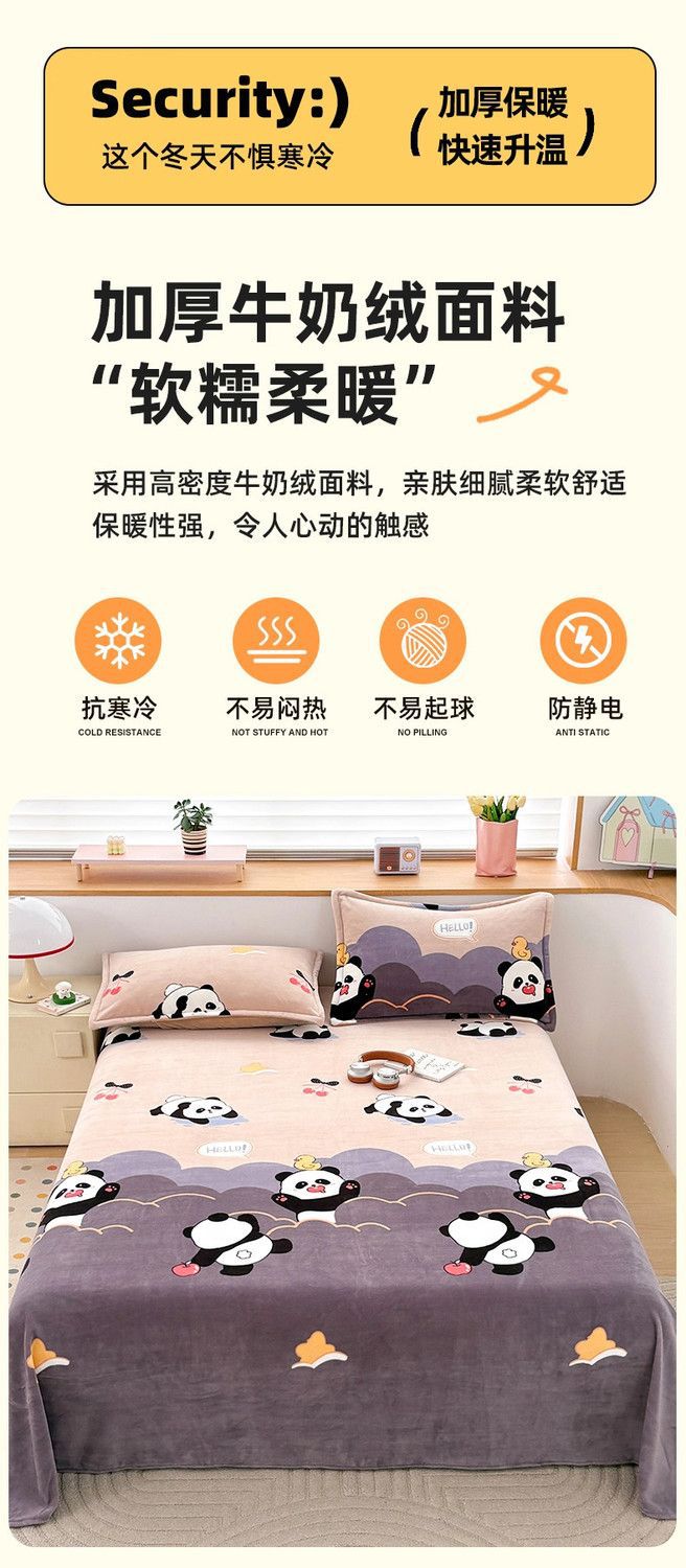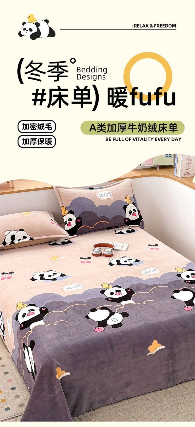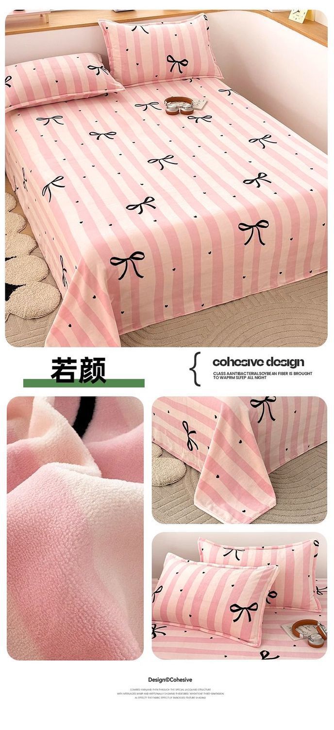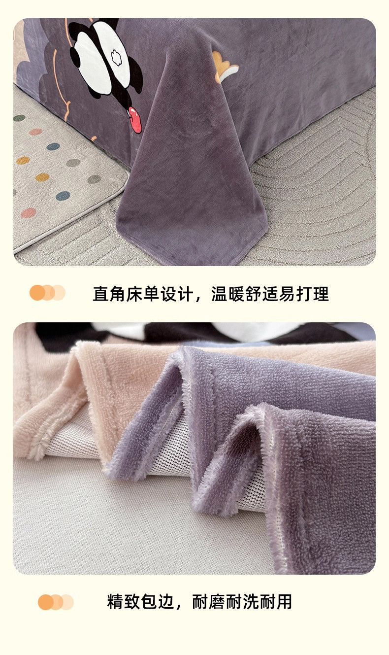 Cartoon leche de seda sábanas de seda de coral más grueso sábanas de seda de franela dormitorio de estudiantes de invierno cálido individual