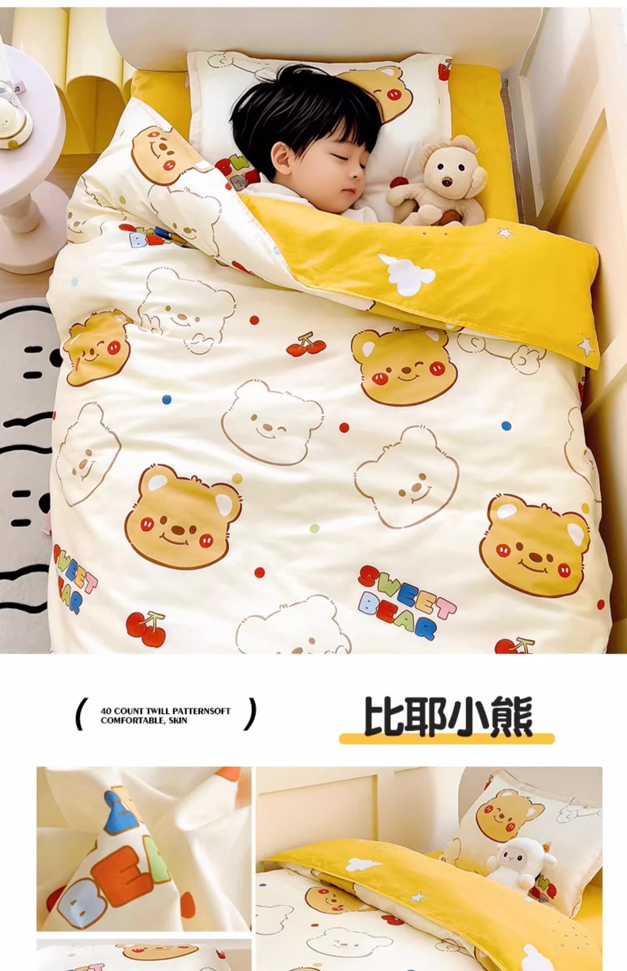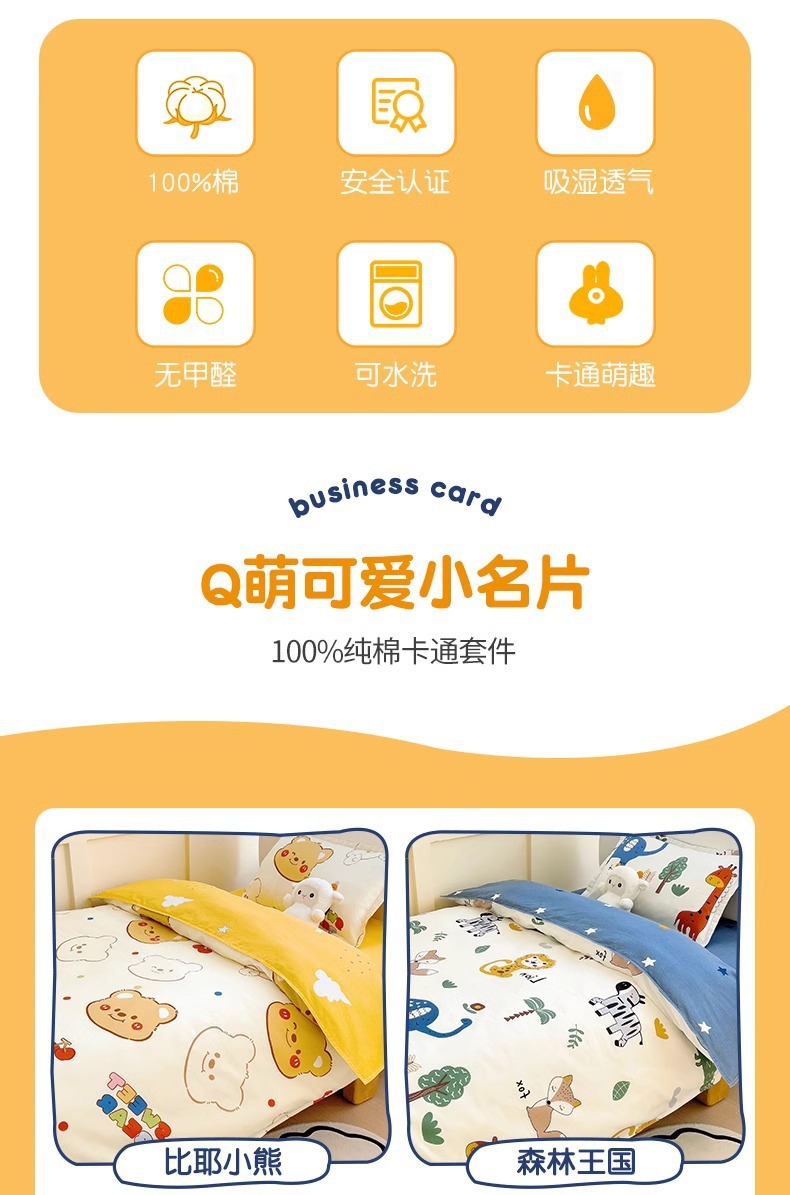 Algodón 100% algodón cubierta de edredón para niños de una sola pieza de dibujos animados 120x150 cubierta de edredón para bebés de un solo niño de tres piezas