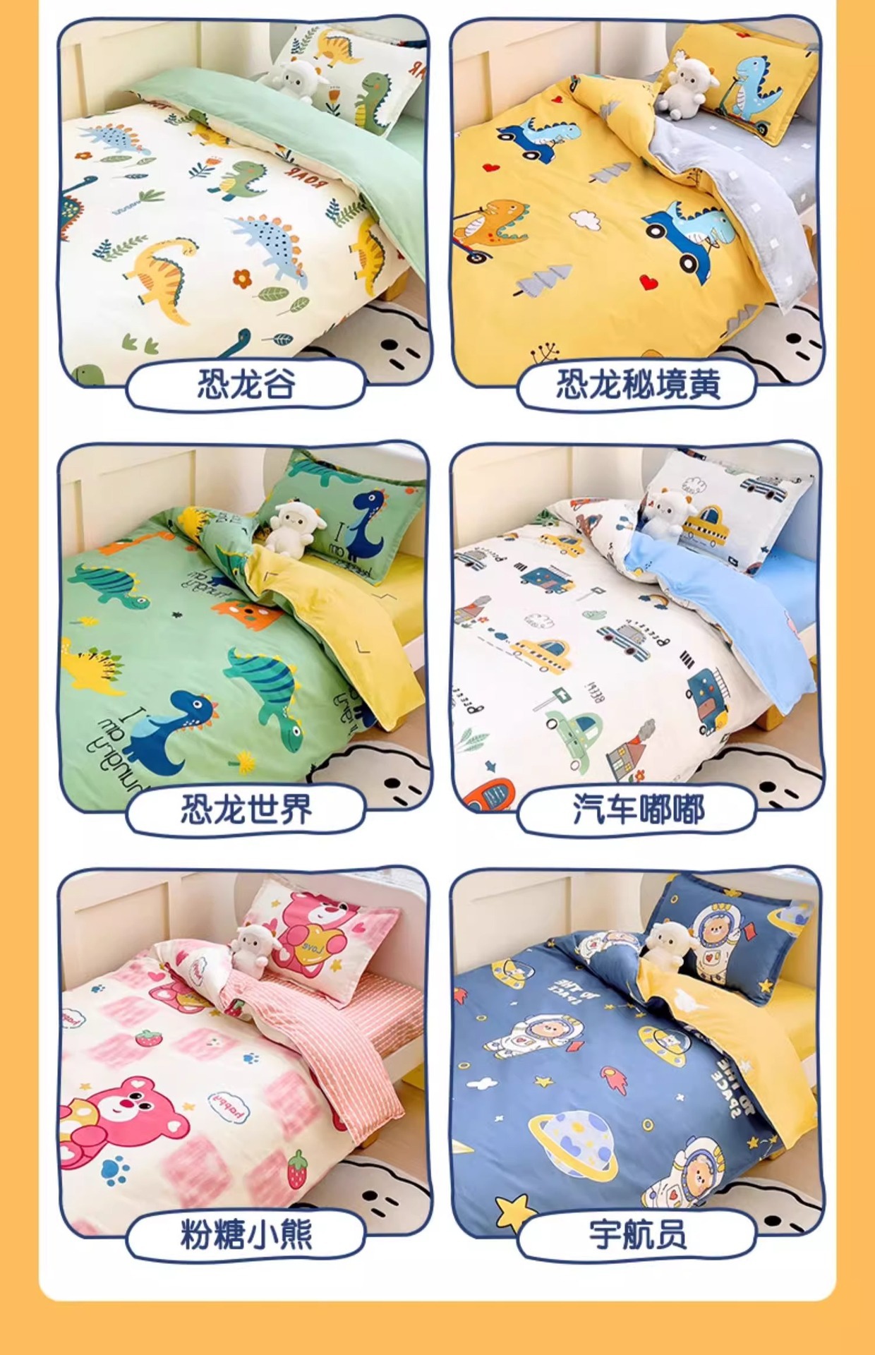 Set de tres piezas para jardín de infantes [cucha de edredón 120x150cm / funda de colchón 60x135 / funda de almohada 30x50)