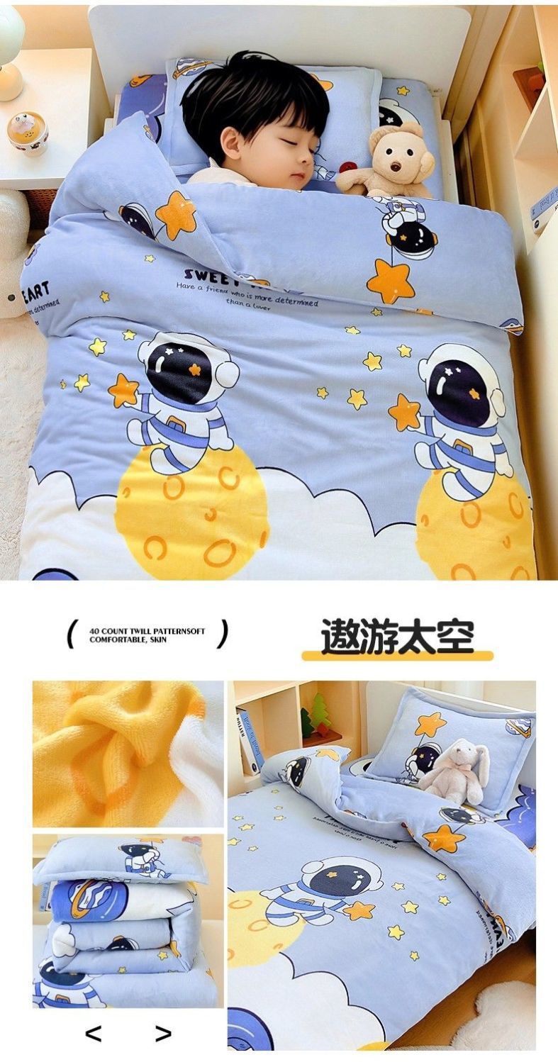 Invierno de lana de leche para niños cubierta de una sola pieza niñas jardín de infantes de lana de coral doble cara cubierta de lana gruesa cubierta de tres partes