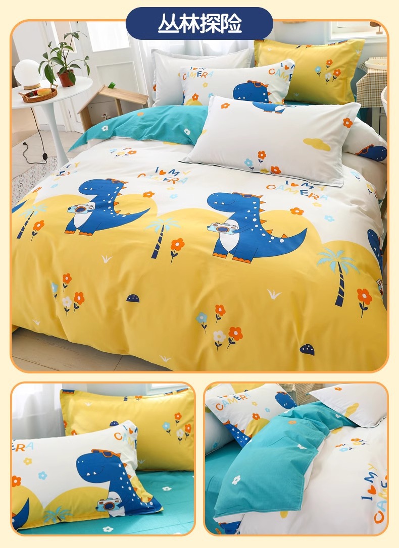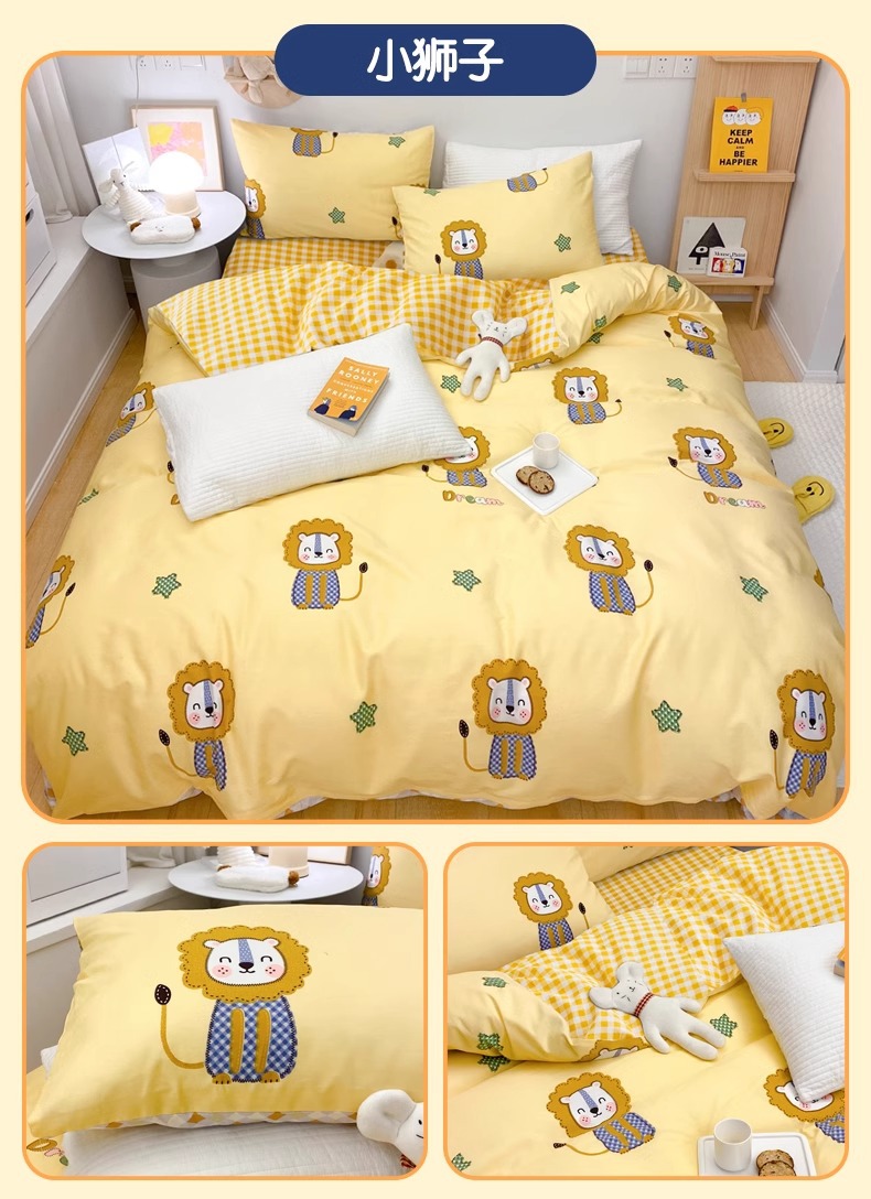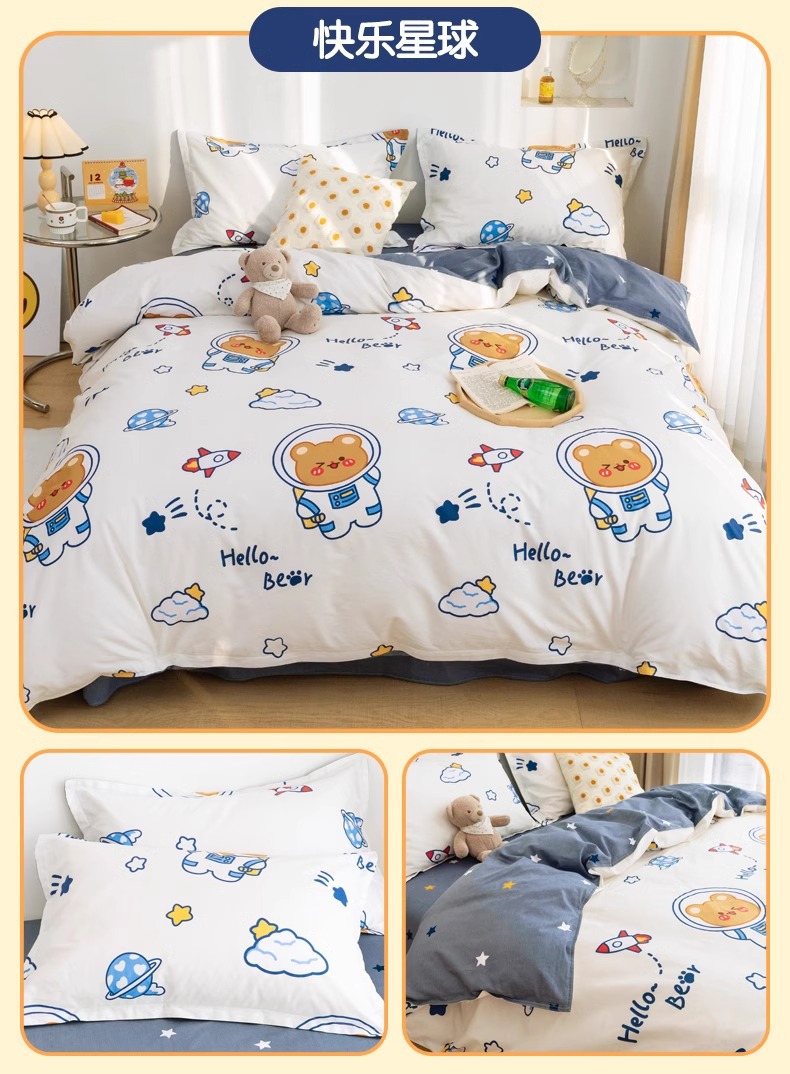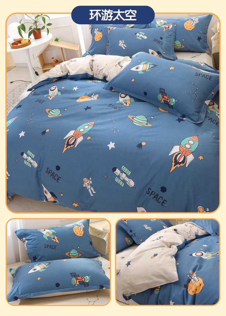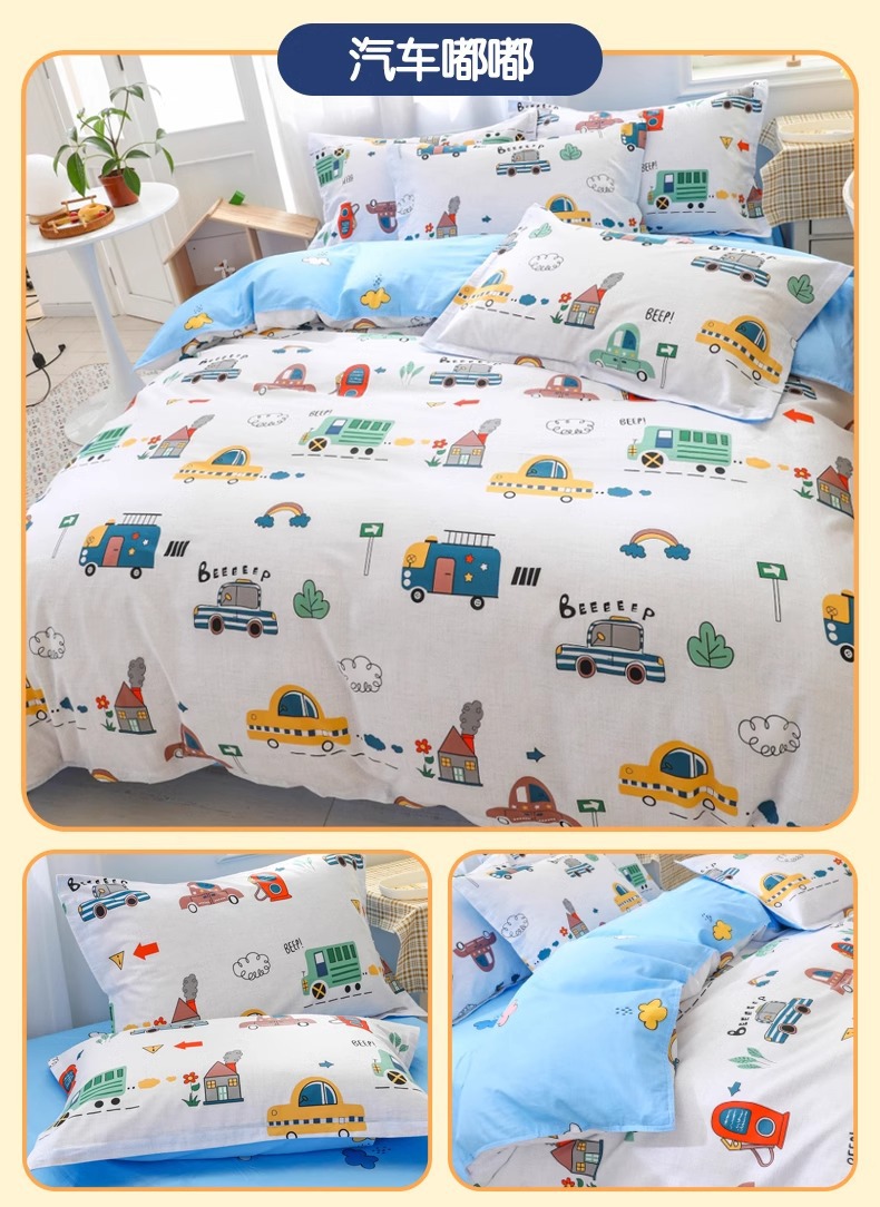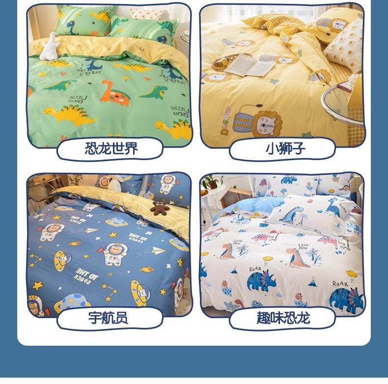 Juego de cuatro piezas para niños de dibujos animados para niños 4 sábanas de algodón puro, funda de edredón, juego de cama, sábana, juego de tres piezas 3