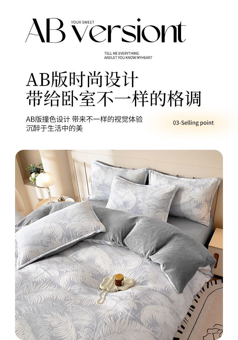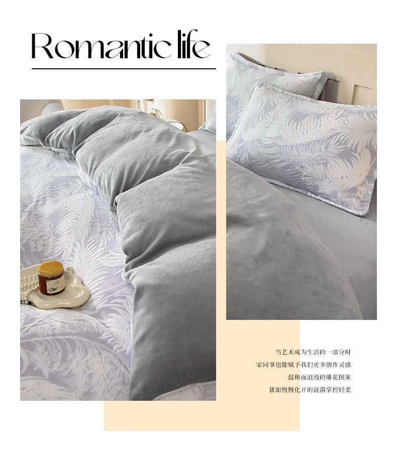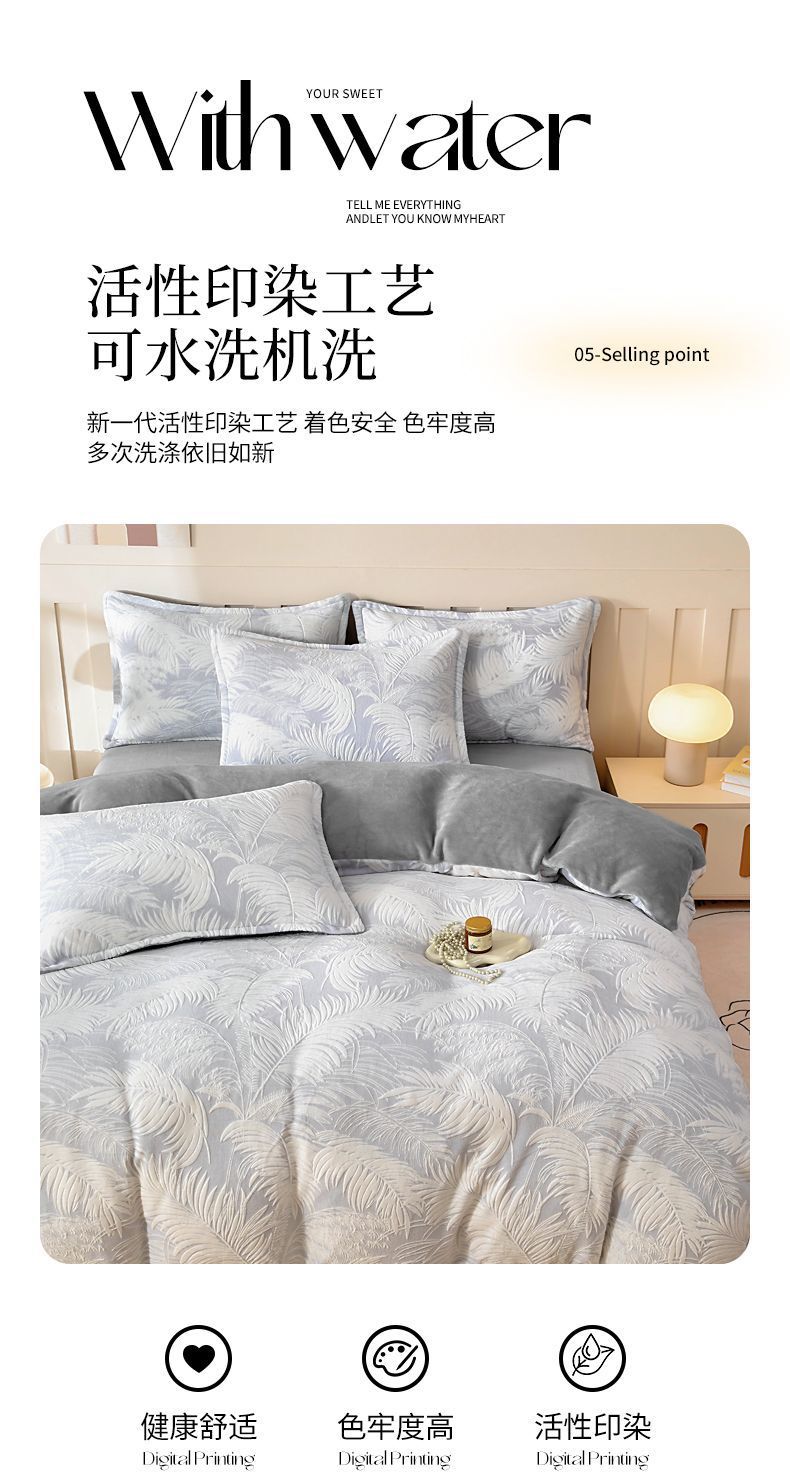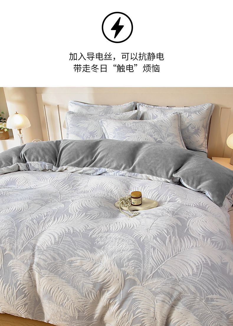 Cama de invierno con cuatro piezas de seda de alta calidad, sábanas de seda de coral gruesas con tres piezas de invierno