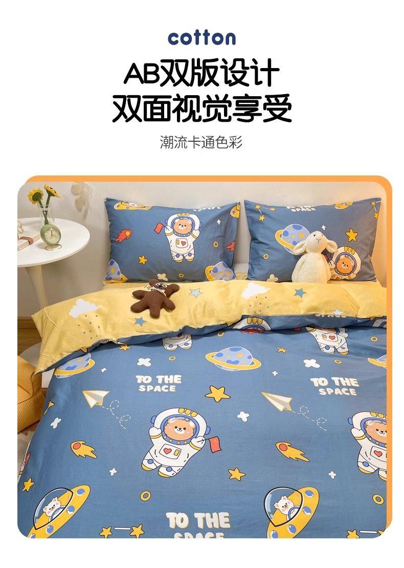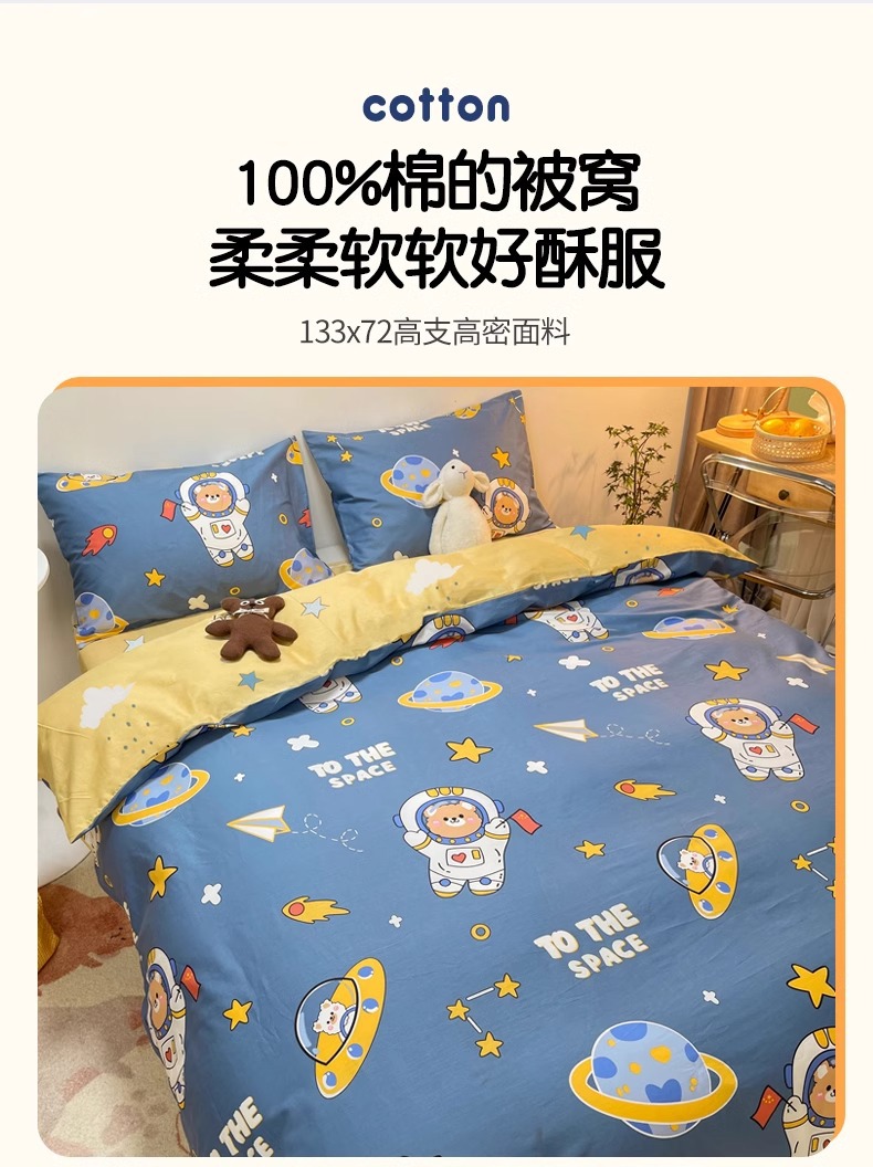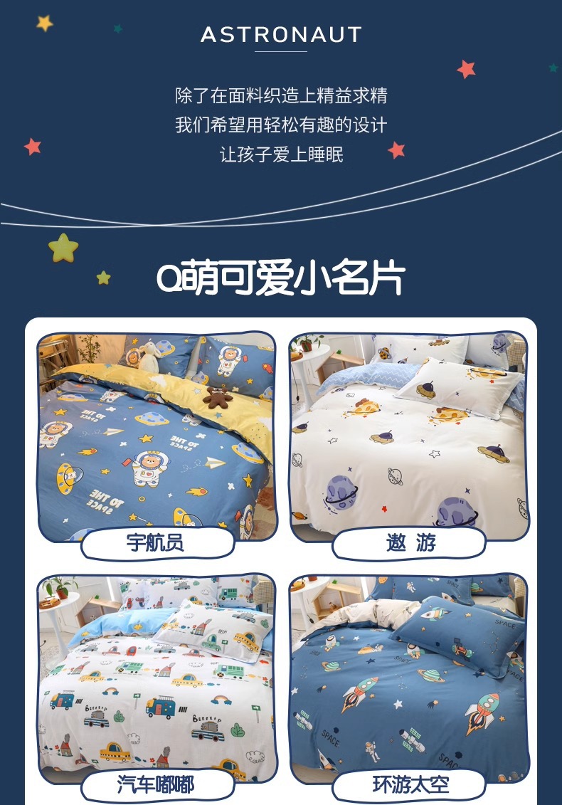 Cubierta de edredón de algodón 100 de una sola pieza de dibujos animados para niños niño de jardín de infantes 120x150x200x230 sábana