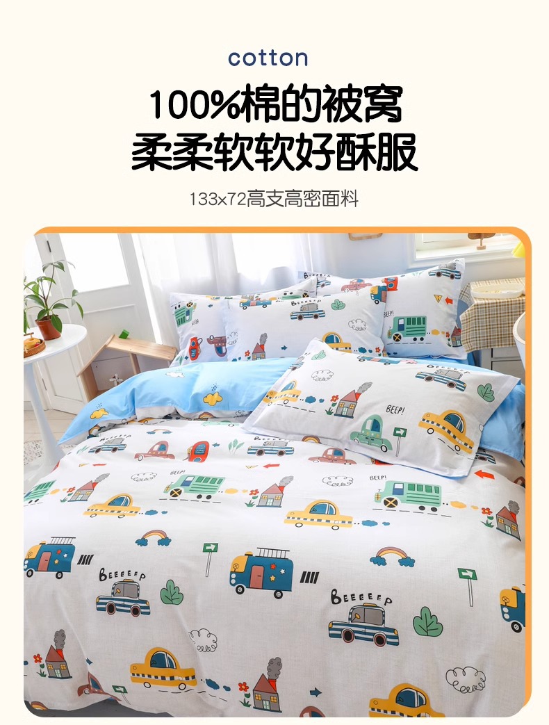 100% algodón de dibujos animados para niños funda de edredón de un solo algodón bebé funda de edredón niño jardín de infantes 120x150 coche 200
