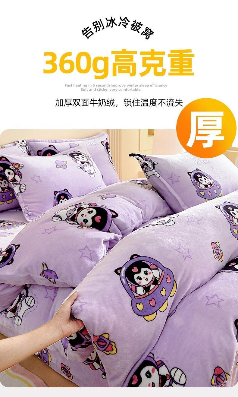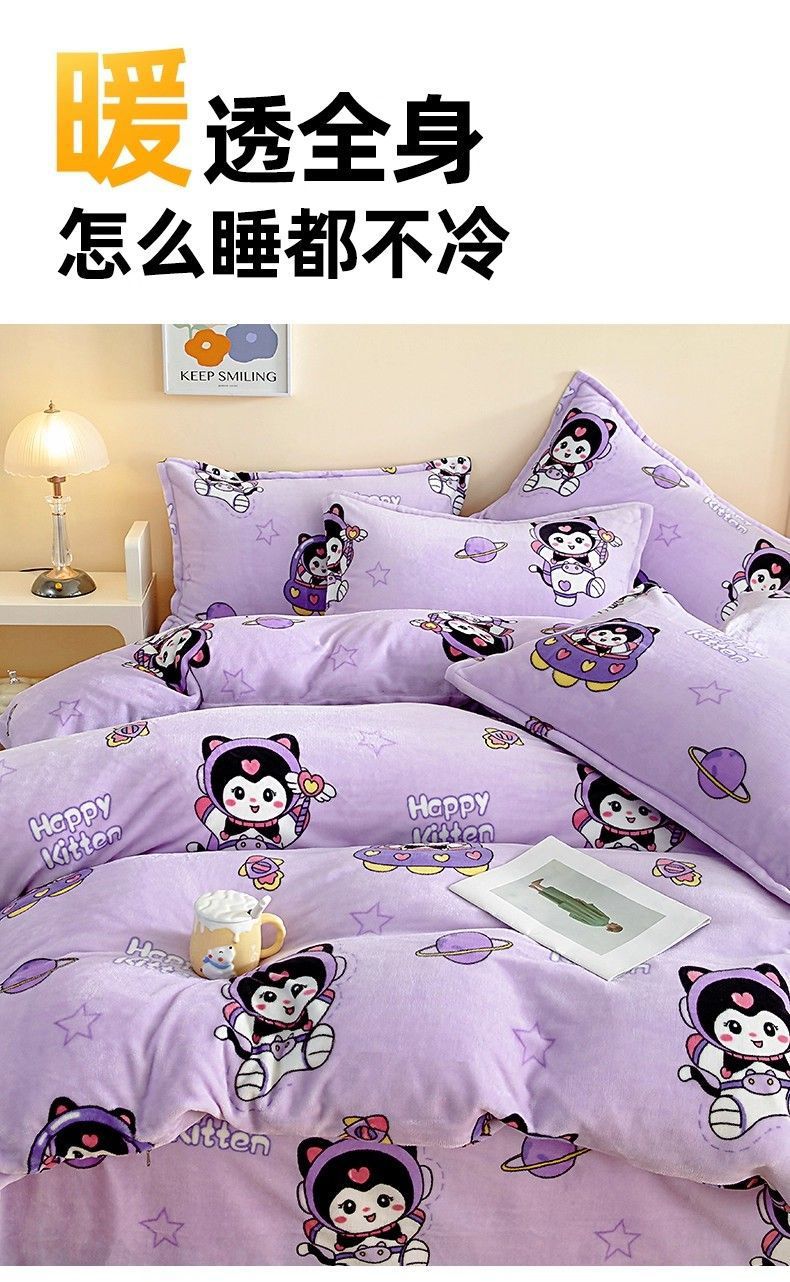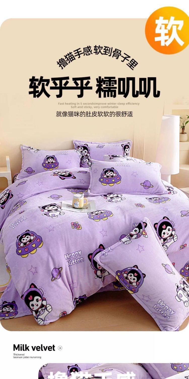 Invierno leche cubierta de edredón de una sola pieza niña caricatura coral franela cálida edredón cubierta 150x200