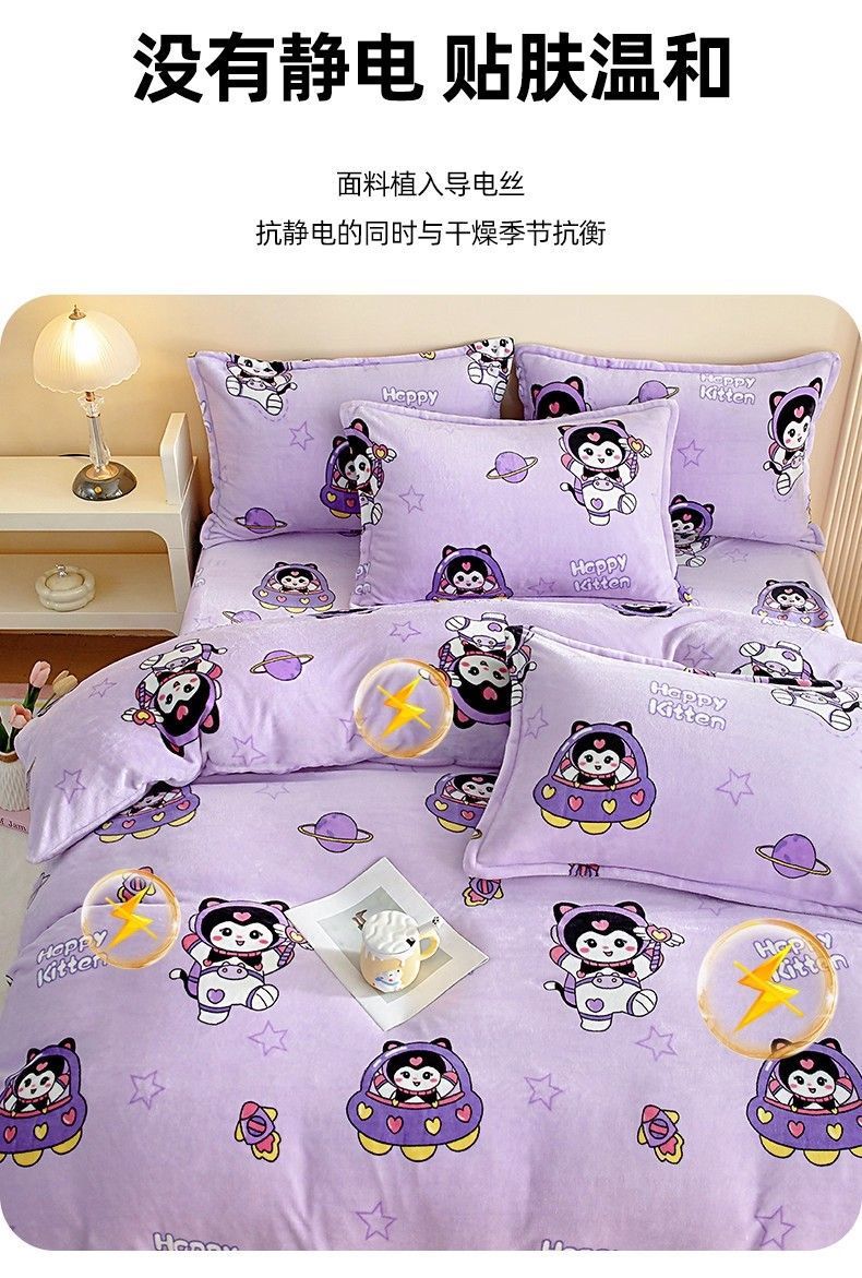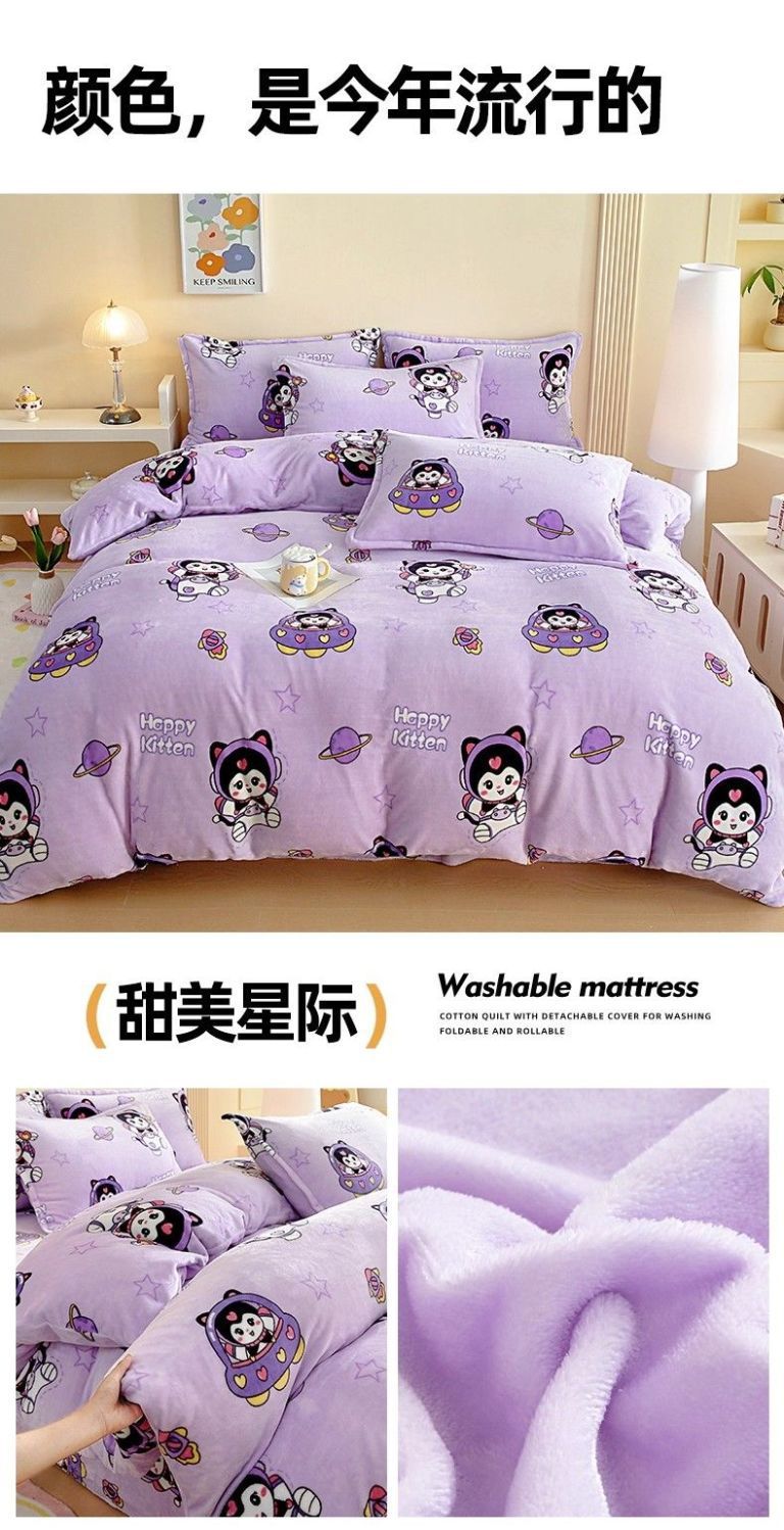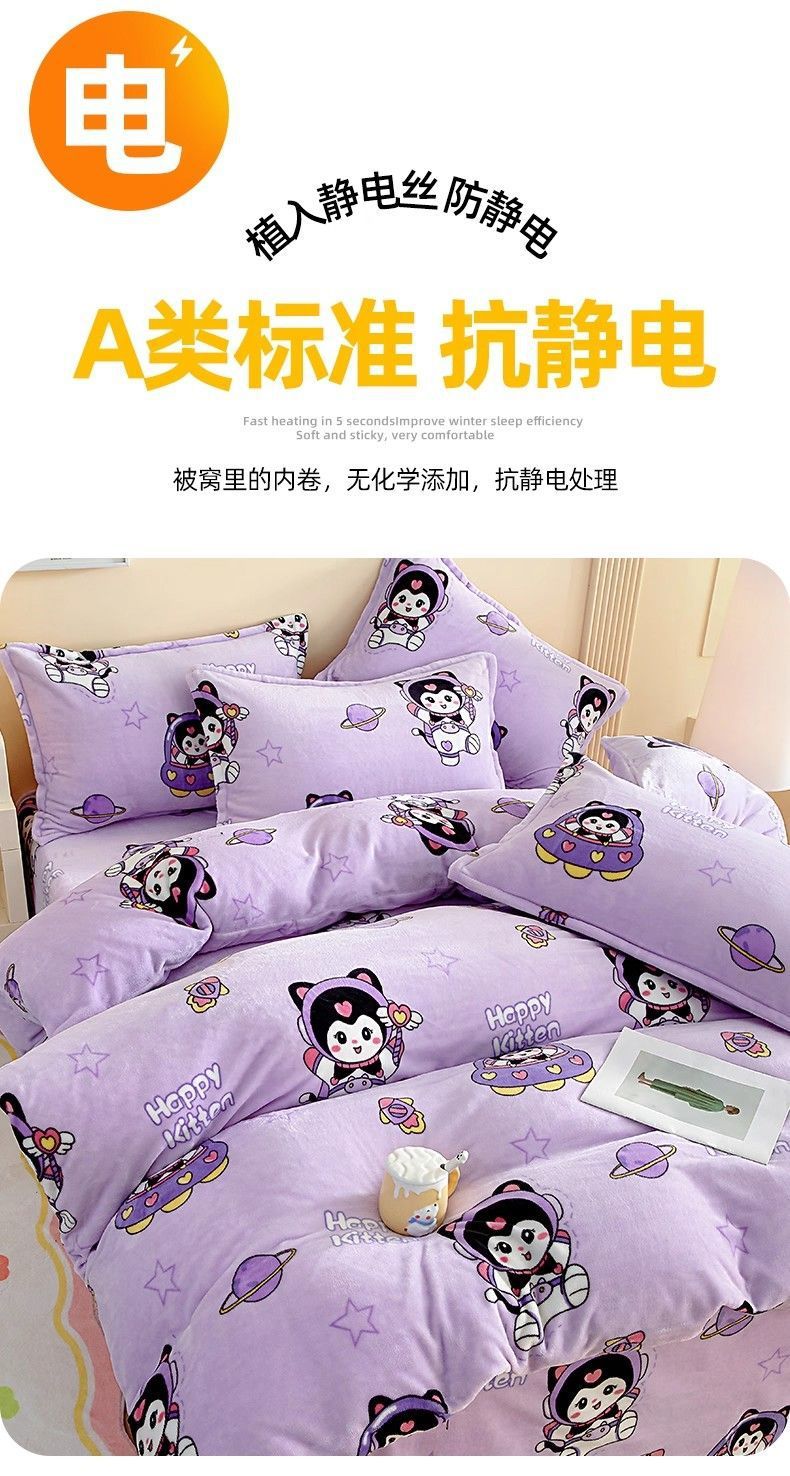 Invierno leche cubierta de edredón de una sola pieza niña caricatura coral franela cálida edredón cubierta 150x200
