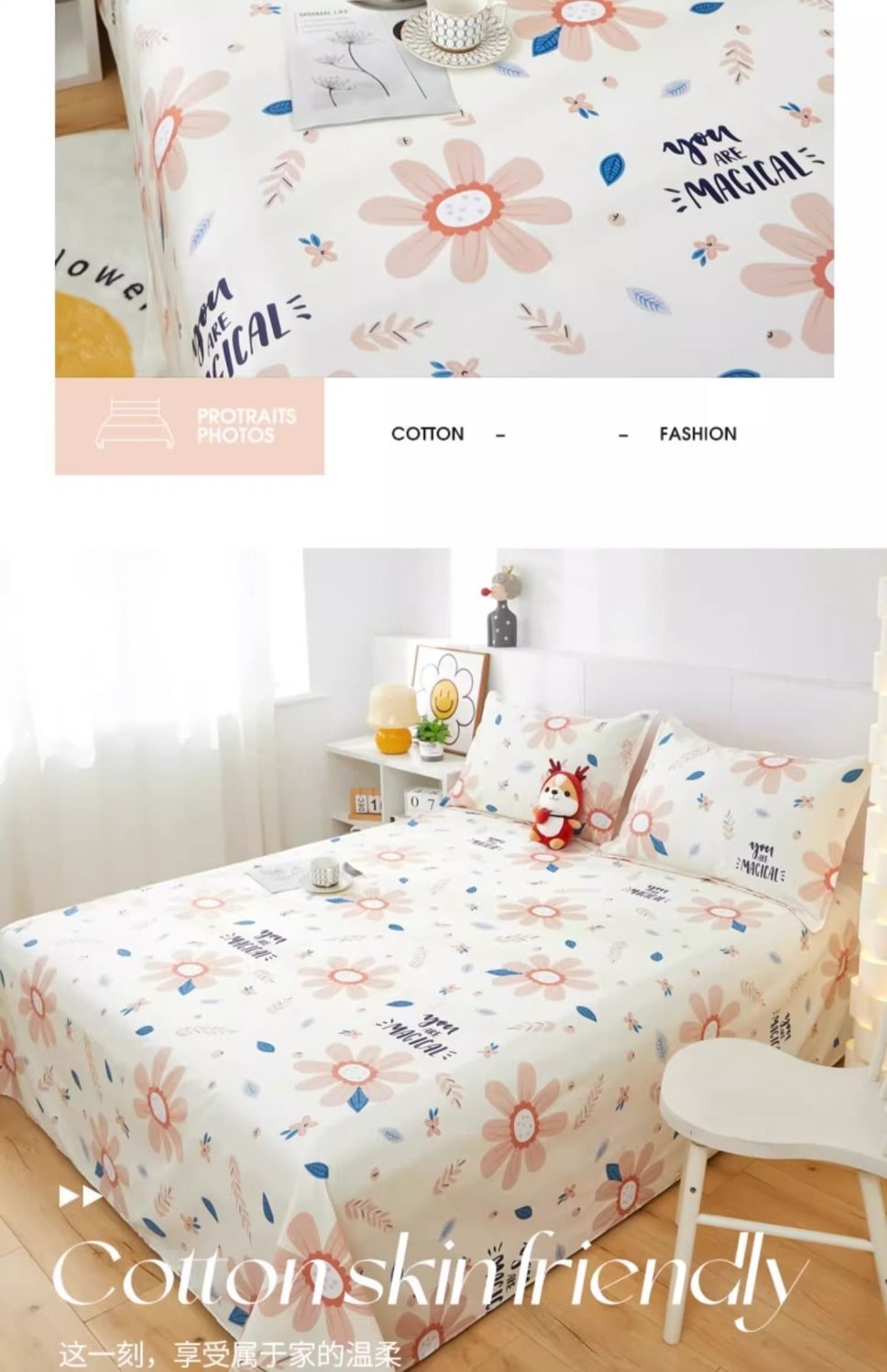 Sábanas de algodón de una sola pieza de tela de algodón dormitorio de estudiantes cama individual funda de almohada individual dormitorio fresco pequeño estilo ins
