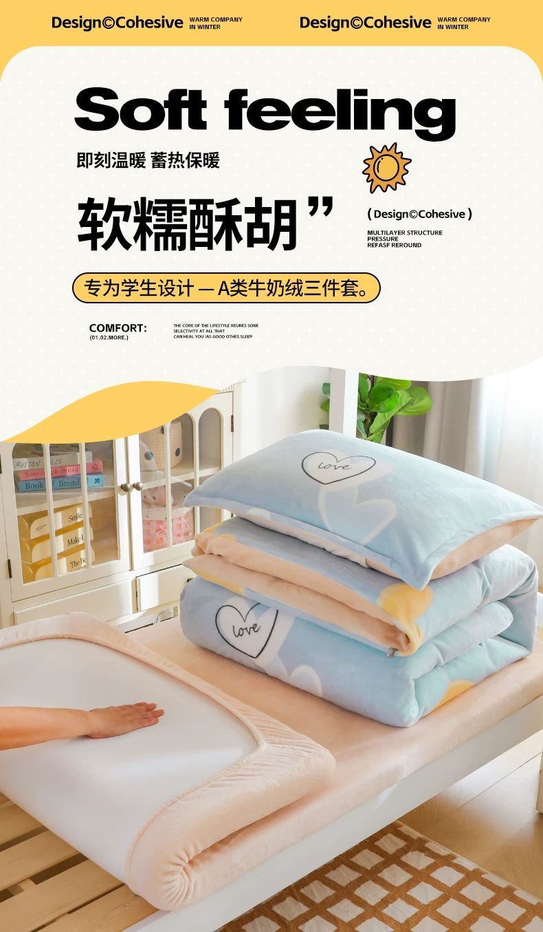 Tres piezas de camisa de leche dormitorio de estudiantes cama de invierno camisa de coral
