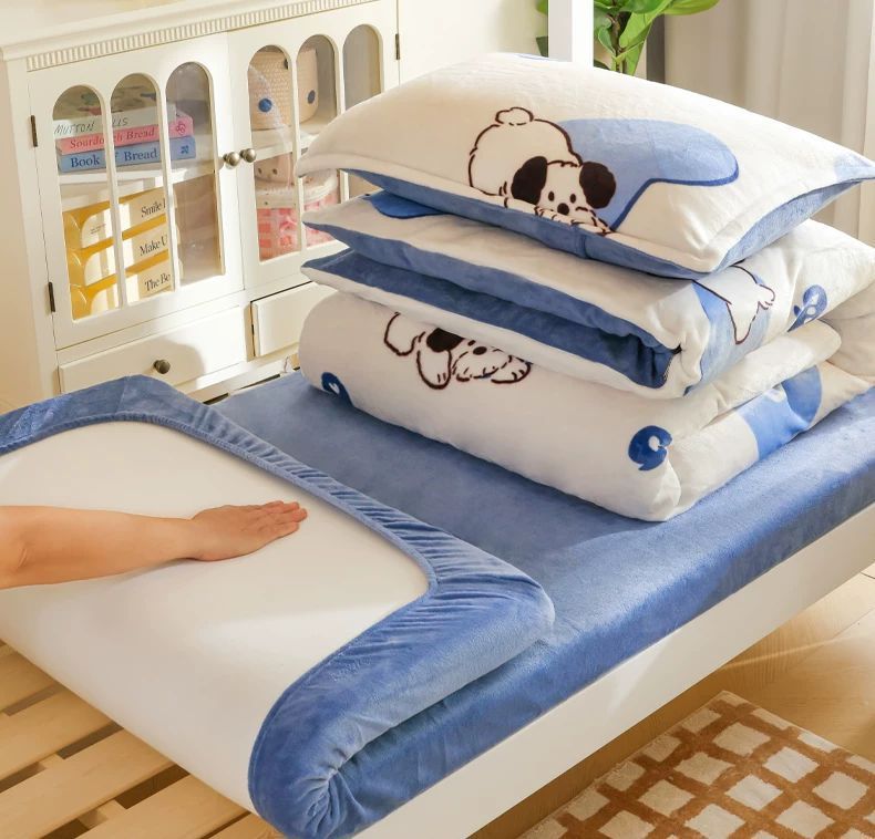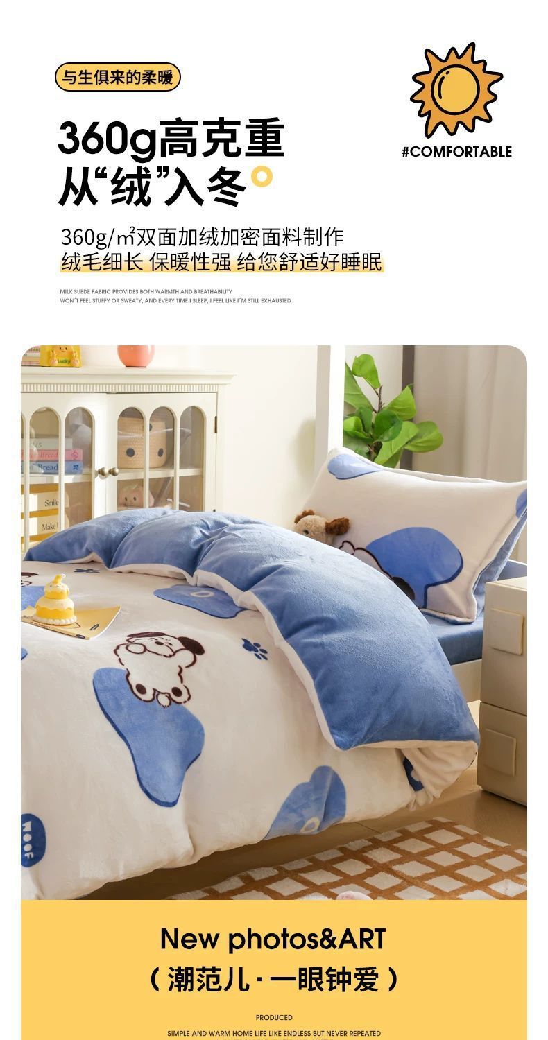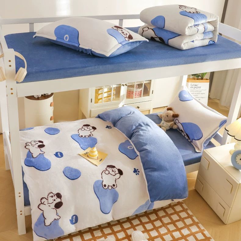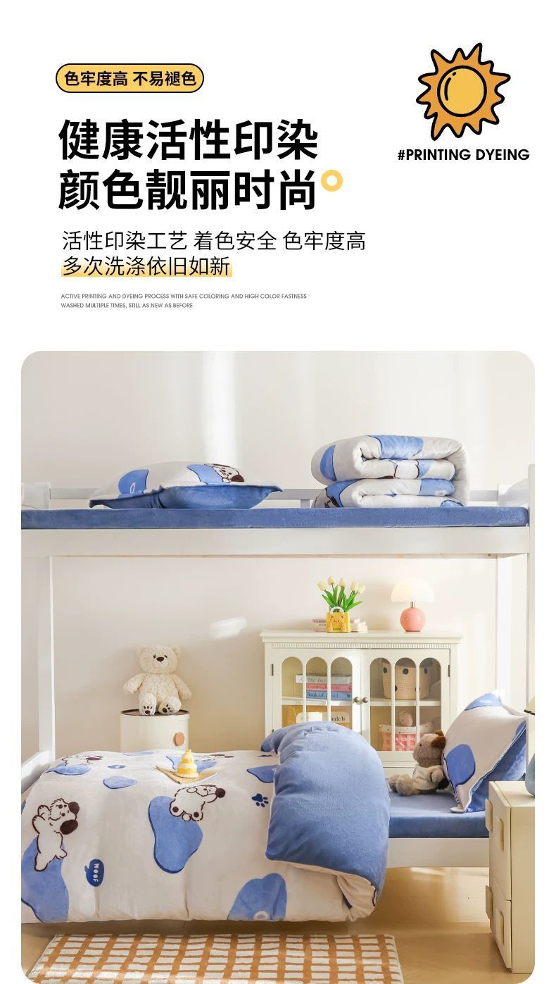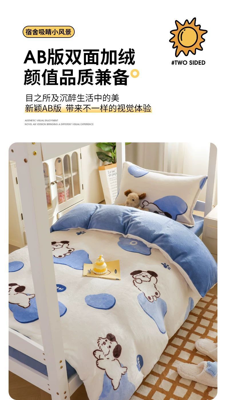 Leche cama de terciopelo tres piezas dormitorio de estudiantes cama de terciopelo sábanas gruesas cubierta de terciopelo de coral ropa de cama de invierno cuatro