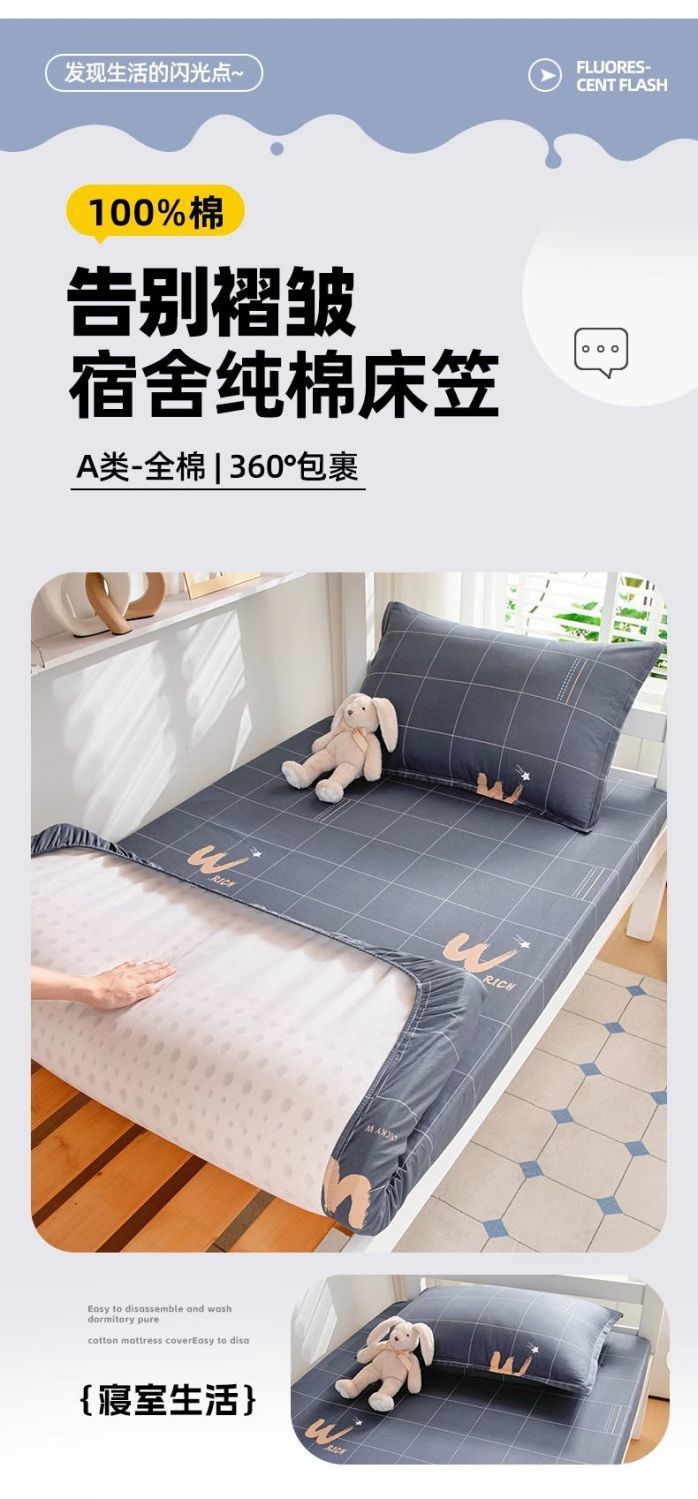 Sombrilla de cama de dormitorio de estudiantes de una sola pieza de algodón de clase a 80x90x190 cubierta de cama individual de dormitorio juego de tres piezas nuevo