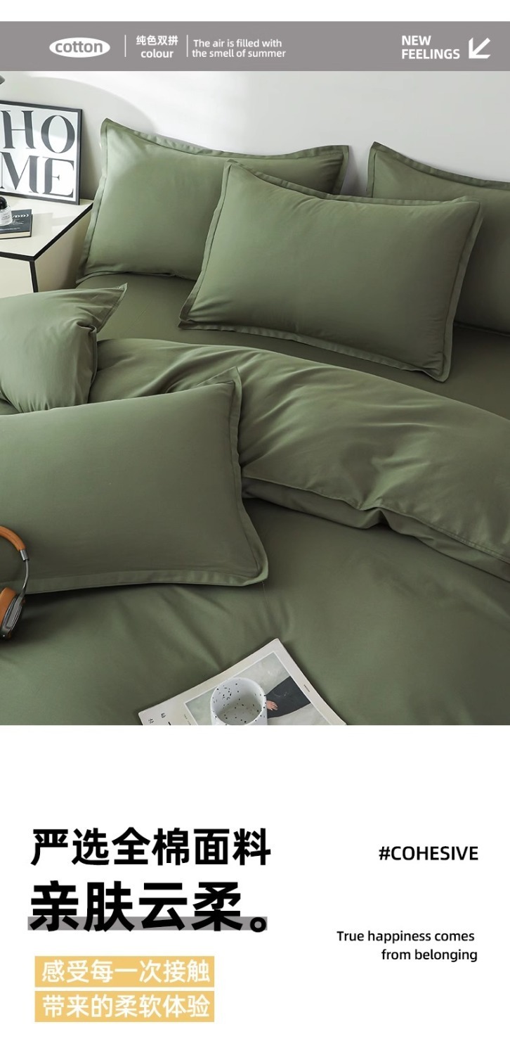 Cama de algodón de algodón verde militar Juego de cuatro piezas de sábanas y edredones Dormitorio de estudiantes Cama individual Juego de entrenamiento militar de tres piezas de servicio