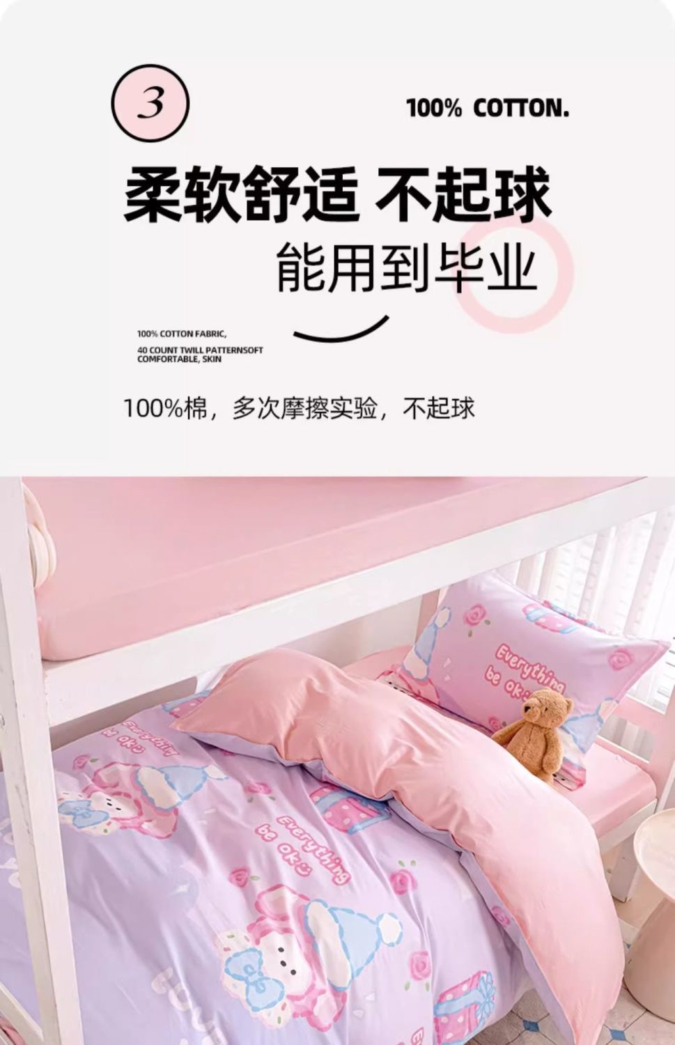 100 funda de edredón de niña de dibujos animados de algodón de una sola pieza funda de edredón de algodón 120x200 dormitorio de estudiantes individual pieza de tres piezas