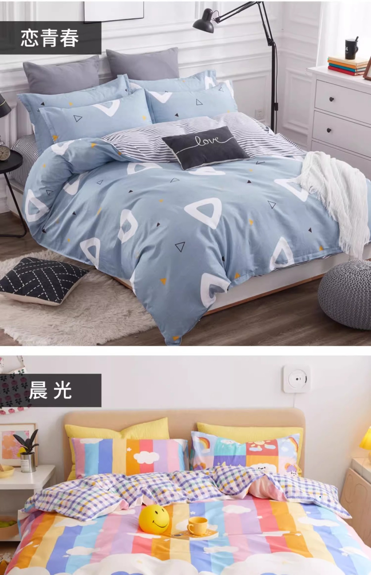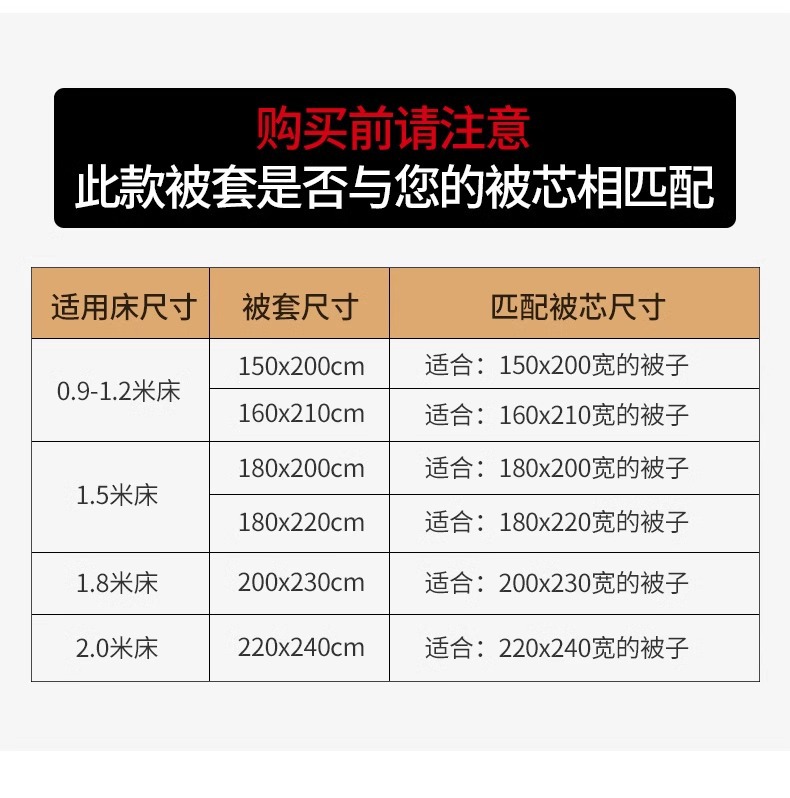 | Especificaciones de tamaño | Funda de edredón de algodón de una sola pieza-150*200cm [adecuado para edredón de 150*200cm],Funda de edredón de algodón de una sola pieza-180*200cm [adecuado para edredón de 180*200cm],Funda de edredón de algodón de una sola pieza-180*220cm [adecuado para edredón de 180*220cm],Funda de edredón de algodón de una sola pieza-200*230cm [adecuado para edredón de 200*230cm],Funda de edredón de algodón de una sola pieza-220*240cm [adecuado para edredón de 220*240cm],Funda de edredón 150x200cm 2 Funda de almohada 48x74,Funda de edredón 180x200cm 2 Funda de almohada 48x74,Funda de edredón 180x220cm 2 Funda de almohada 48x74,Funda de edredón 200x230cm 2 Funda de almohada 48x74,Funda edredón 220x240cm 2 Funda de almohada 48x74,Cama de 0,9 m [Juego de sábanas de tres piezas]-Adecuado para edredón de 150*200cm,Cama de 1,5 m [Juego de sábanas de cuatro piezas]-Adecuado para edredón de 180*200cm,Cama de 1,8 m [Juego de sábanas de cuatro piezas]-Adecuado para edredón de 200*230cm,Cama de 2.0 m [Juego de sábanas de cuatro piezas]-Adecuado para edredón de 220*240cm |