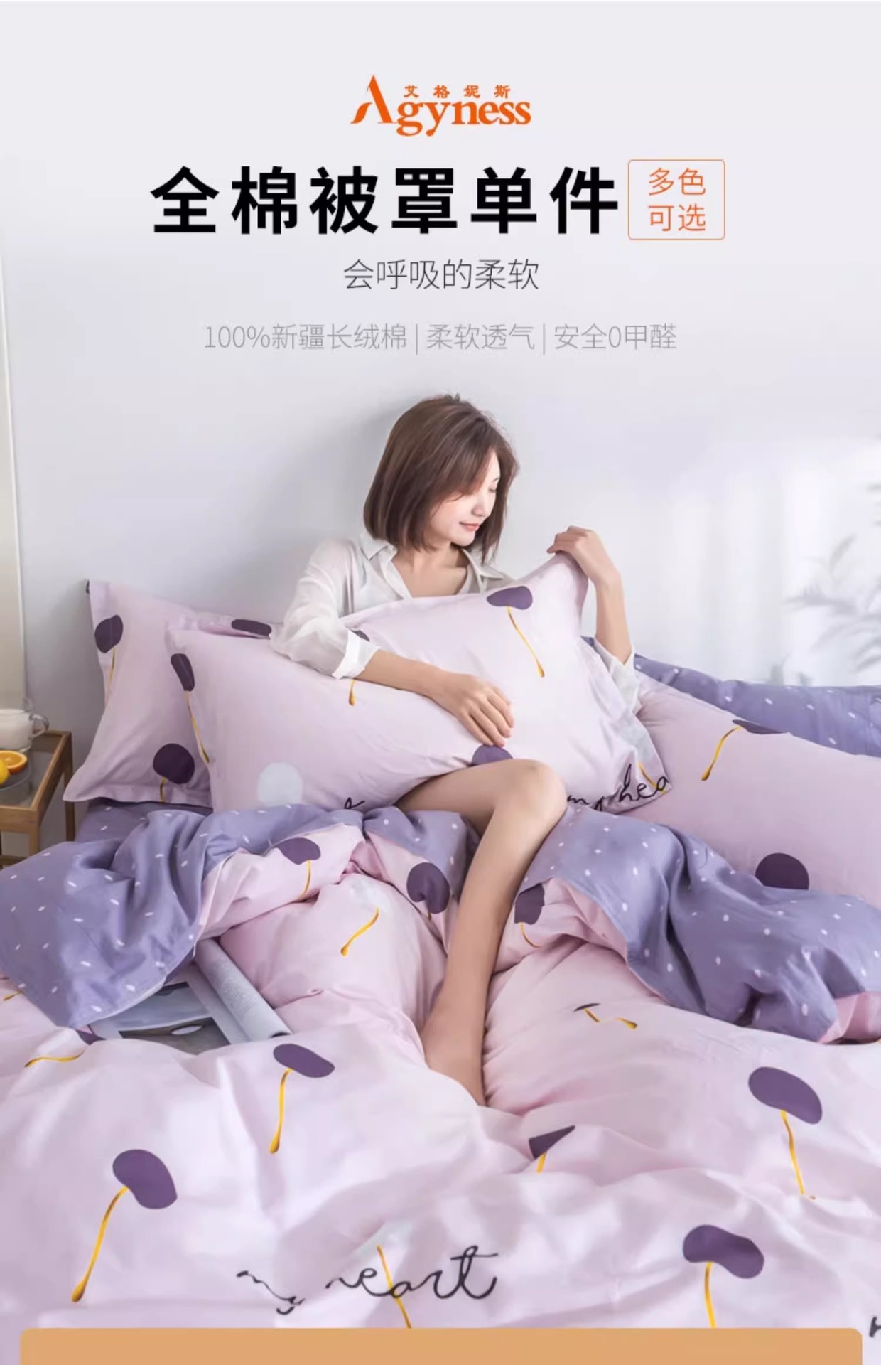 Funda de edredón de algodón de una sola pieza 100% funda de edredón de algodón individual dormitorio de estudiante doble 150x200x230x180