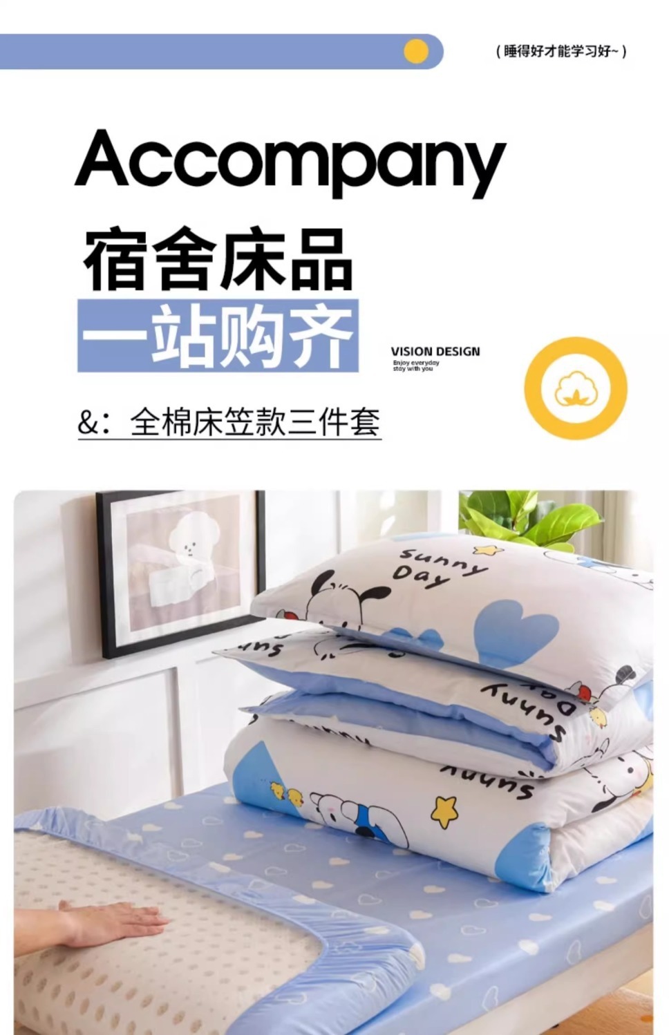 [Estilo de cama] 0.9 cama de tres piezas colchón de 5cm de espesor