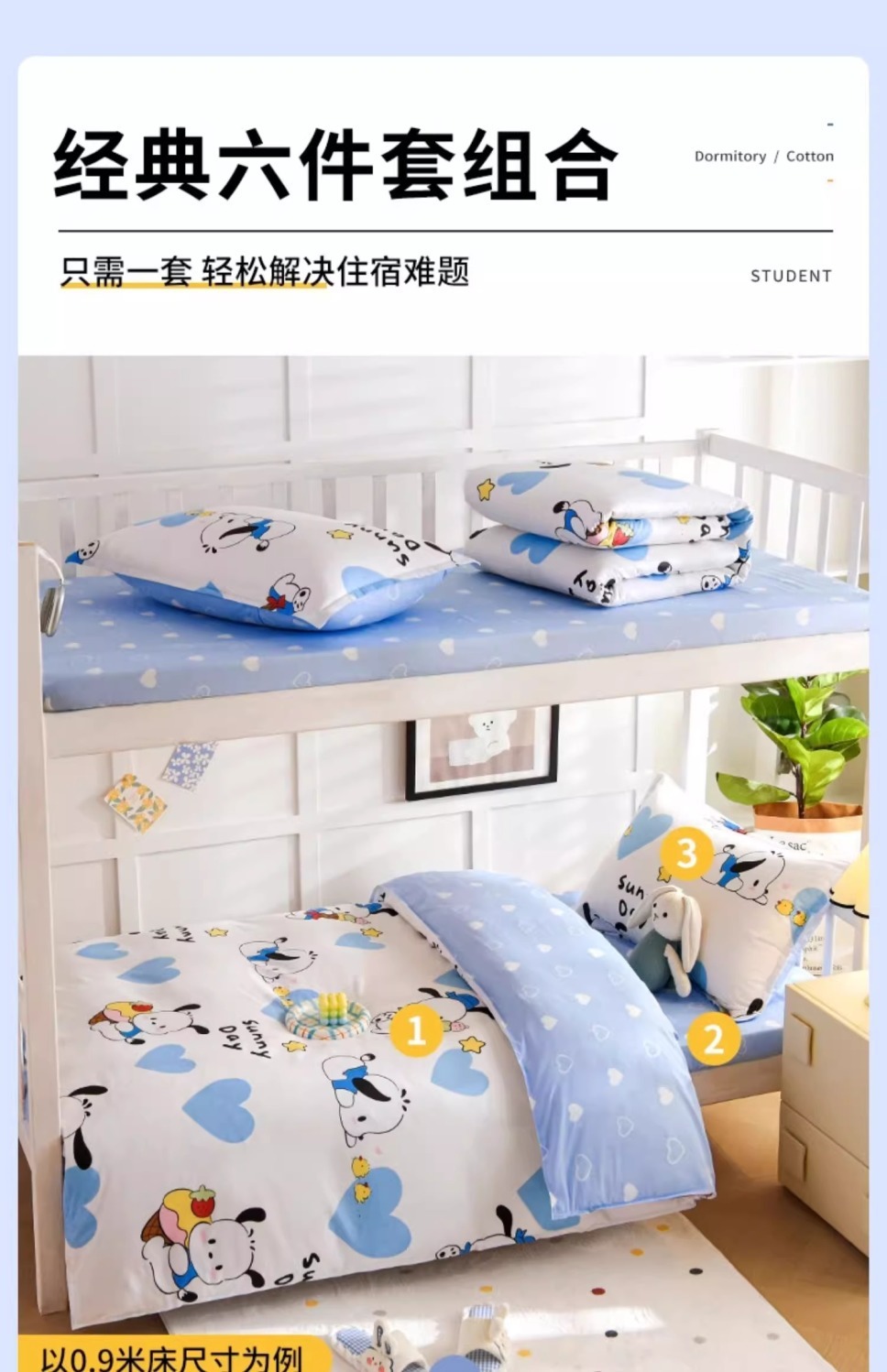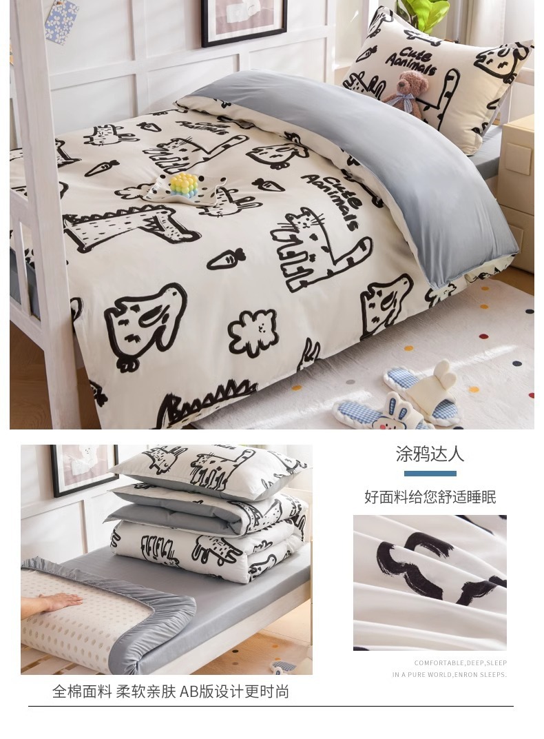Ropa de cama de algodón puro de tres piezas Ropa de cama de dormitorio de estudiantes 90x200 individual 0,9 m funda de edredón de sábana 6