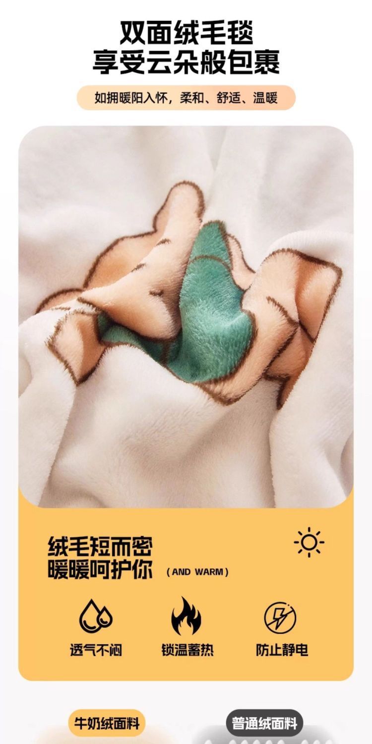 | Color | Lucky (mantanetas de peluche de doble cara), Panda Panda Panda (mantanetas de peluche de doble cara), Cloud (mantanetas de peluche de doble cara), Happy Dog (mantanetas de peluche de doble cara), Bear (mantanetas de peluche de doble cara), Star Deer (mantanetas de peluche de doble cara) |