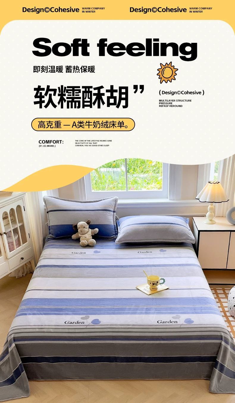 2025 nueva sábanas de peluche de leche de invierno una sola pieza de peluche de invierno más grueso dormitorio de estudiantes flange coral peluche manta