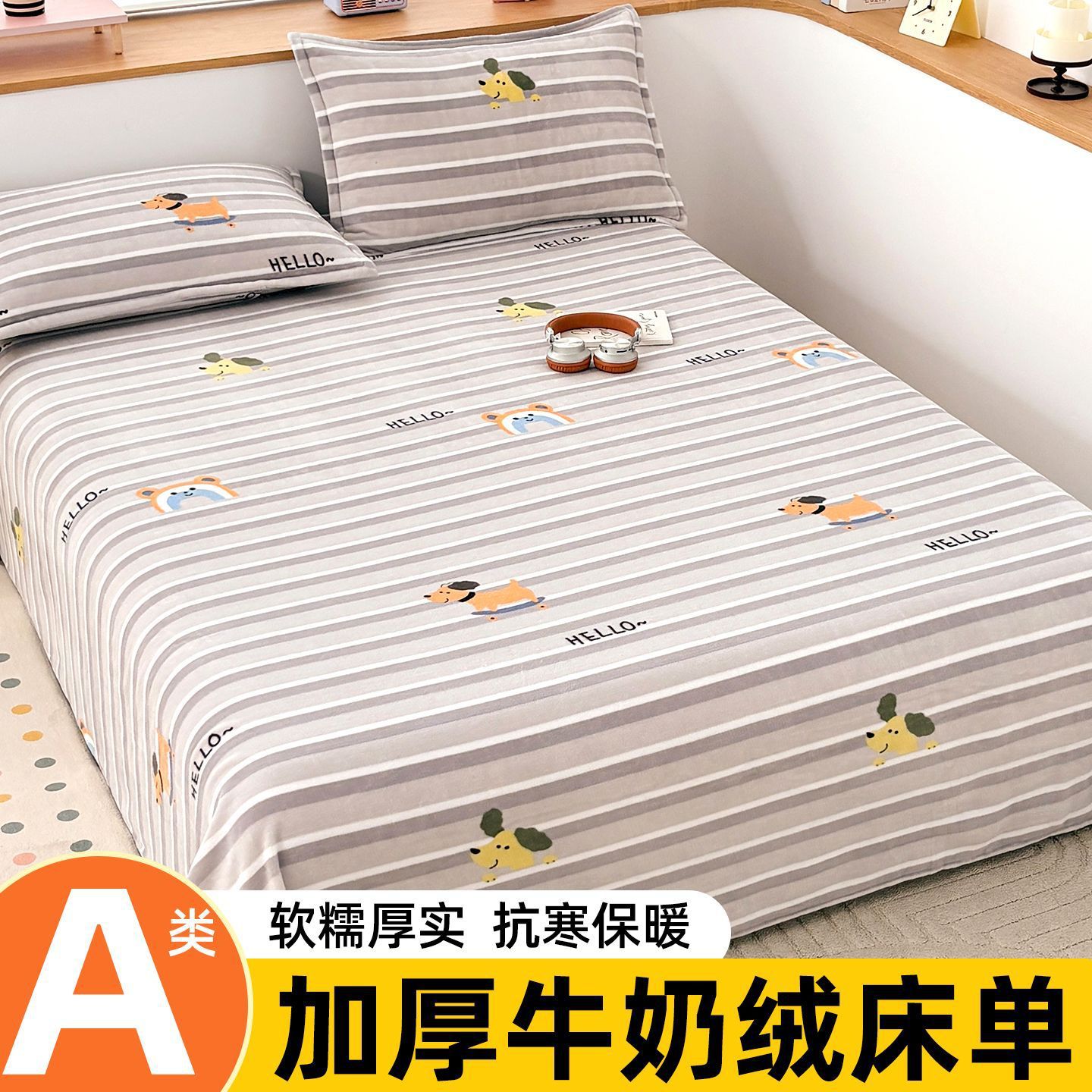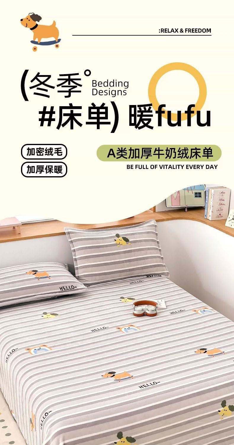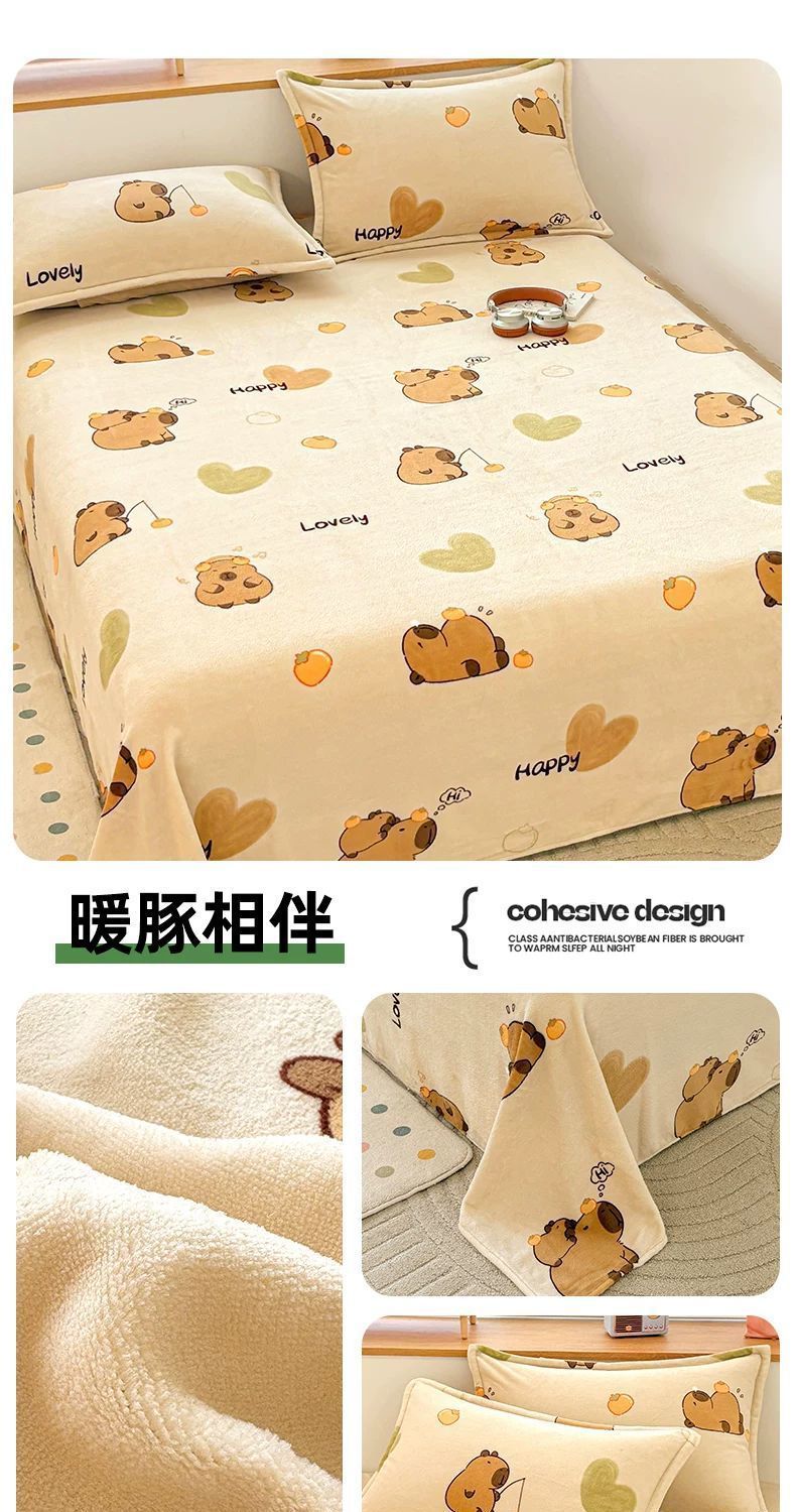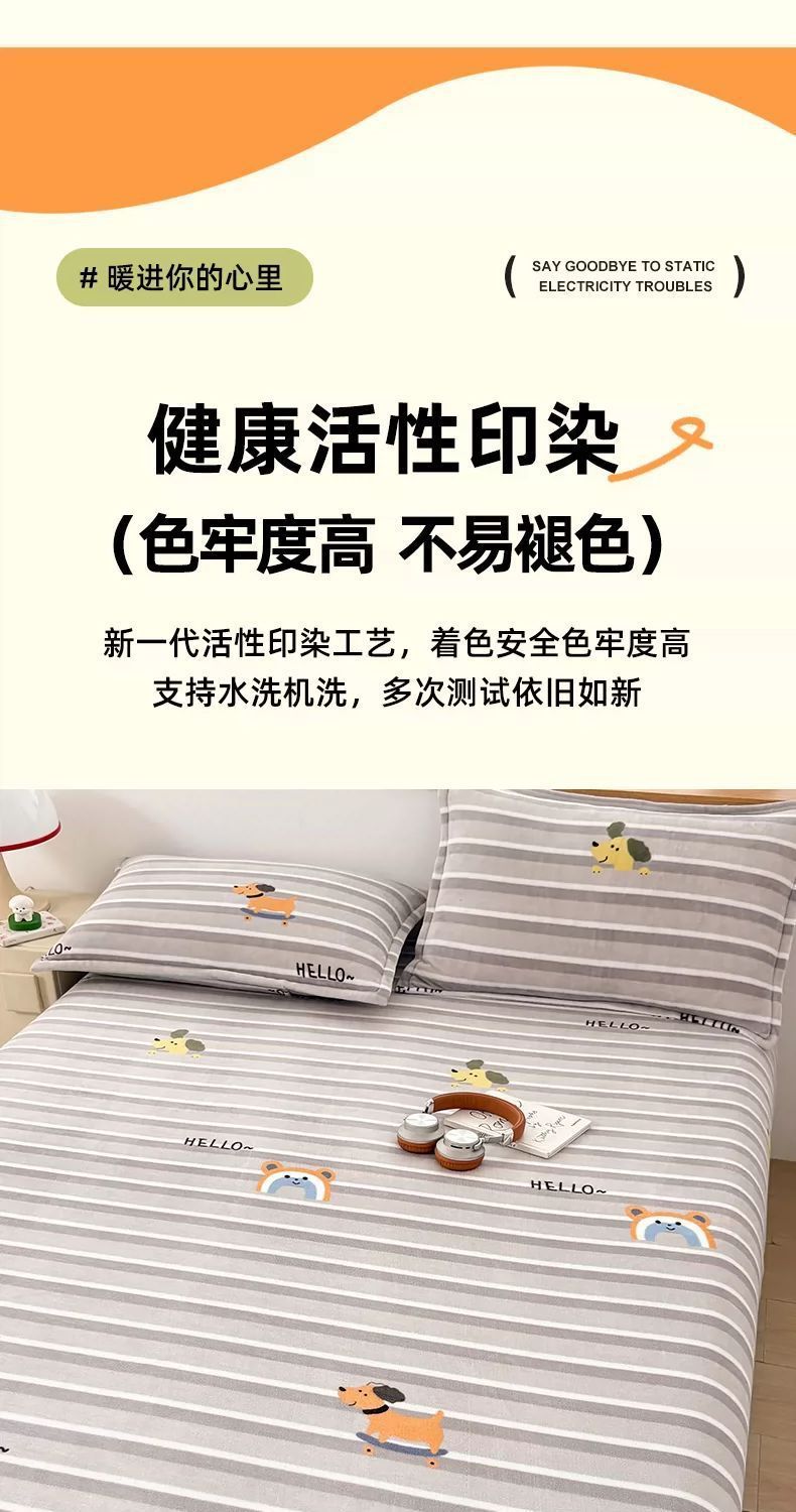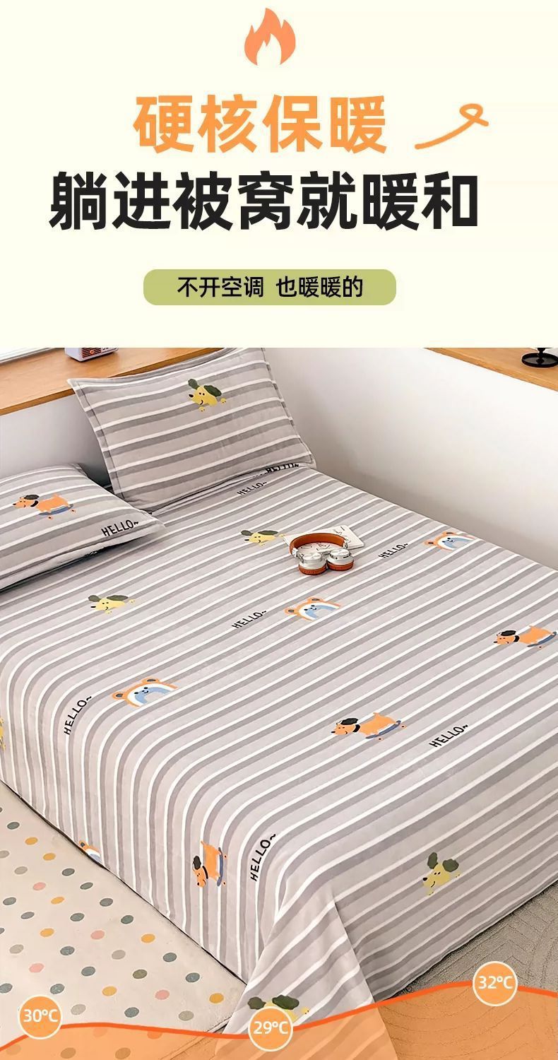 Otoño y invierno leche de coral lana sábanas dobles una sola pieza gruesa con lana una sola colcha de franela una sola colcha de tres piezas conjunto