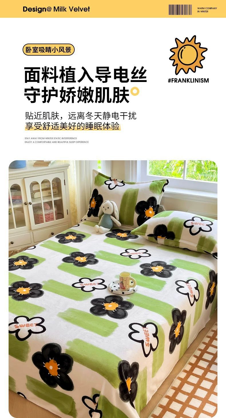 Invierno leche de lana de coral sábanas de lana de una sola pieza brida de manta de peluche dormitorio una sola persona gruesa manta de peluche cálida