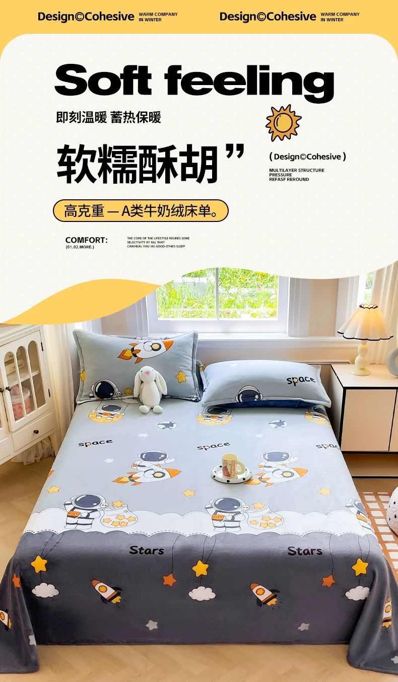 Invierno leche de lana de coral sábanas de lana de una sola pieza brida manta de lana de niños dormitorio de dibujos animados una sola manta gruesa