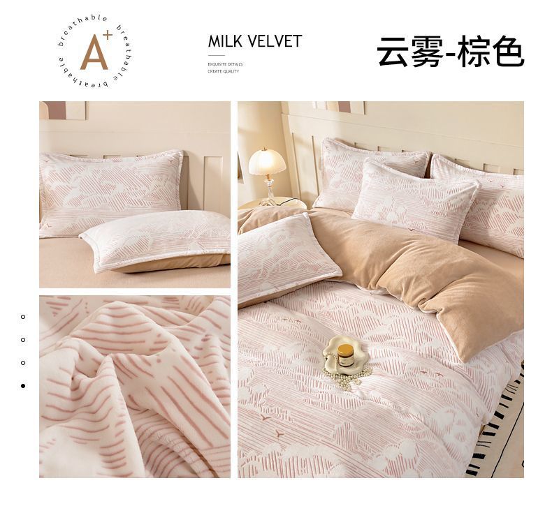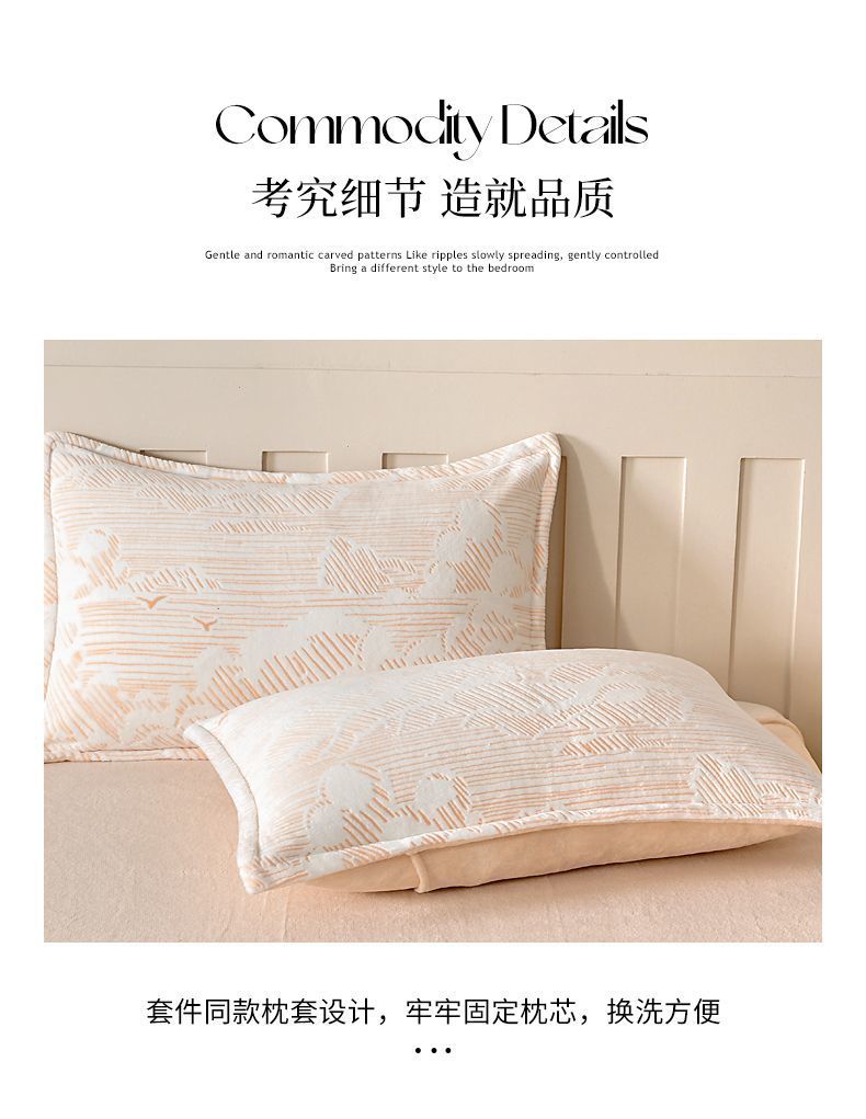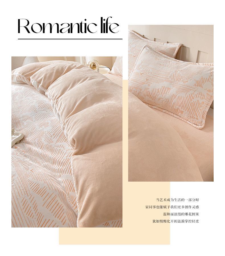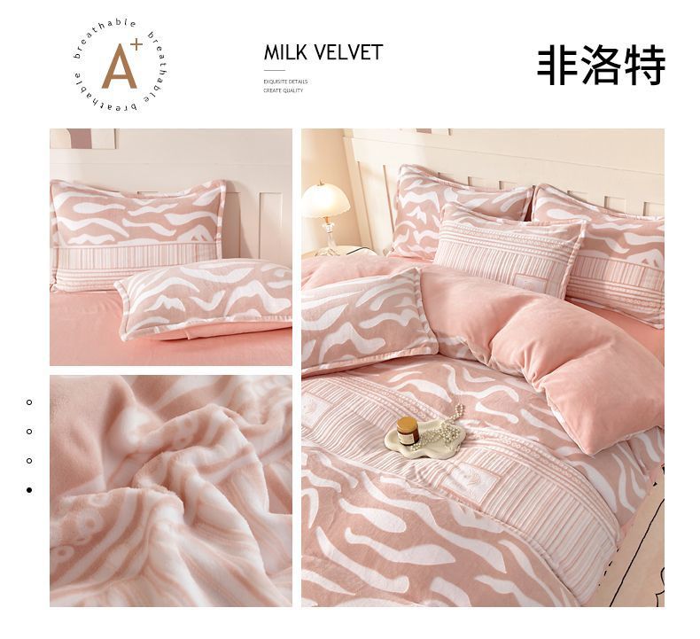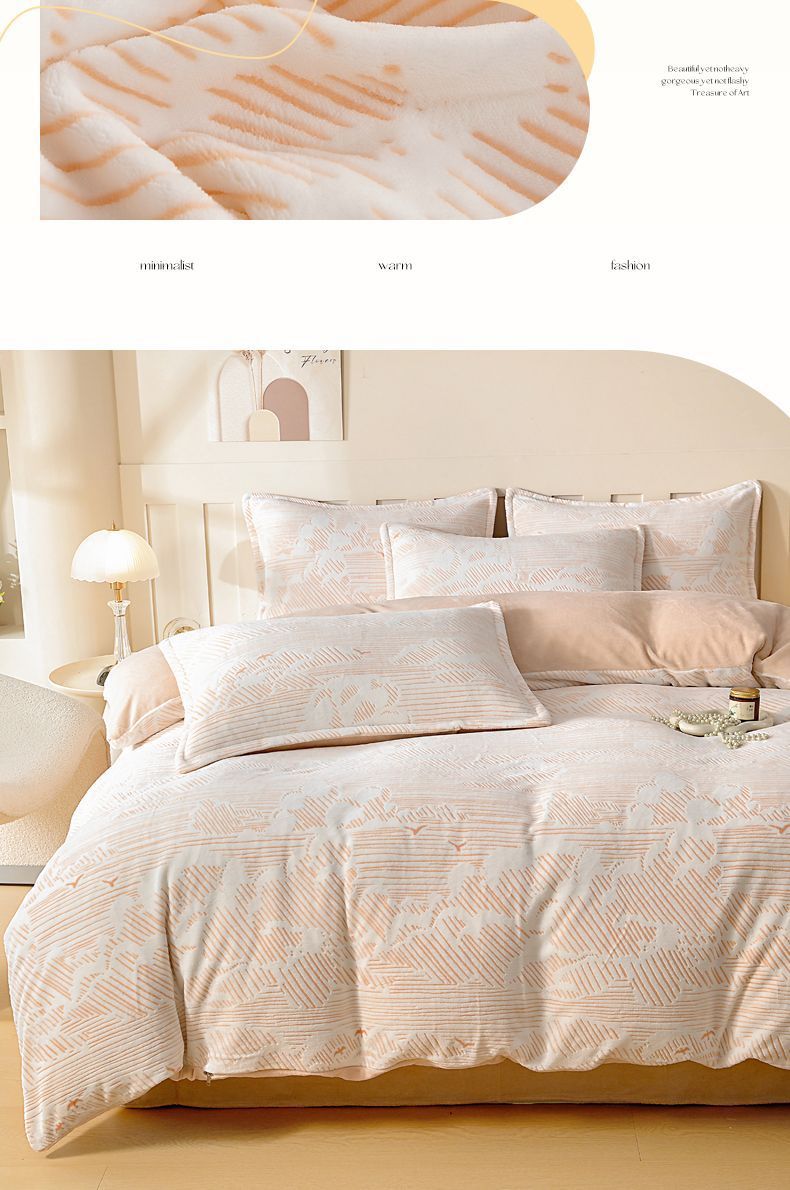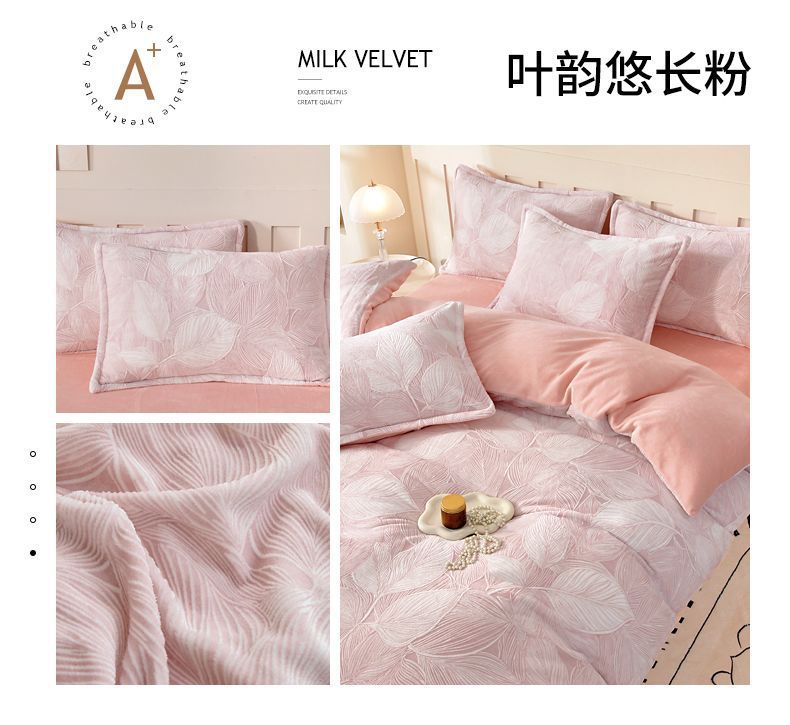 Cama de invierno con cuatro piezas de seda de leche gruesa tallado flange de coral sábanas cubiertas de seda de tres piezas de seda
