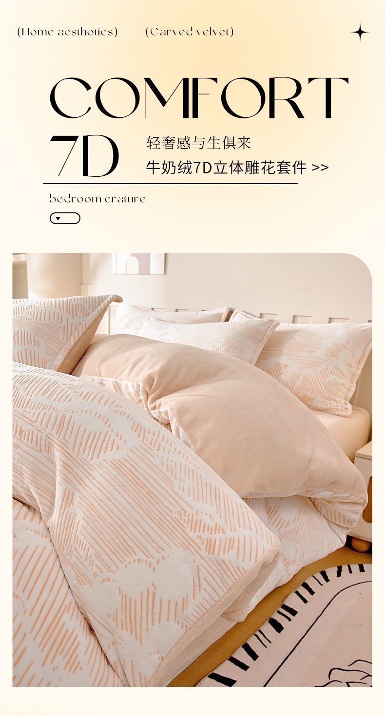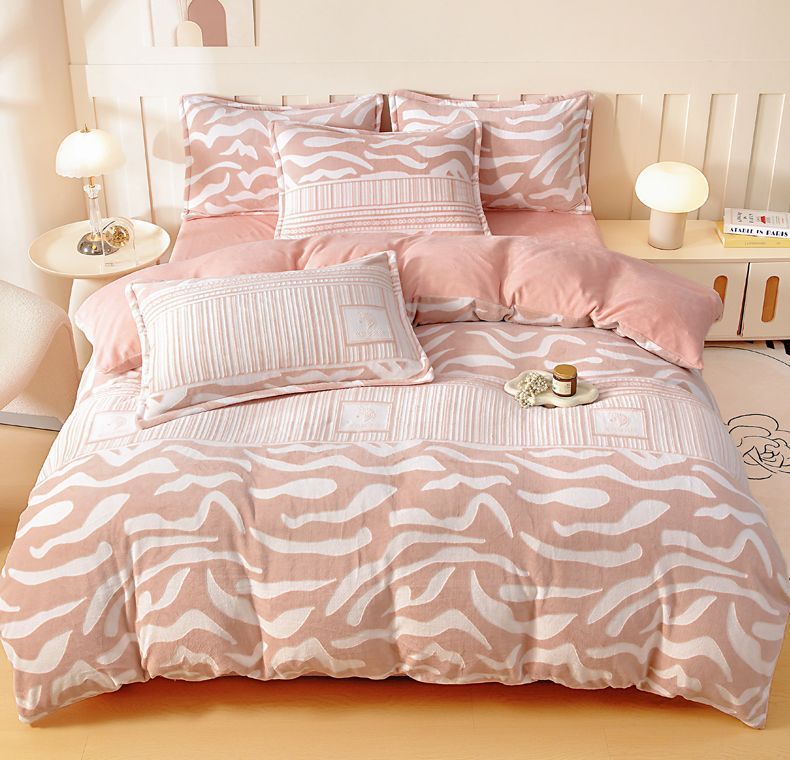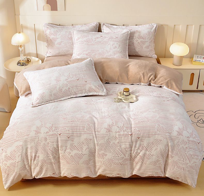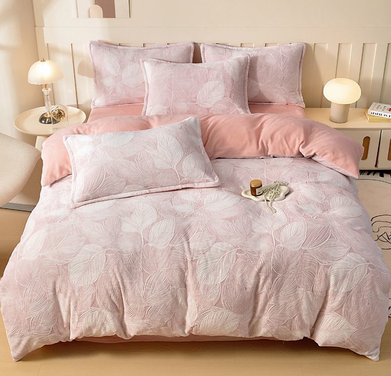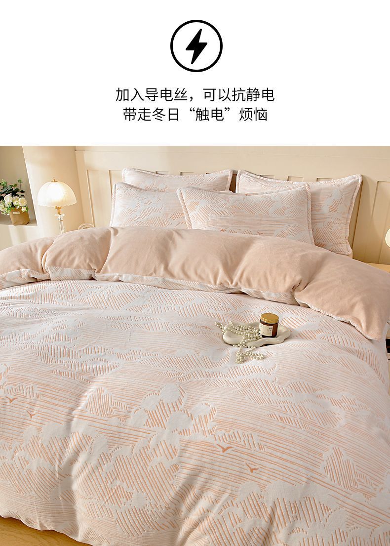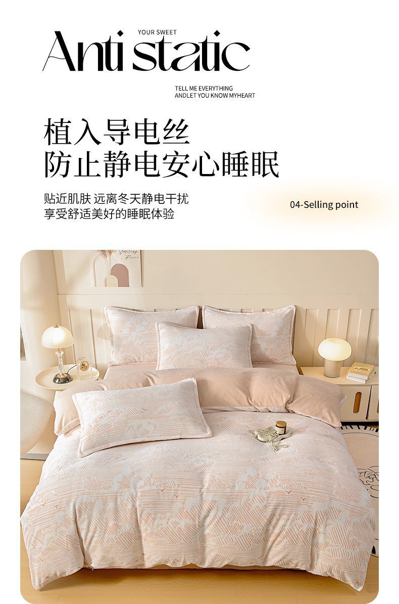 Cama de invierno con cuatro piezas de seda de leche gruesa tallado flange de coral sábanas cubiertas de seda de tres piezas de seda
